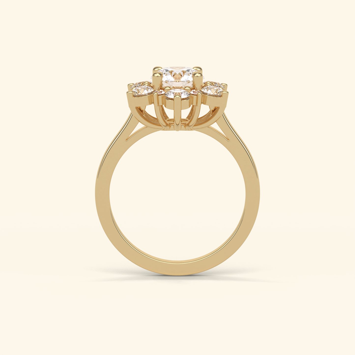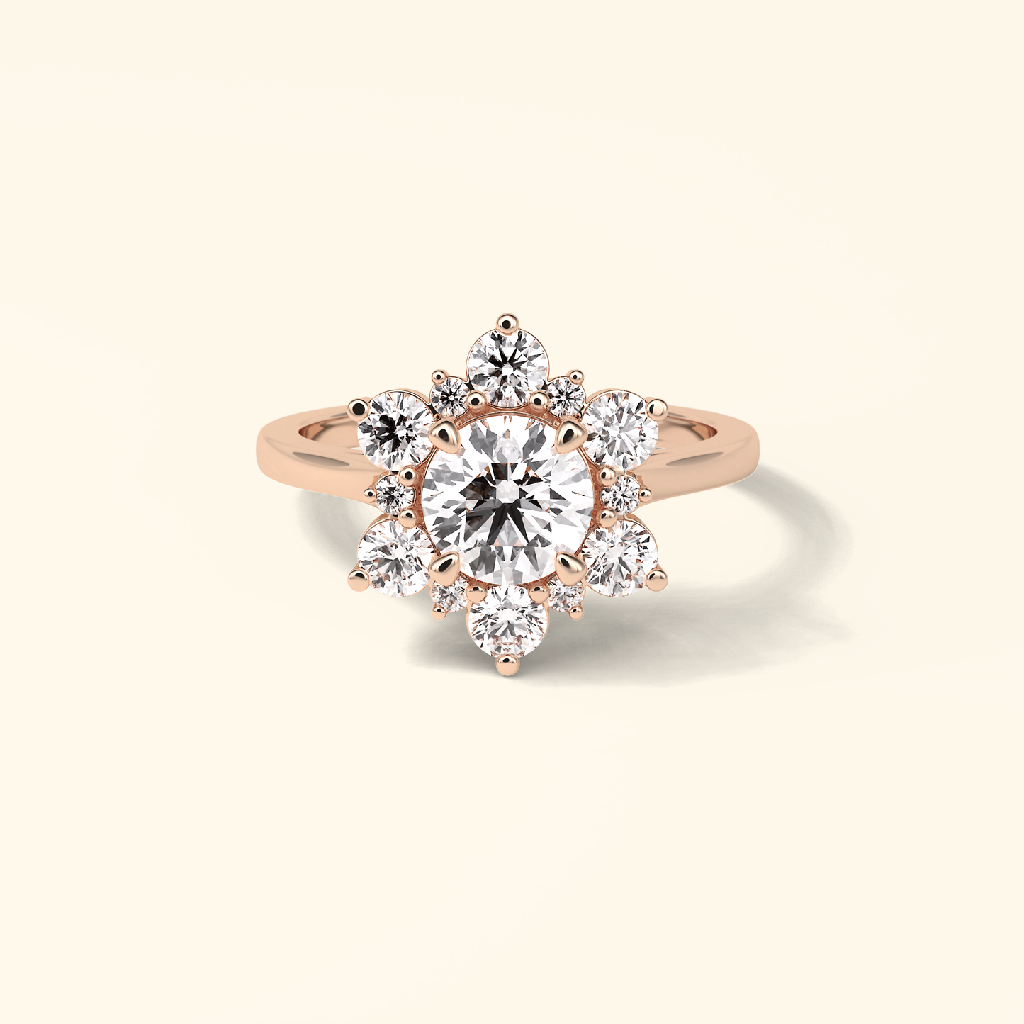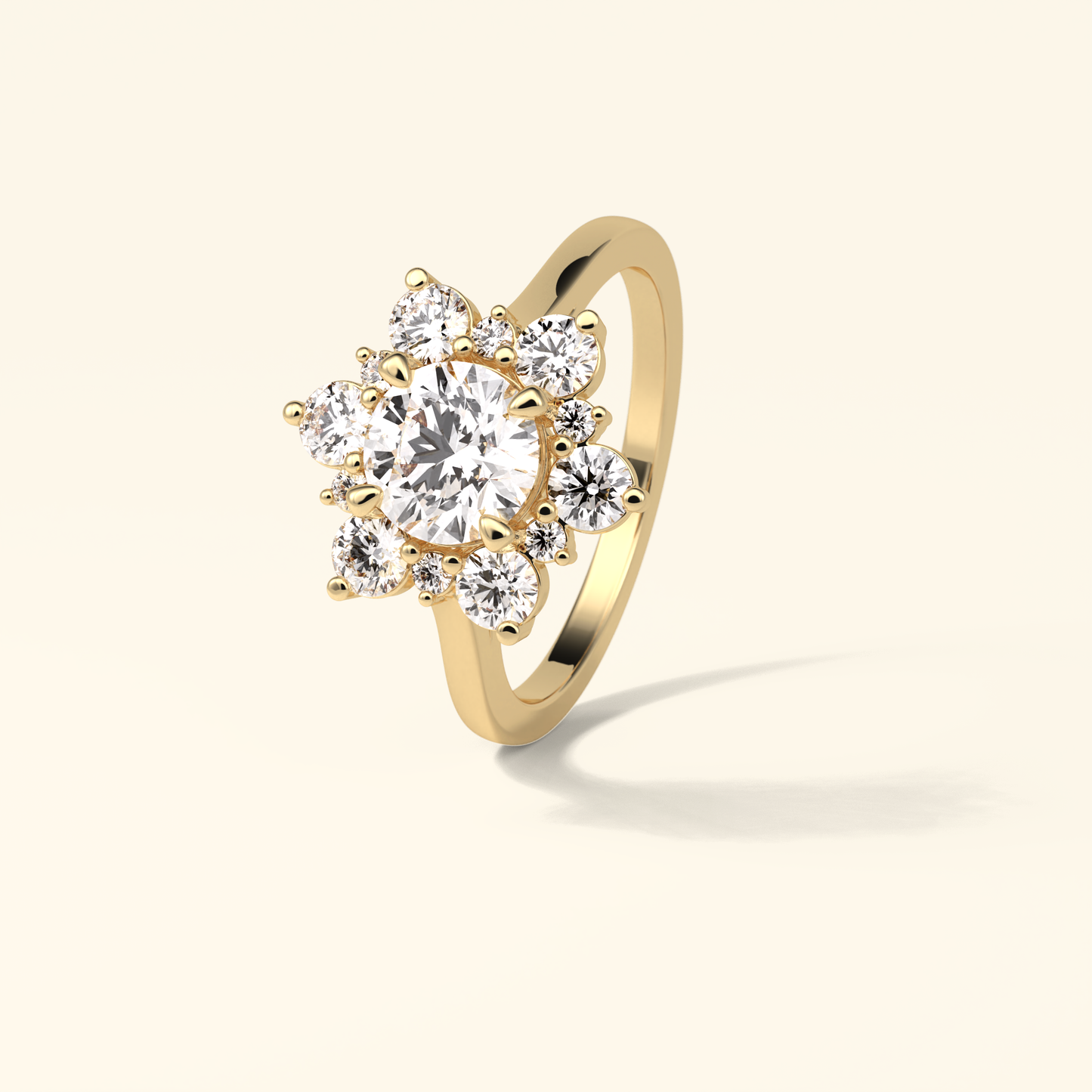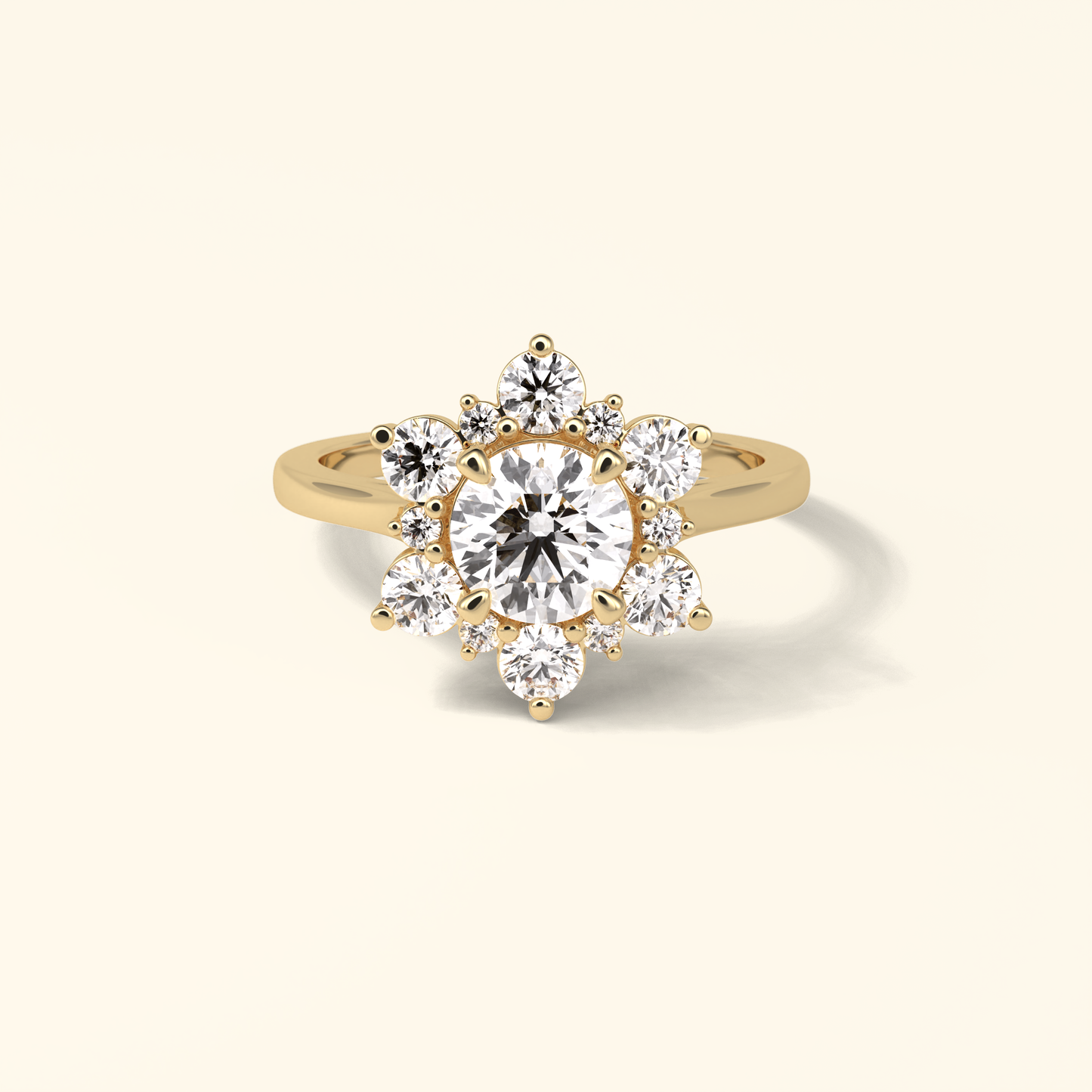 Round Moissanite Cluster Engagement Ring – 1 CT Center Stone in Solid Gold