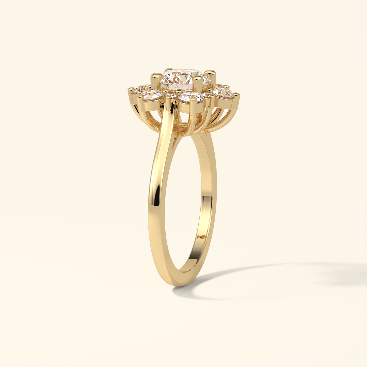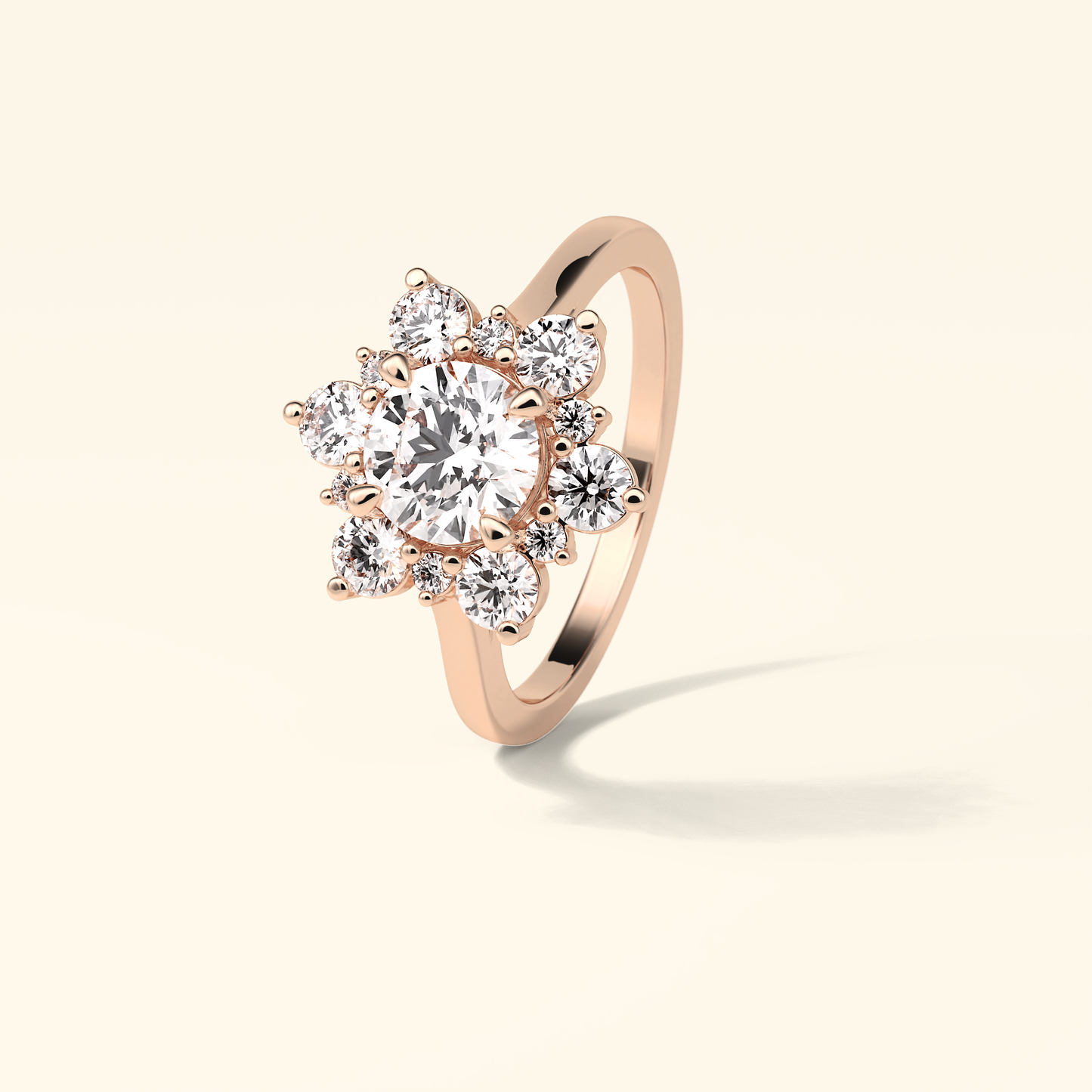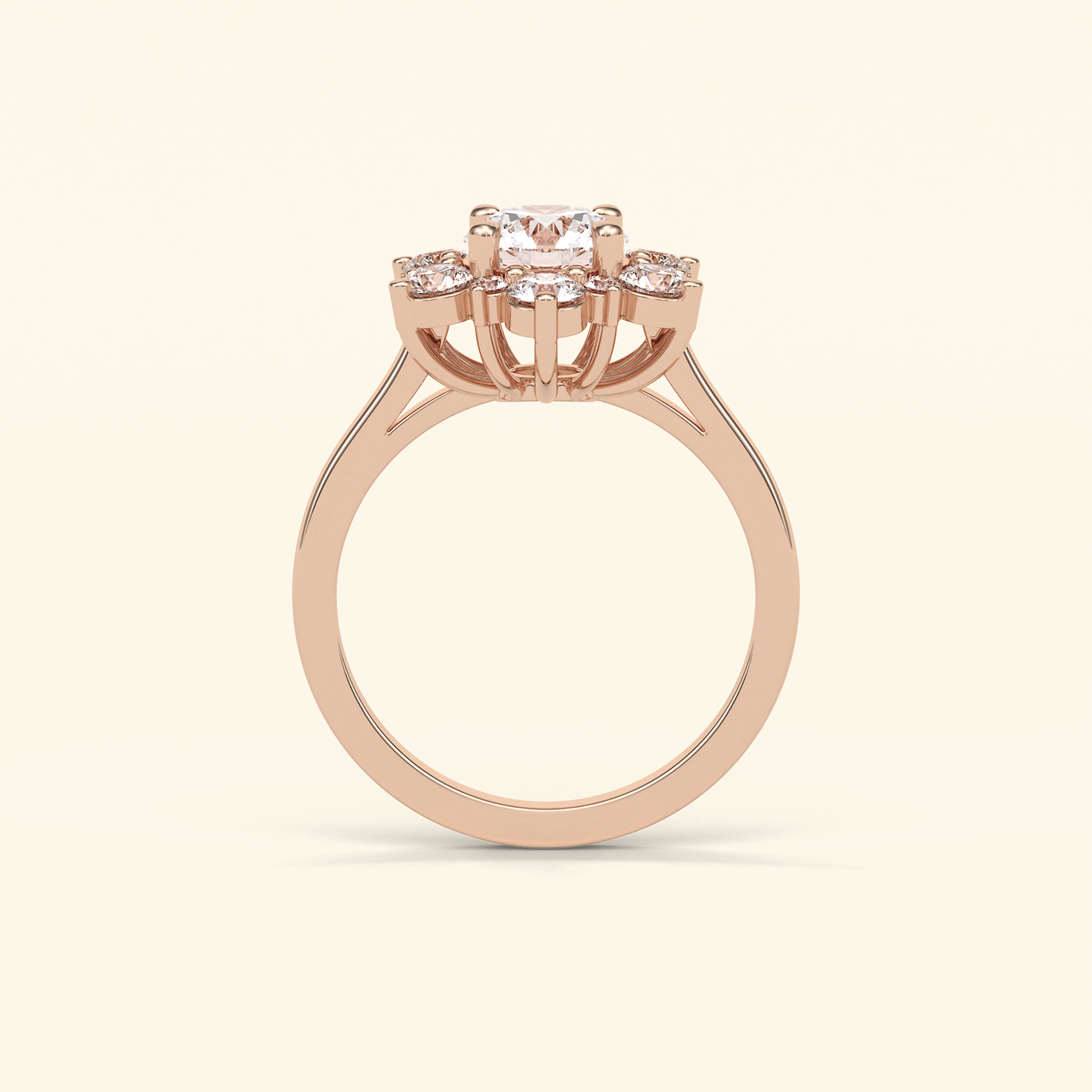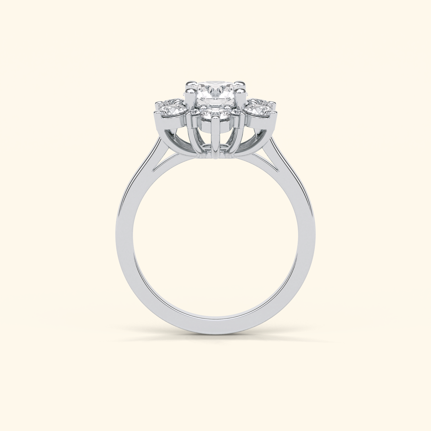 Round Moissanite Cluster Engagement Ring – 1 CT Center Stone in Solid Gold