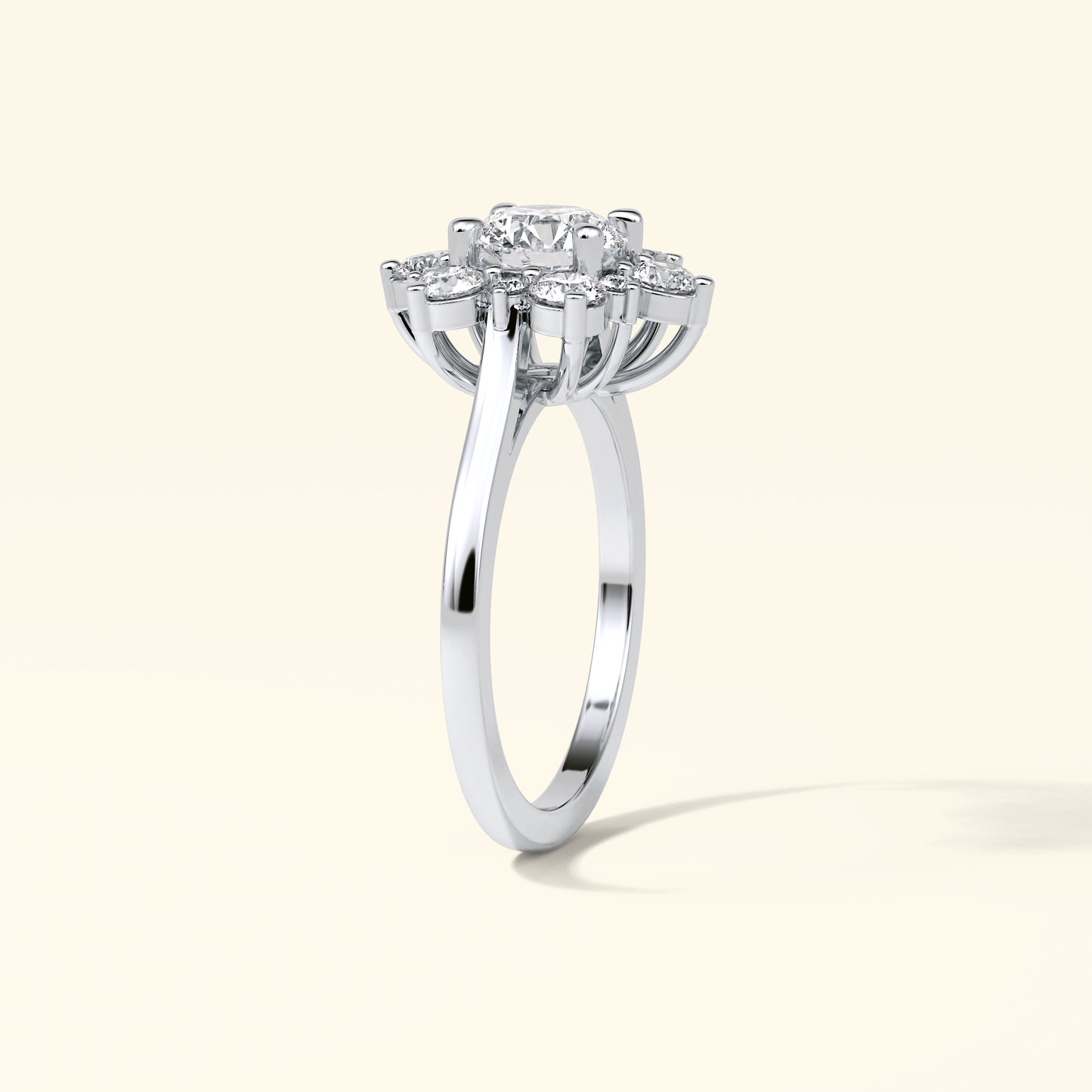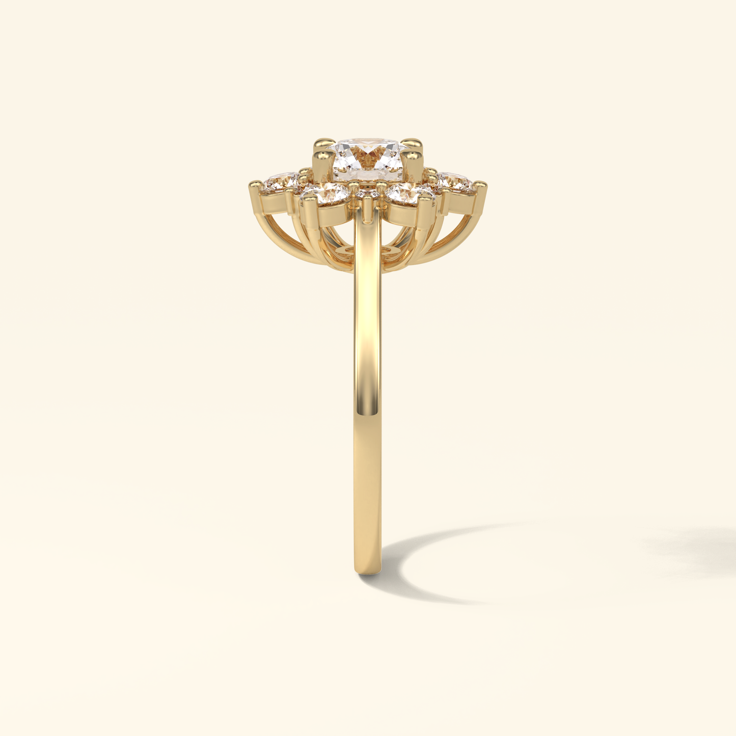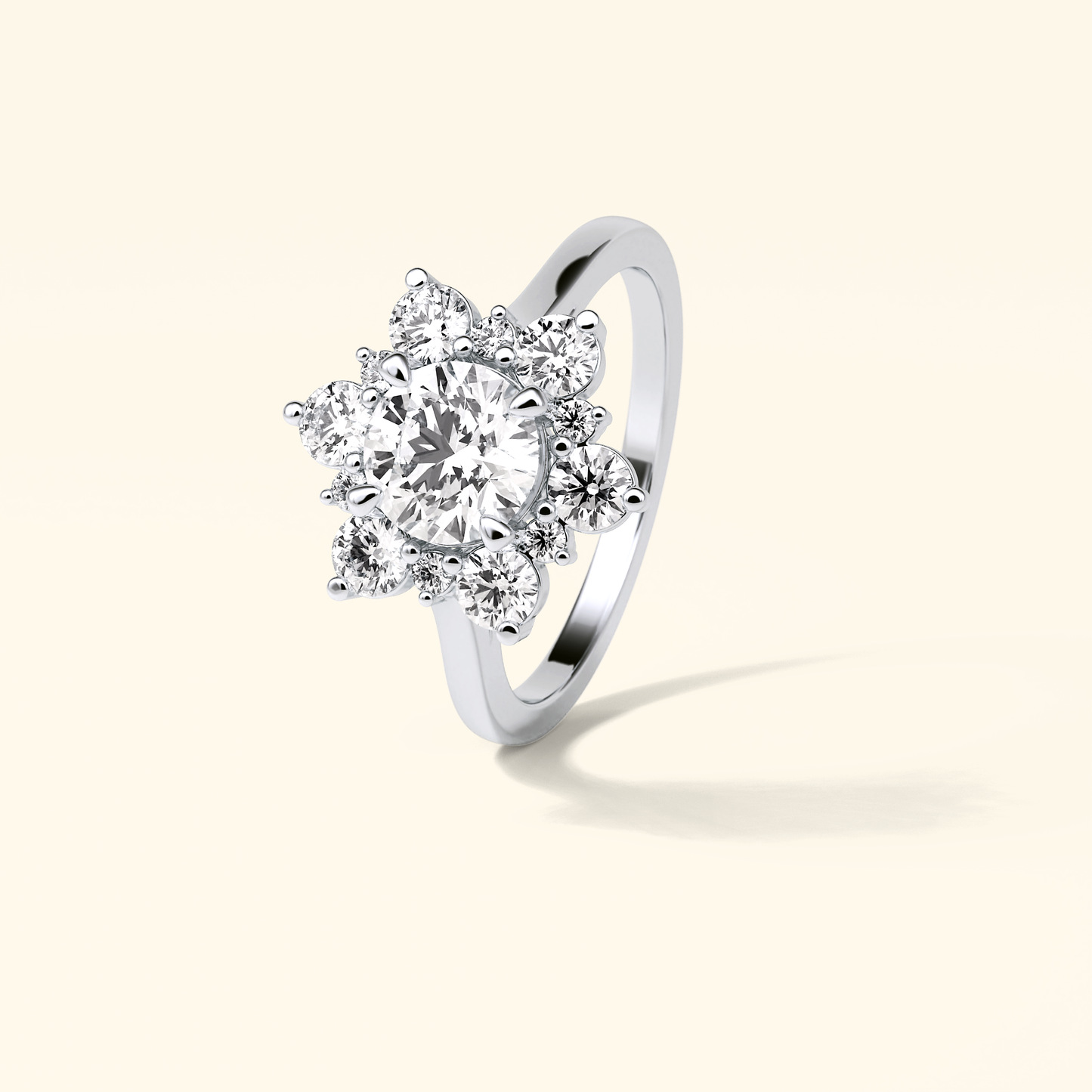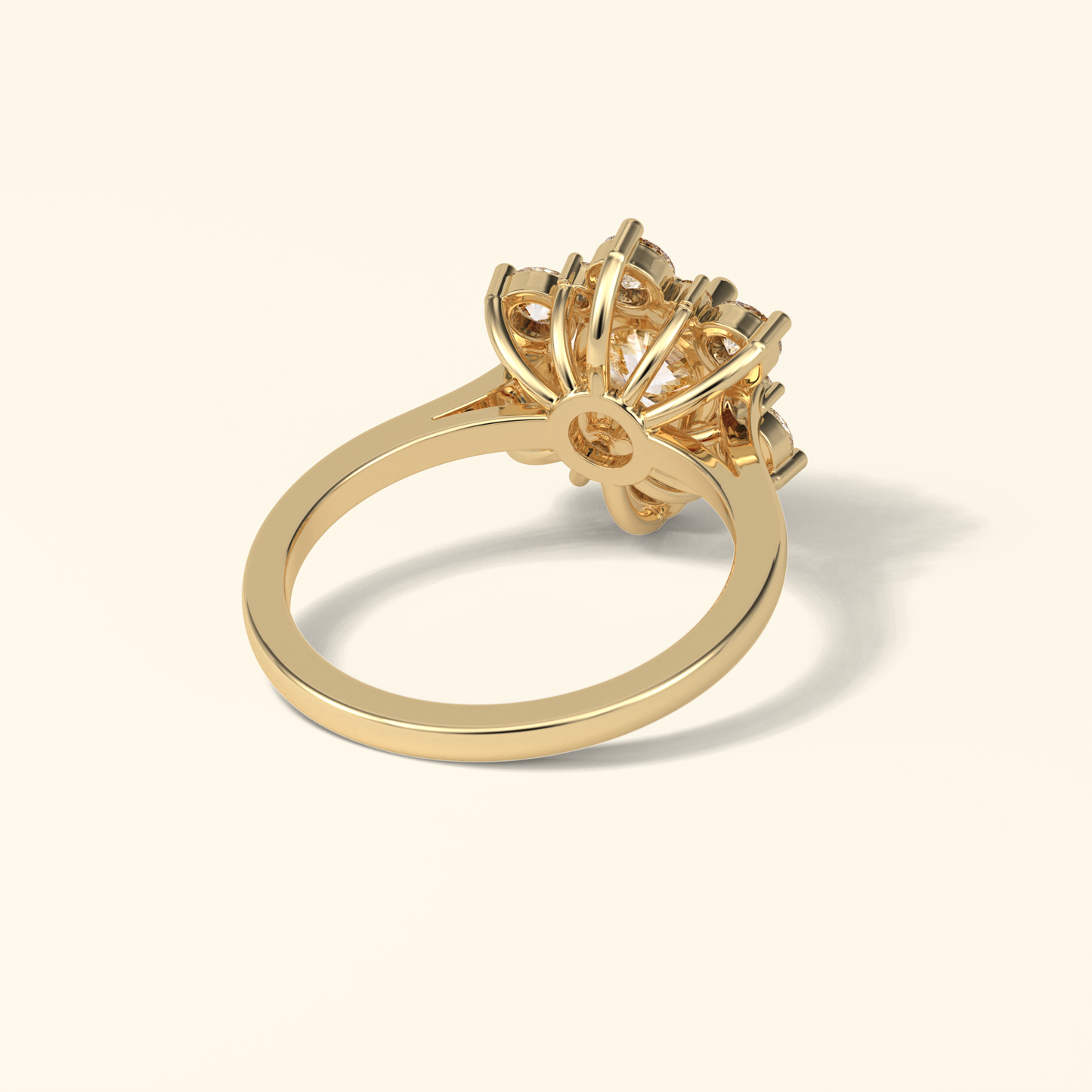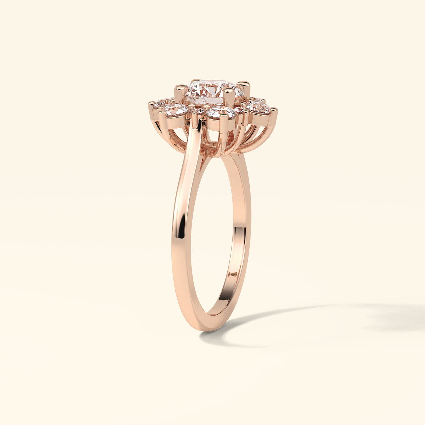 Round Moissanite Cluster Engagement Ring – 1 CT Center Stone in Solid Gold