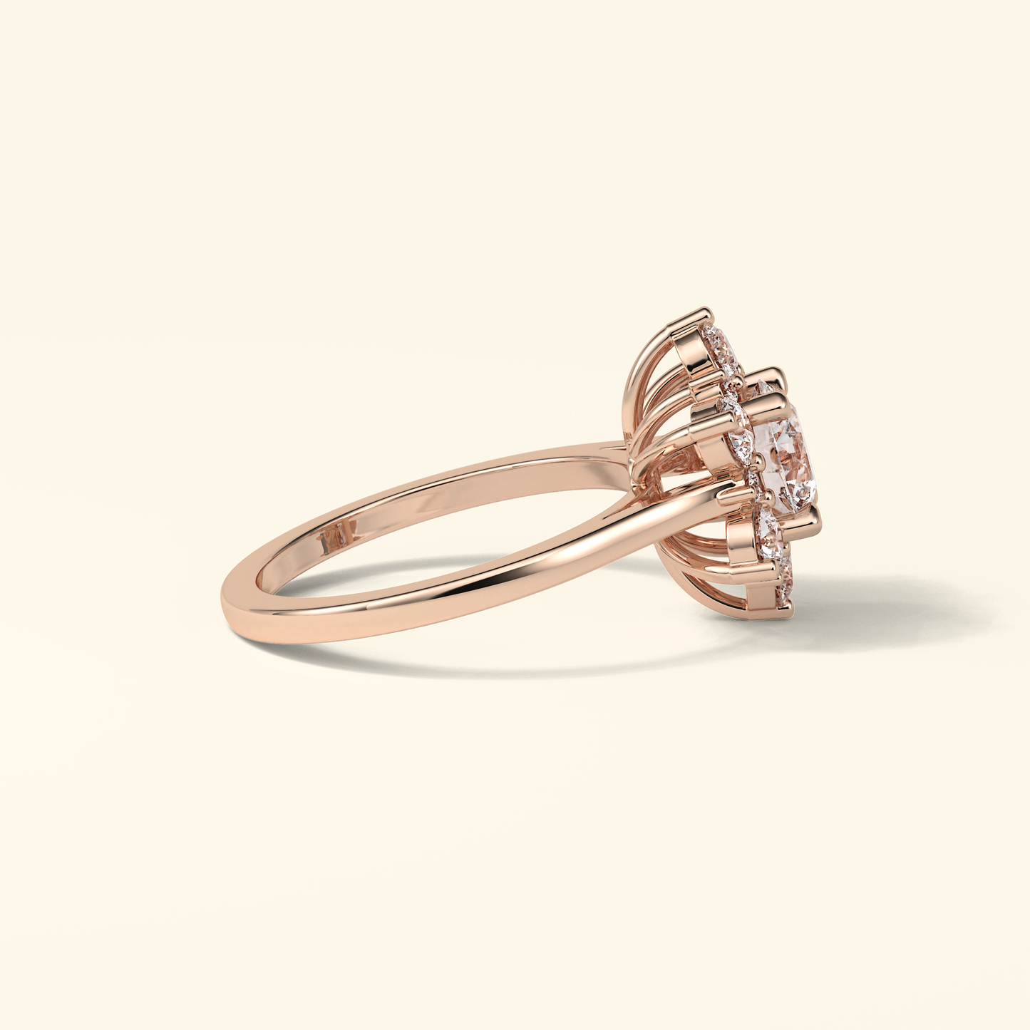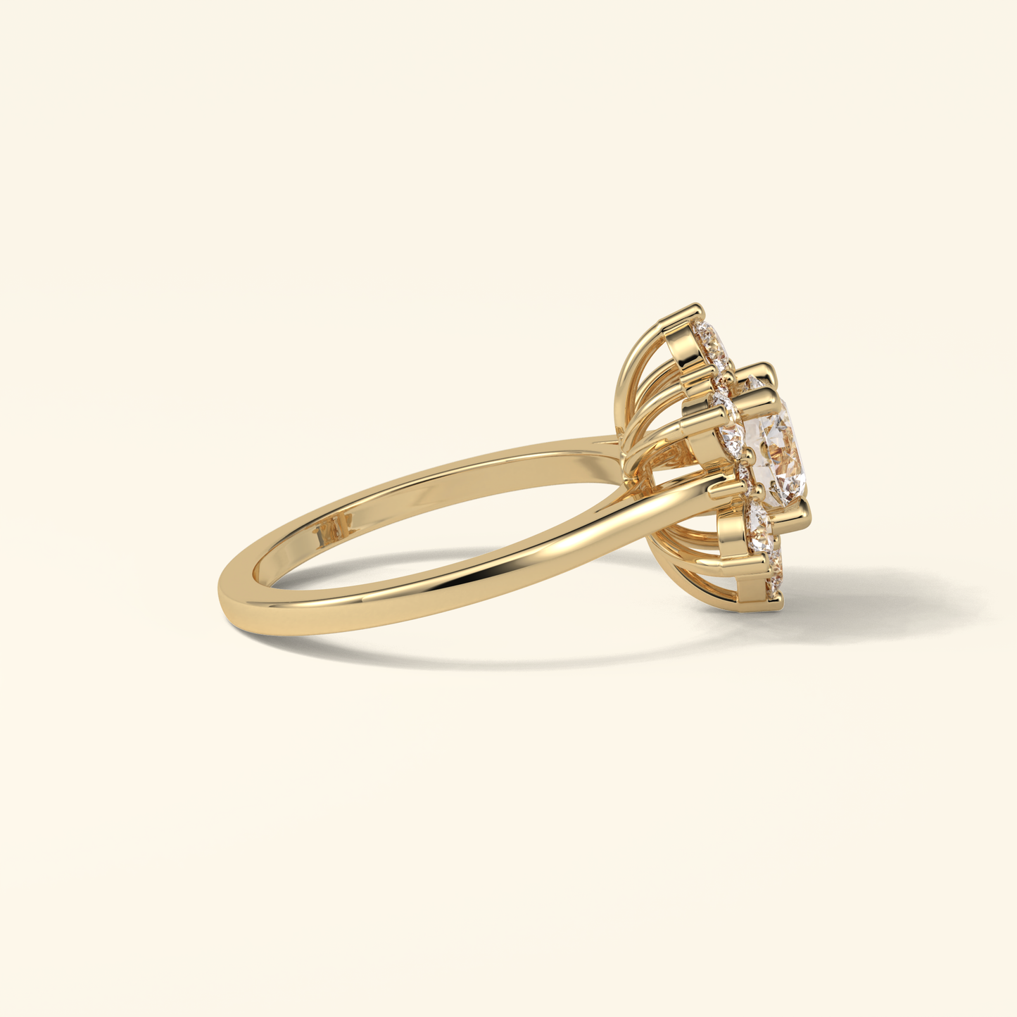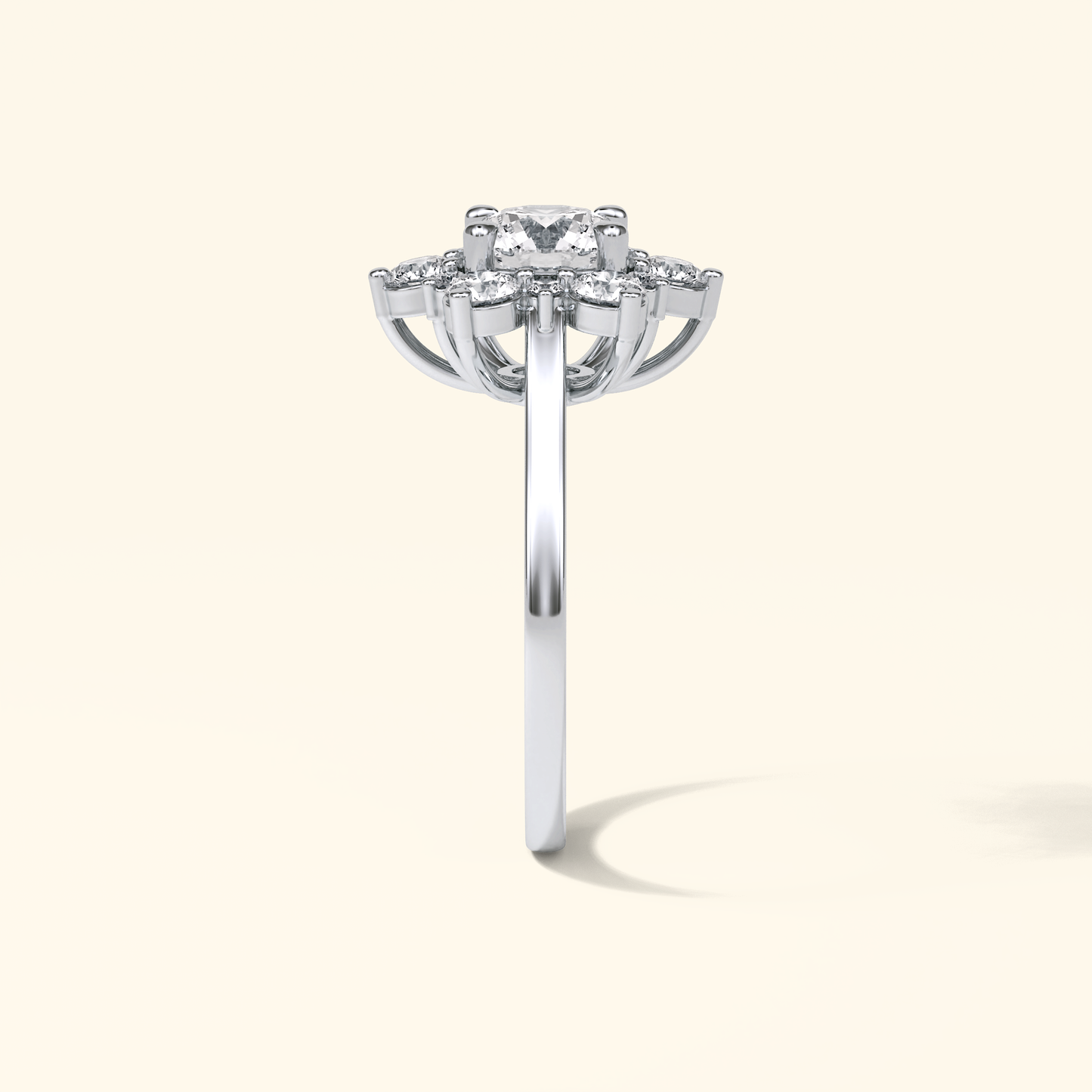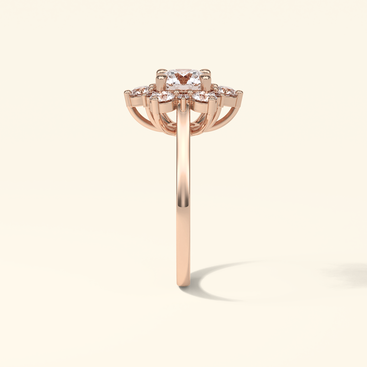 Round Moissanite Cluster Engagement Ring – 1 CT Center Stone in Solid Gold