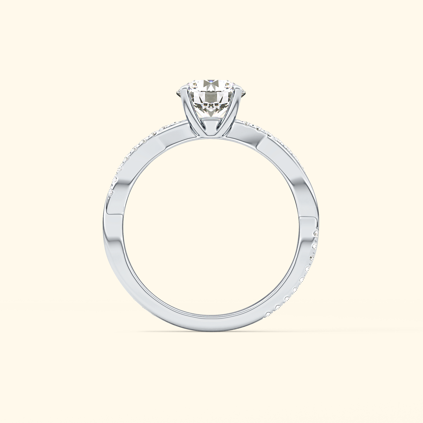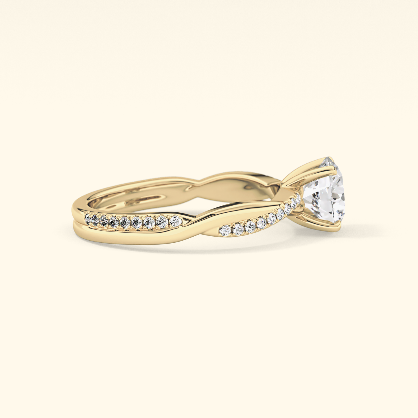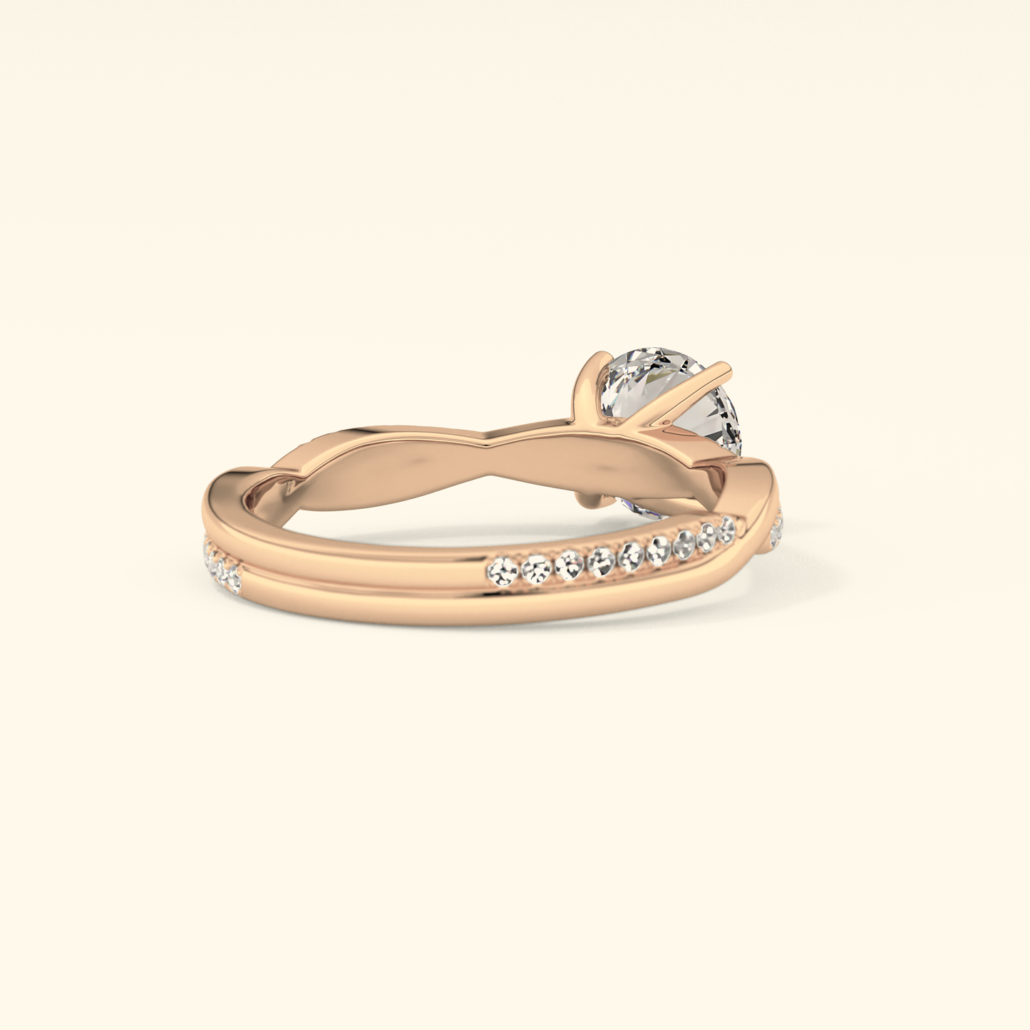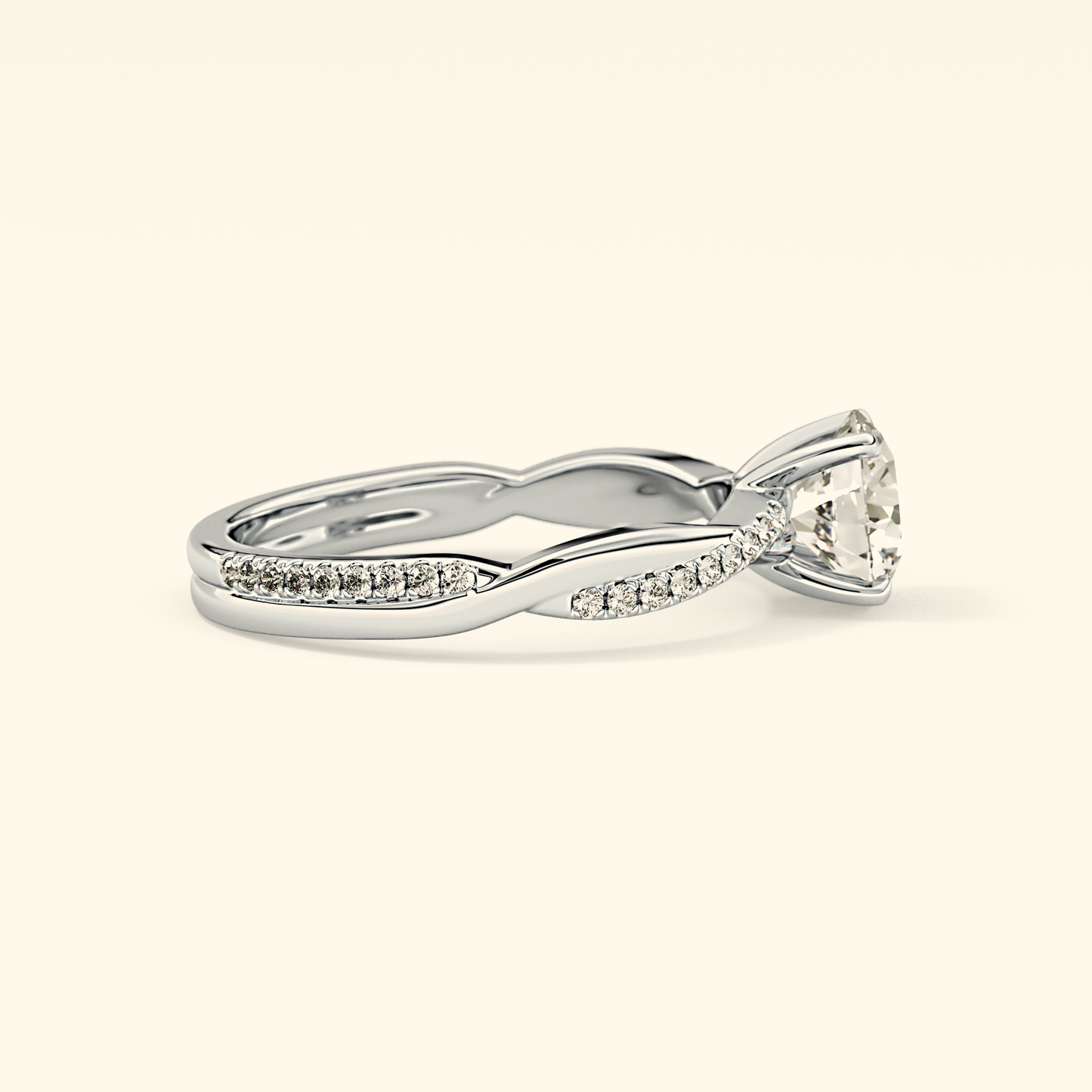 Round Moissanite Engagement Ring – 1.03 CT Center Stone with Criss Cross Pave Band in Solid Gold