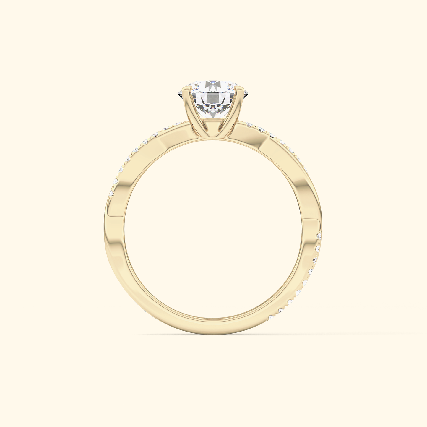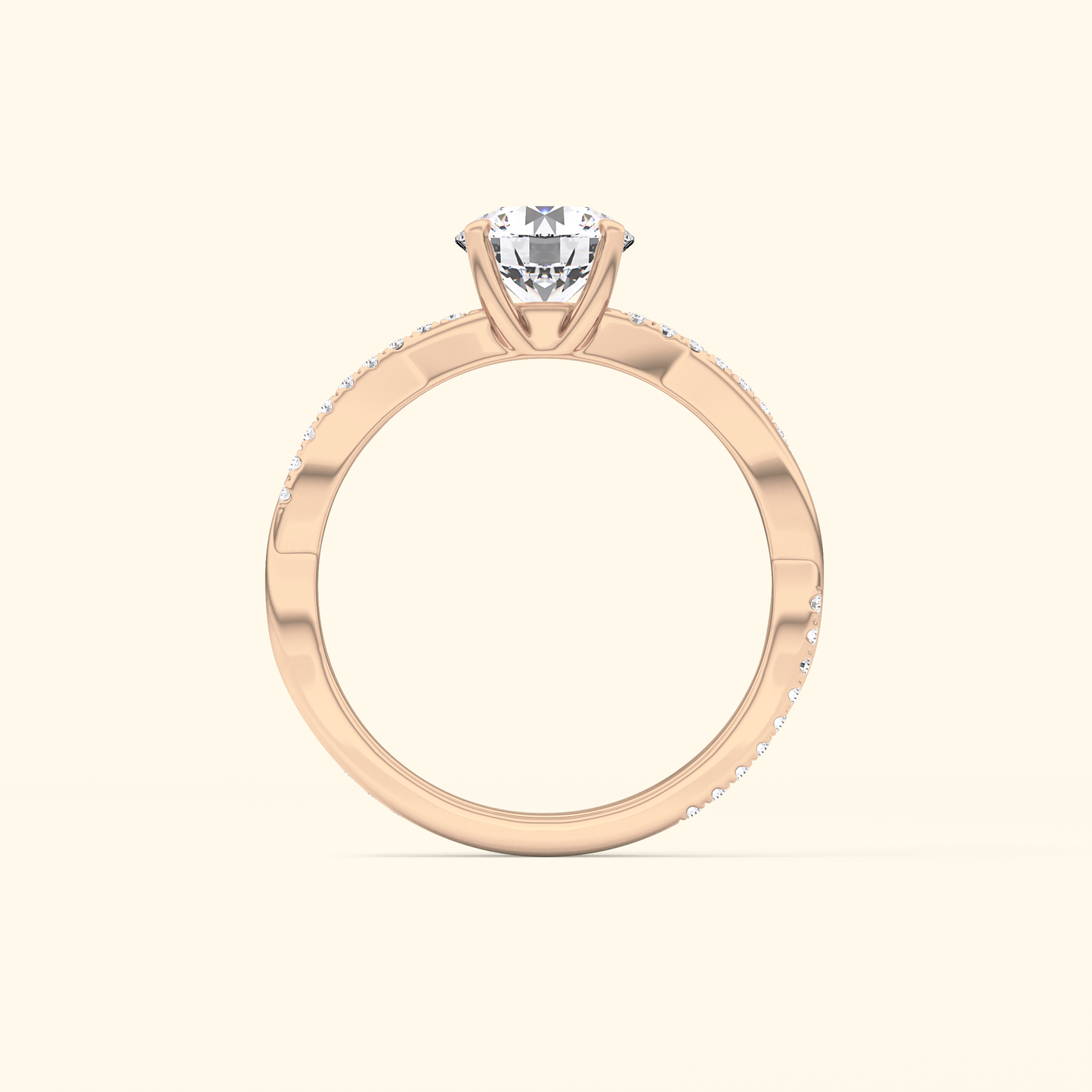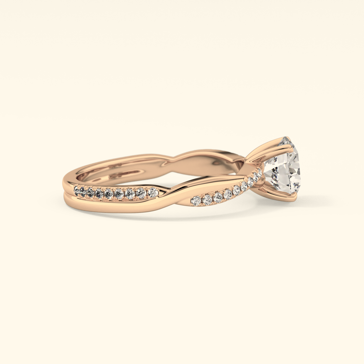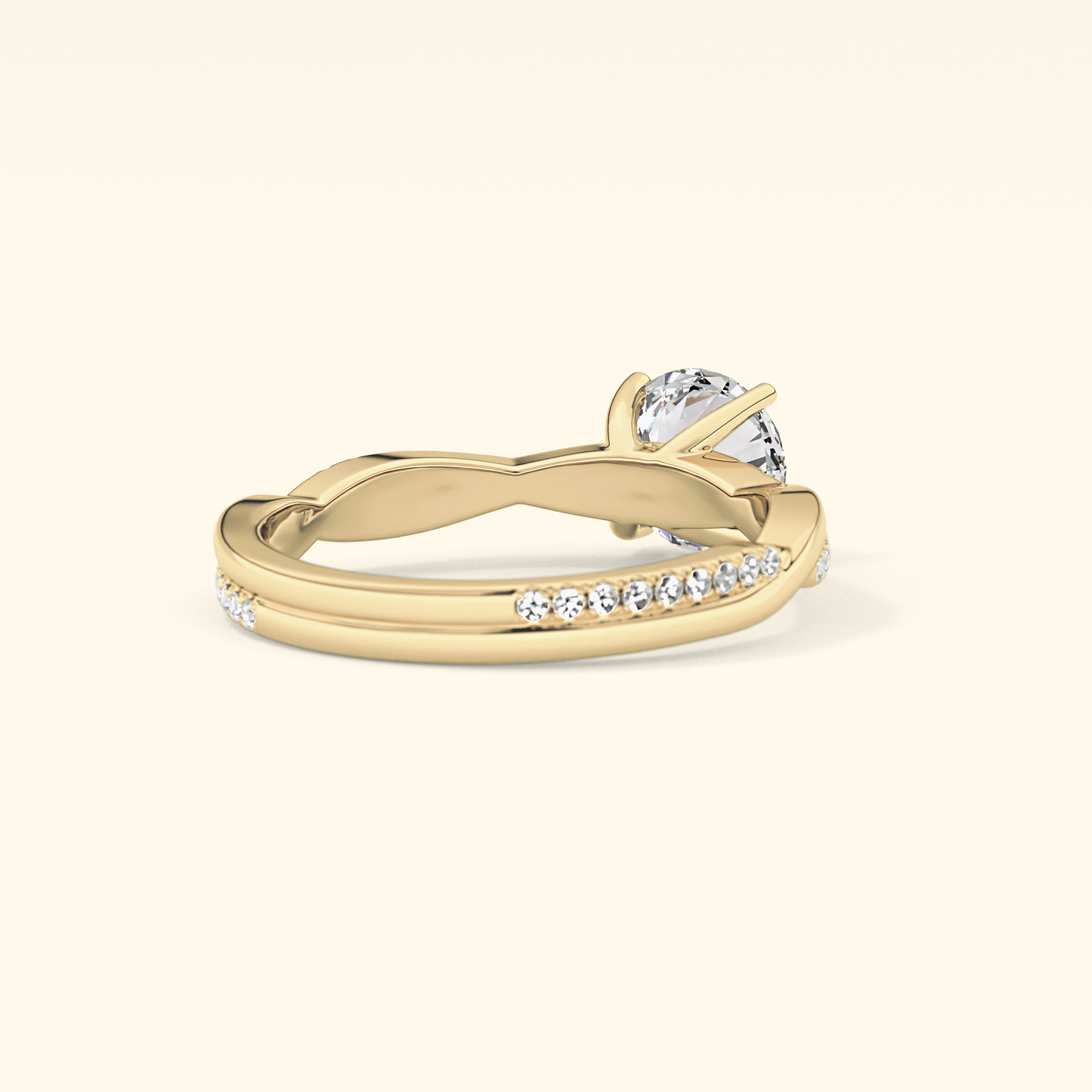 Round Moissanite Engagement Ring – 1.03 CT Center Stone with Criss Cross Pave Band in Solid Gold