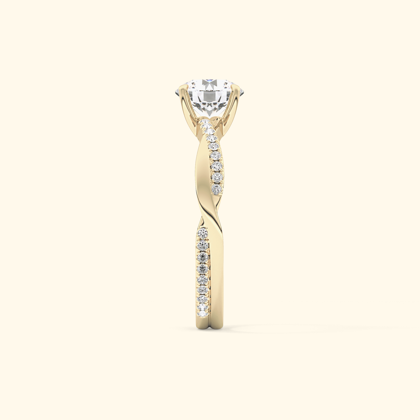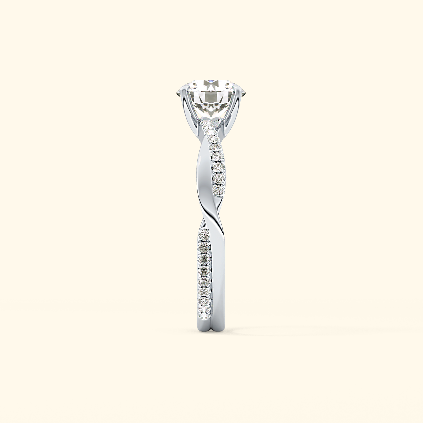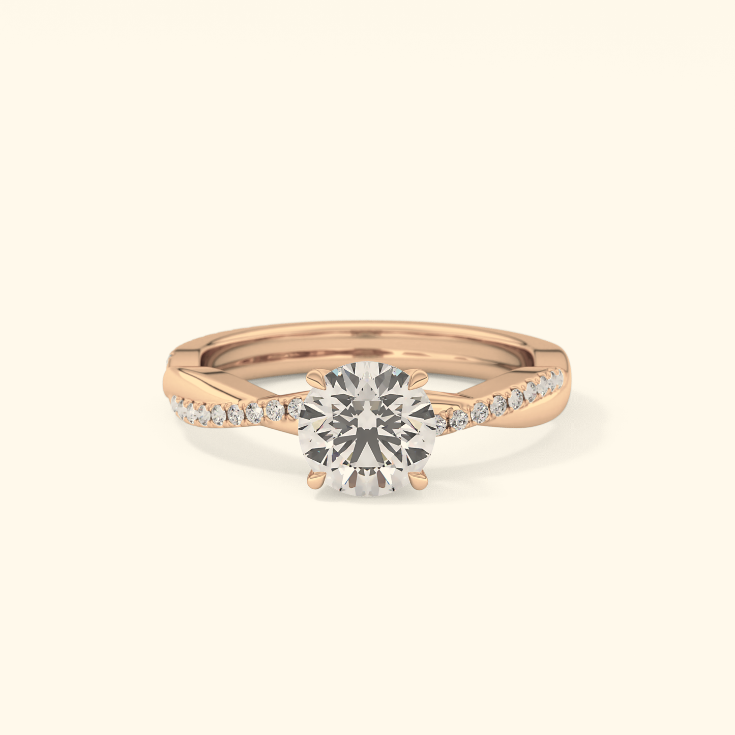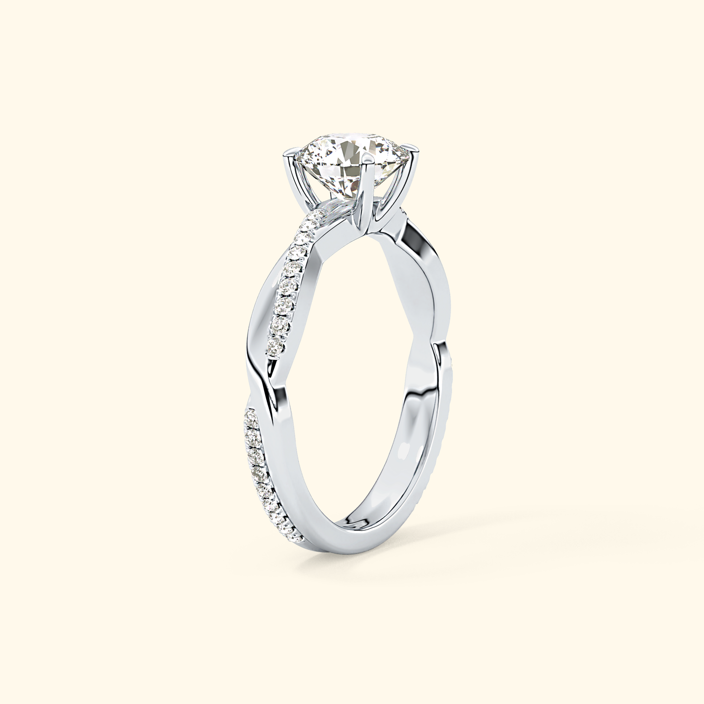 Round Moissanite Engagement Ring – 1.03 CT Center Stone with Criss Cross Pave Band in Solid Gold