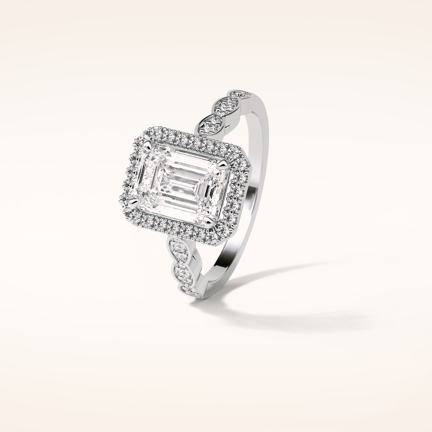 Emerald Pave & Halo Lab Grown Diamond Engagement Ring