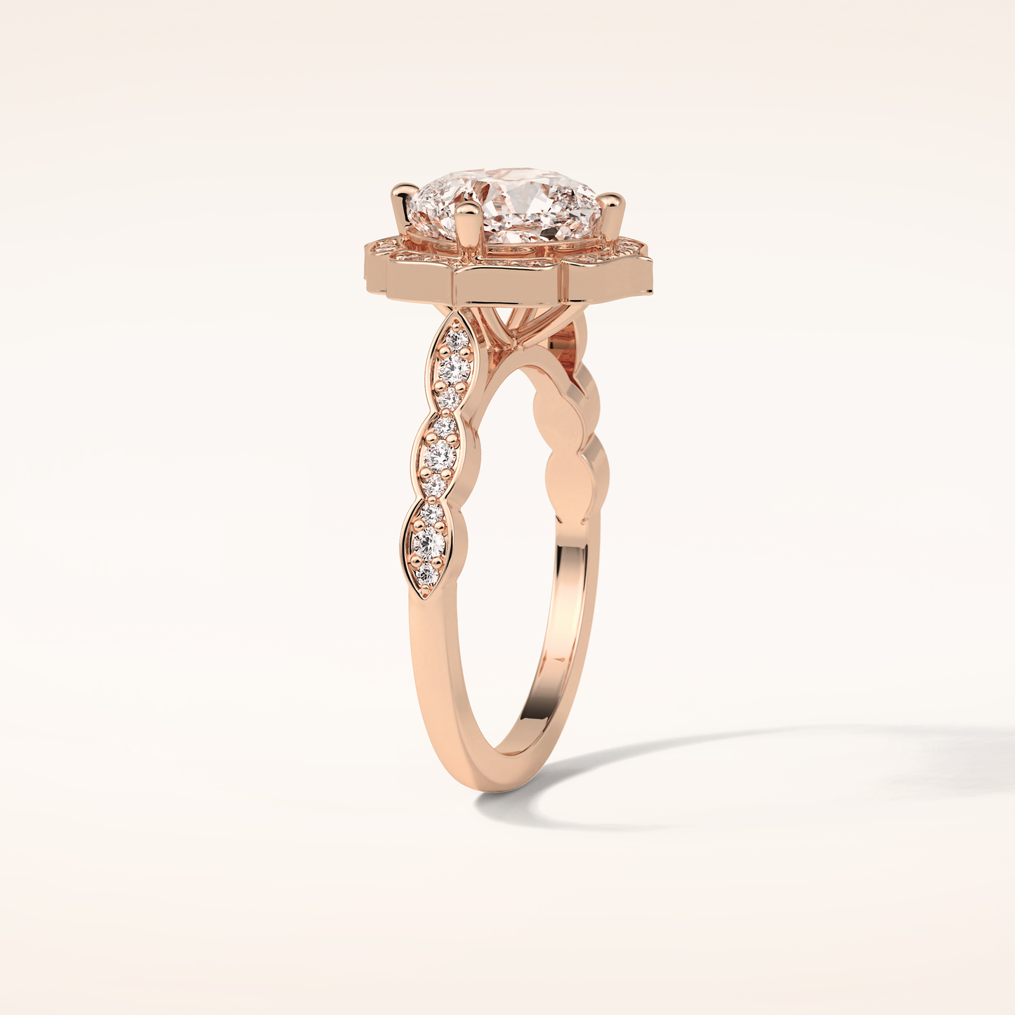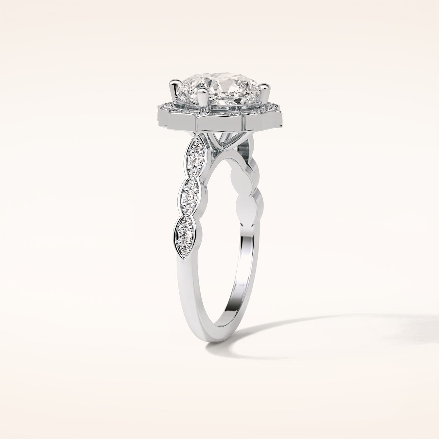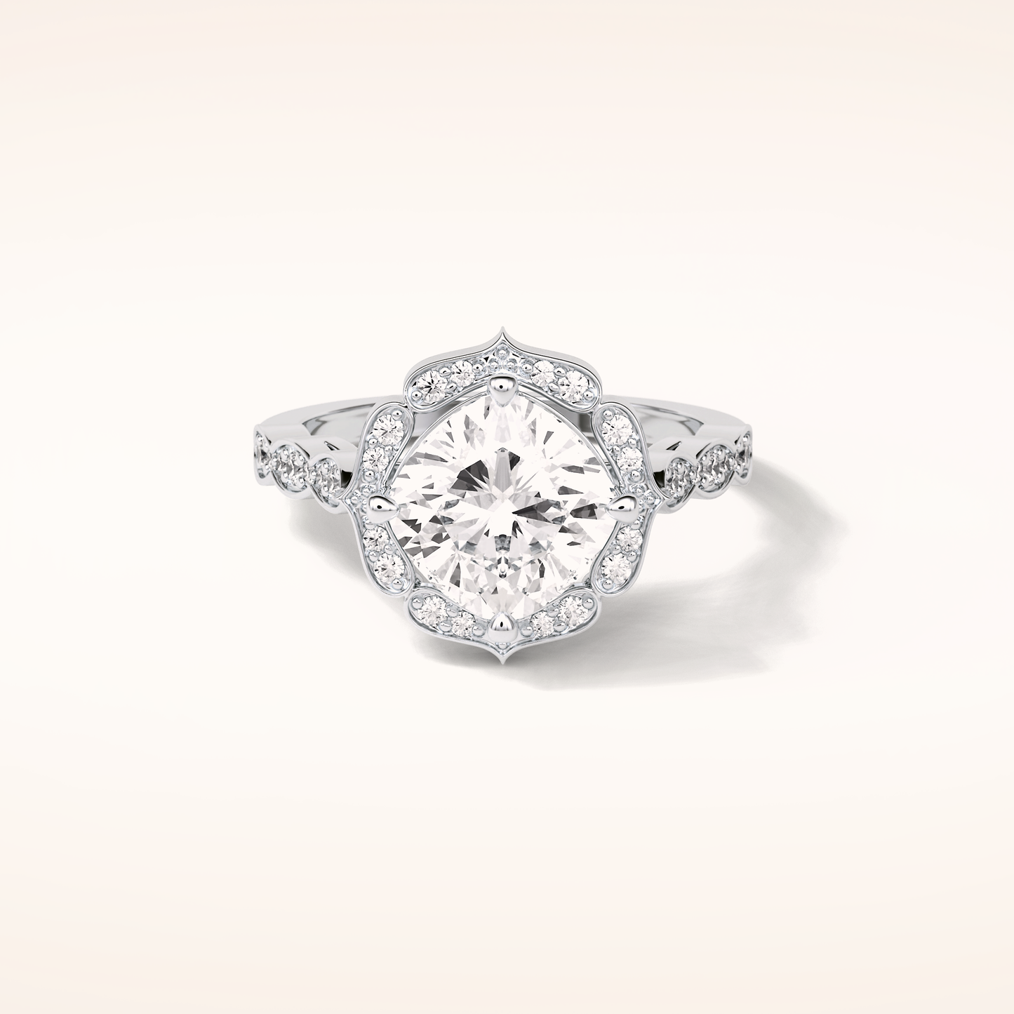 Cushion Cut Pave & Halo Lab Grown Diamond Engagement Ring
