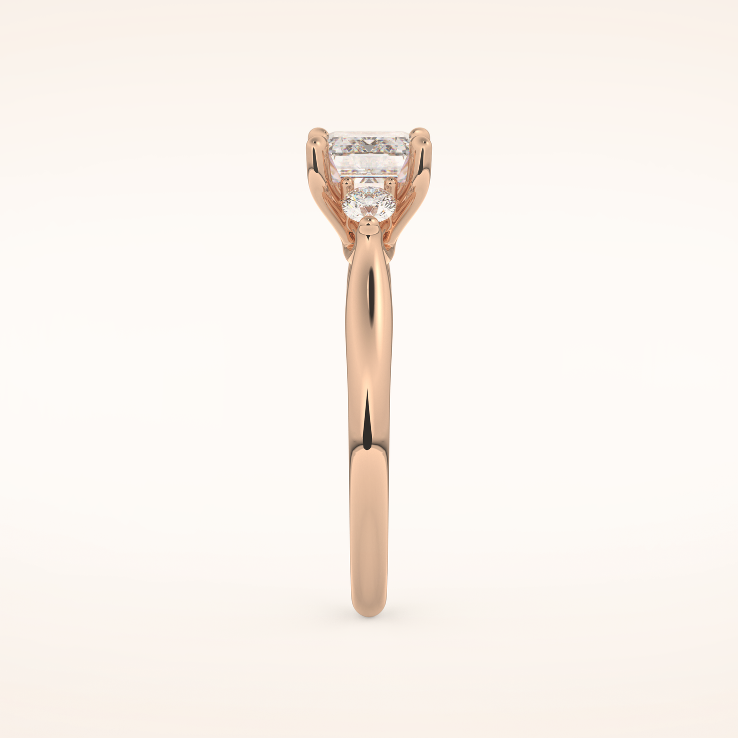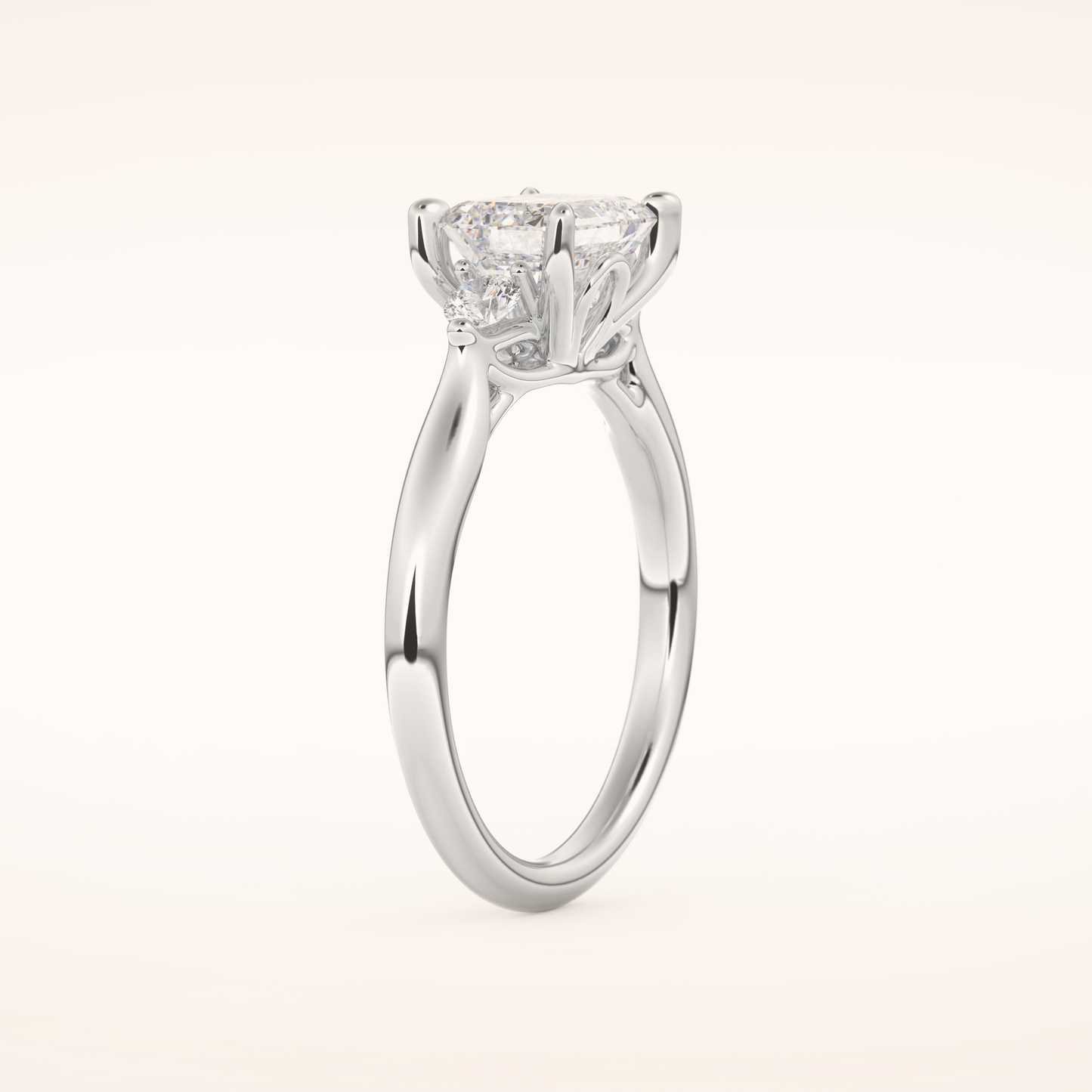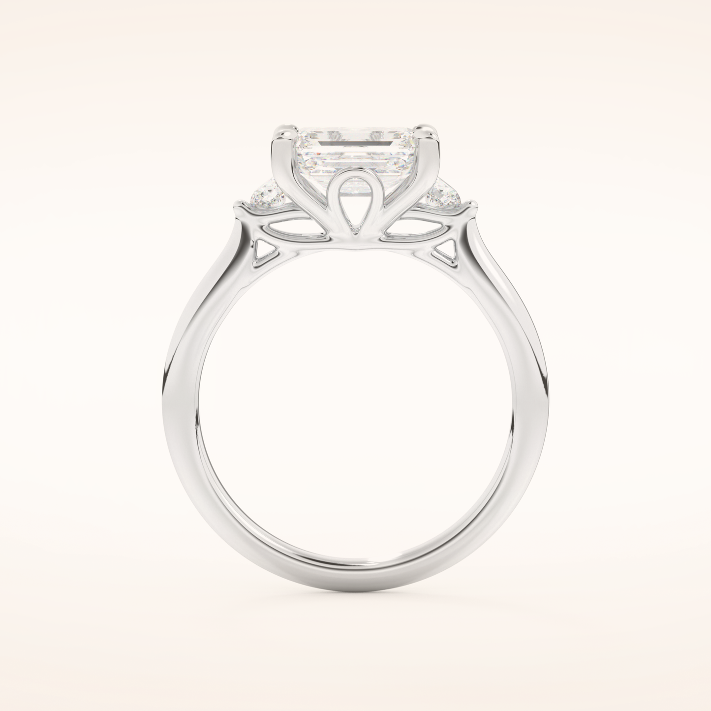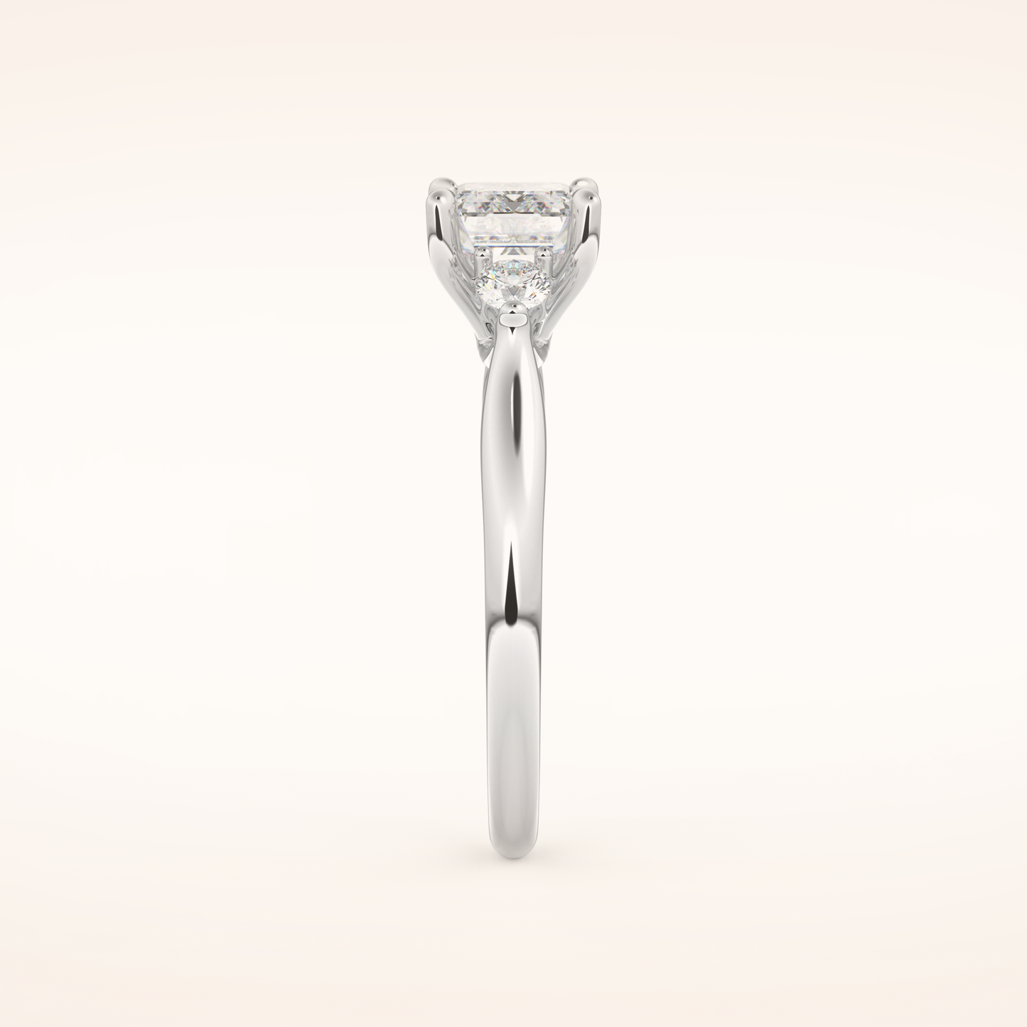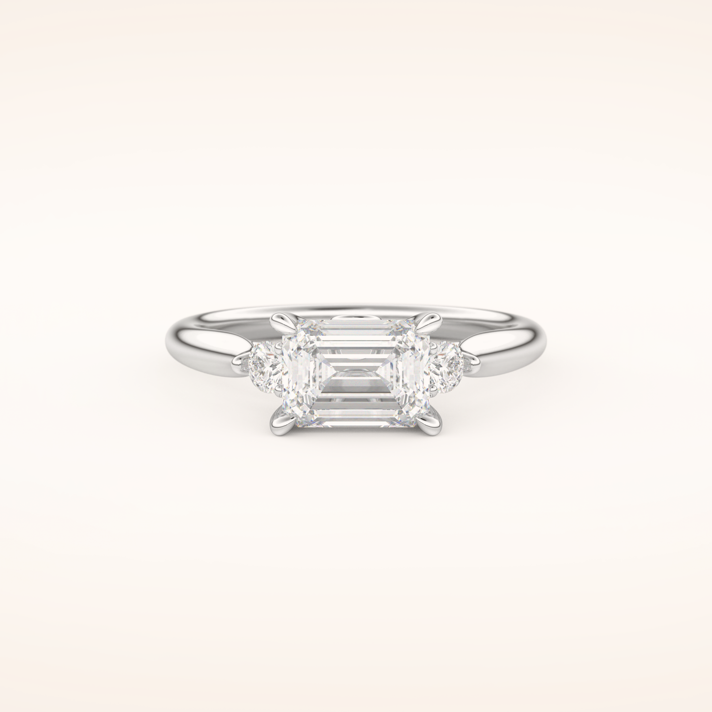 East West Emerald Three Stone Lab Grown Diamond Engagement Ring