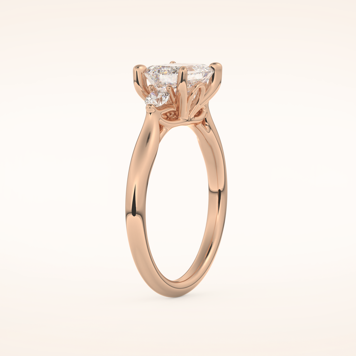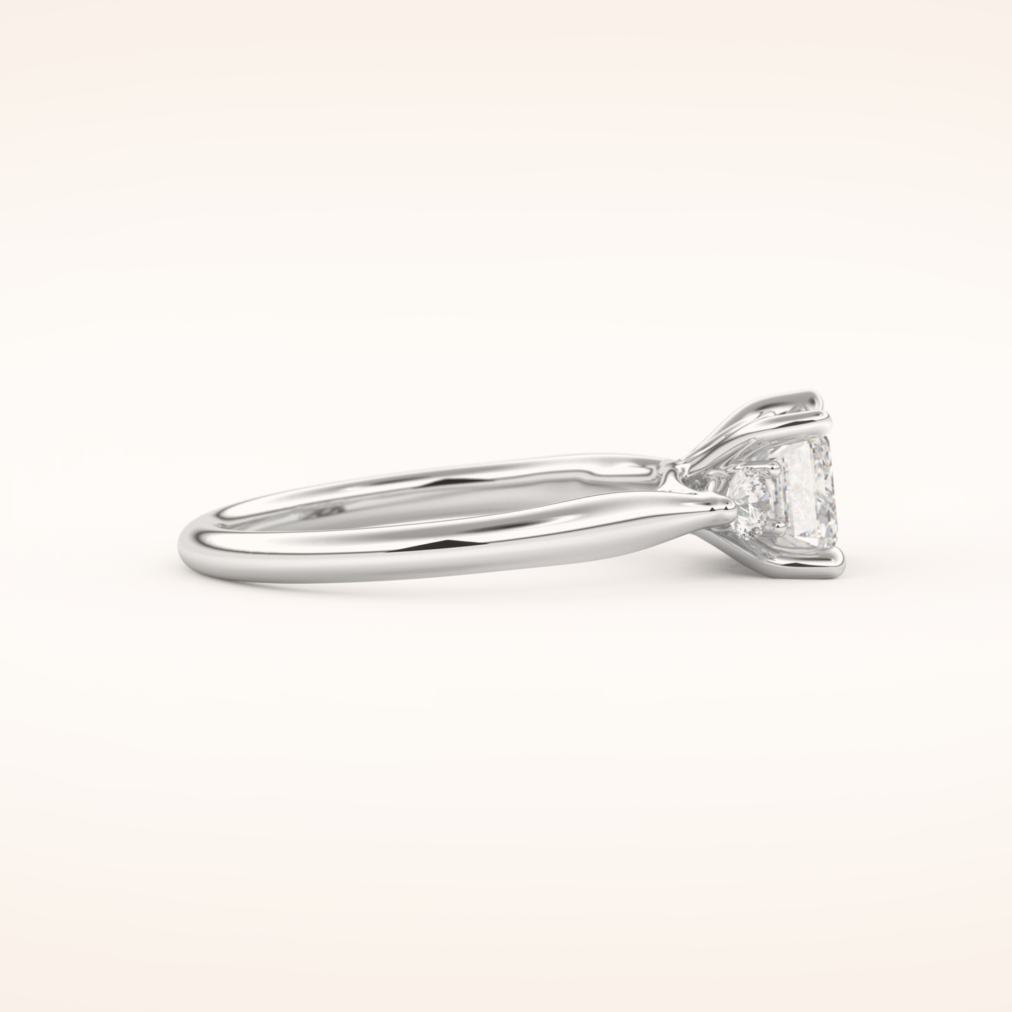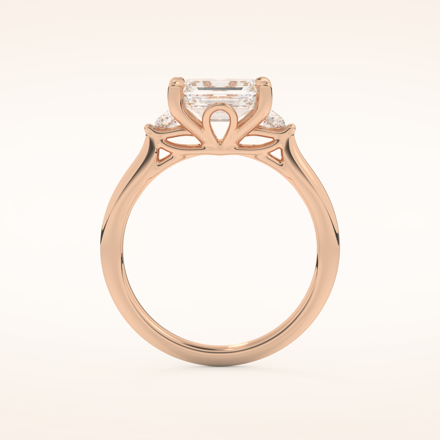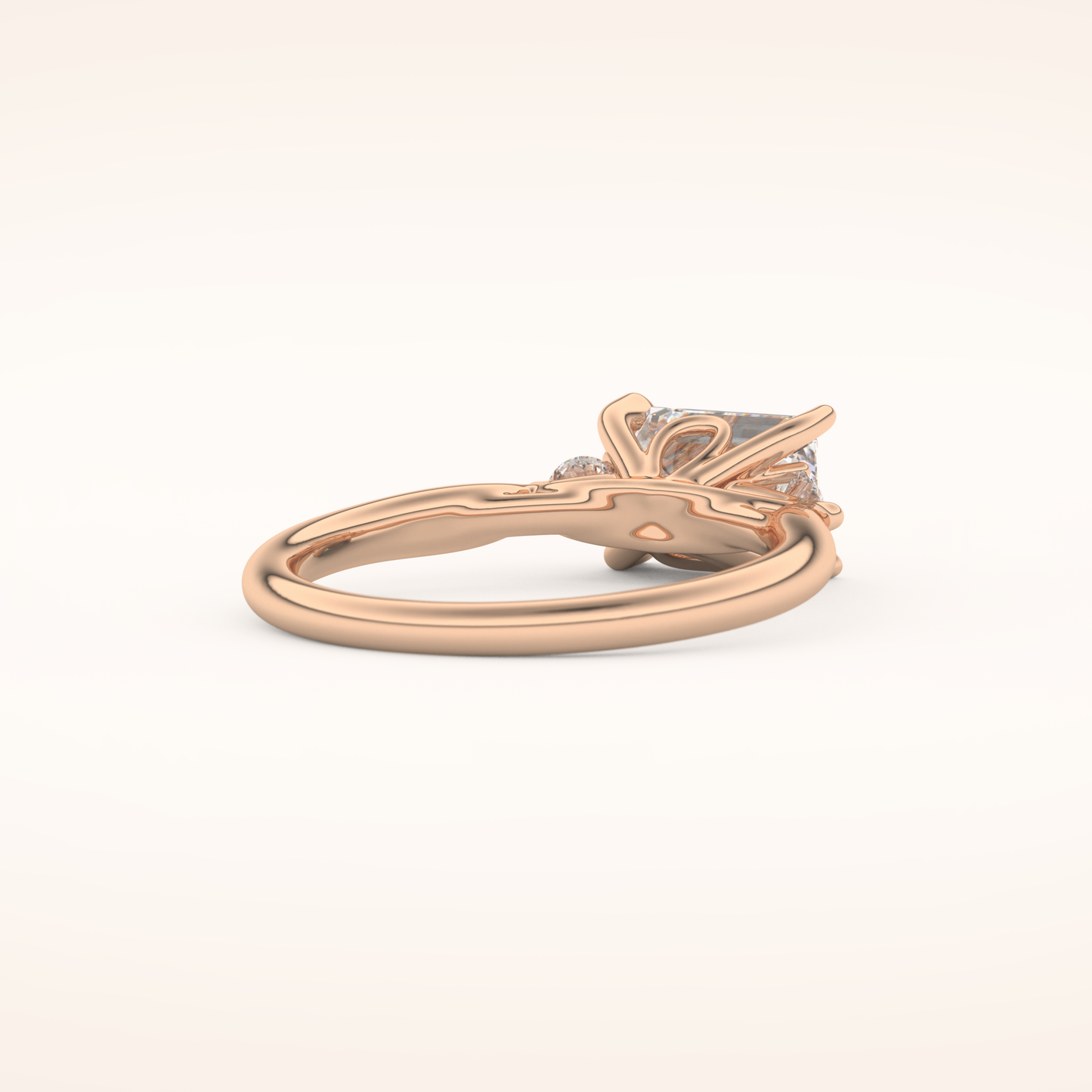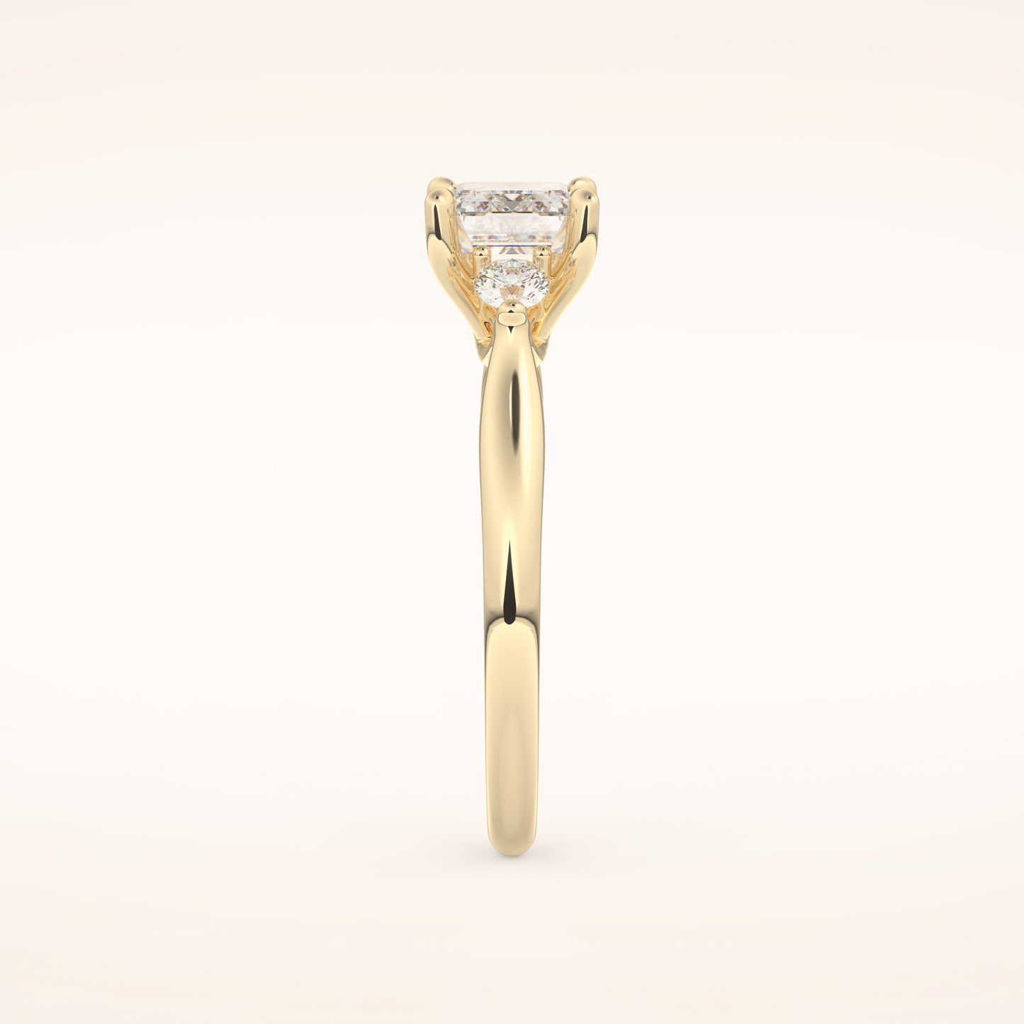 East West Emerald Three Stone Lab Grown Diamond Engagement Ring