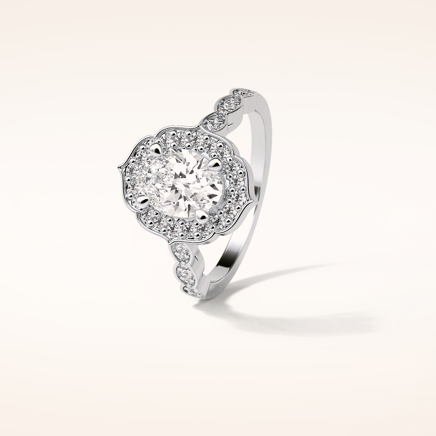 Oval Pave & Halo Lab Grown Diamond Engagement Ring