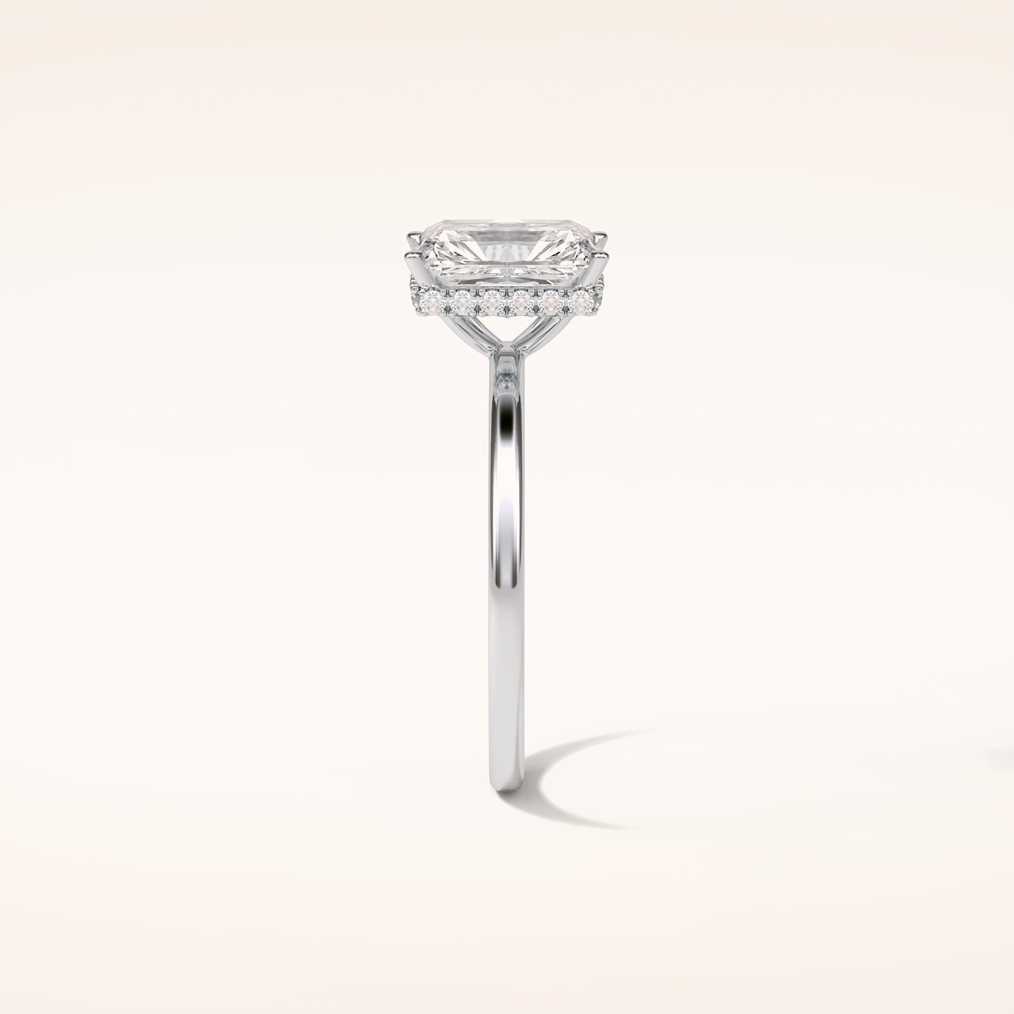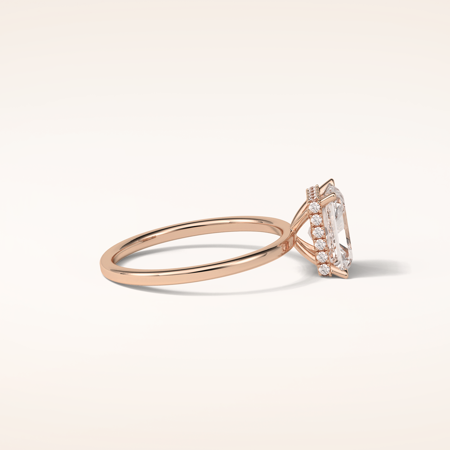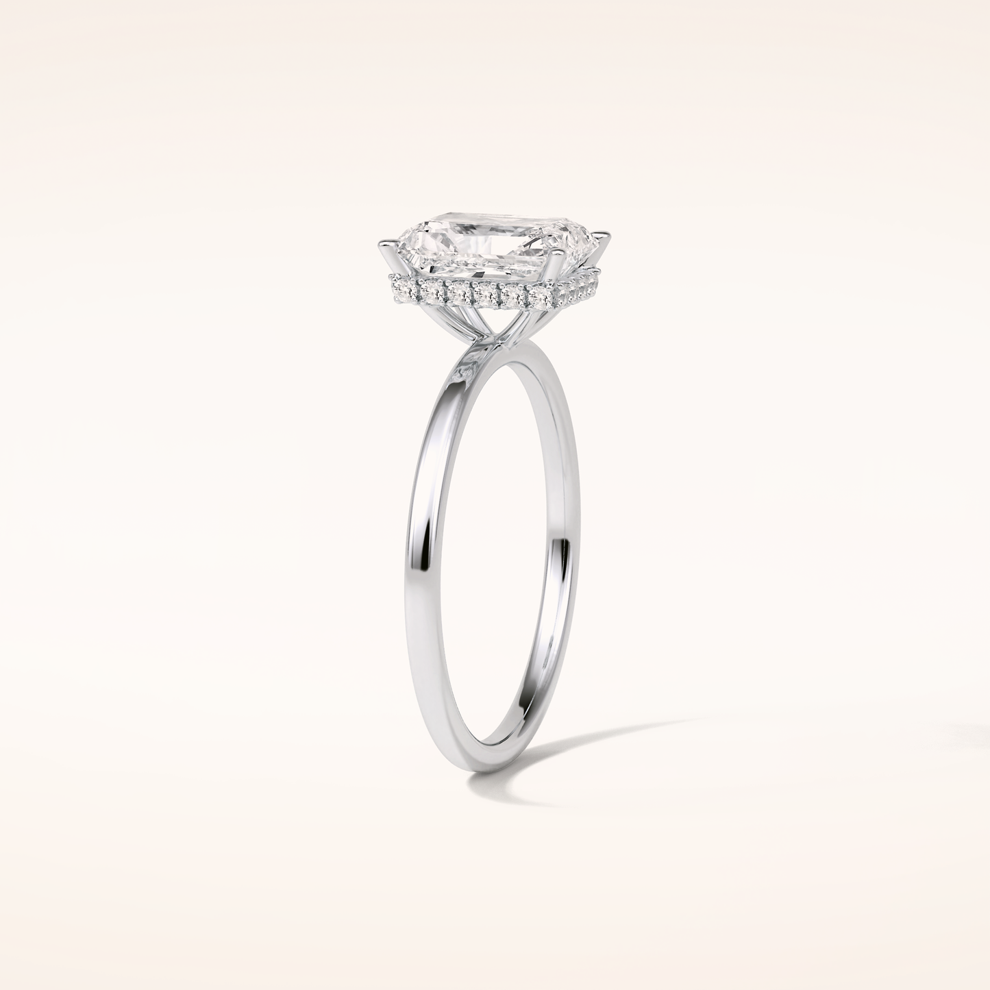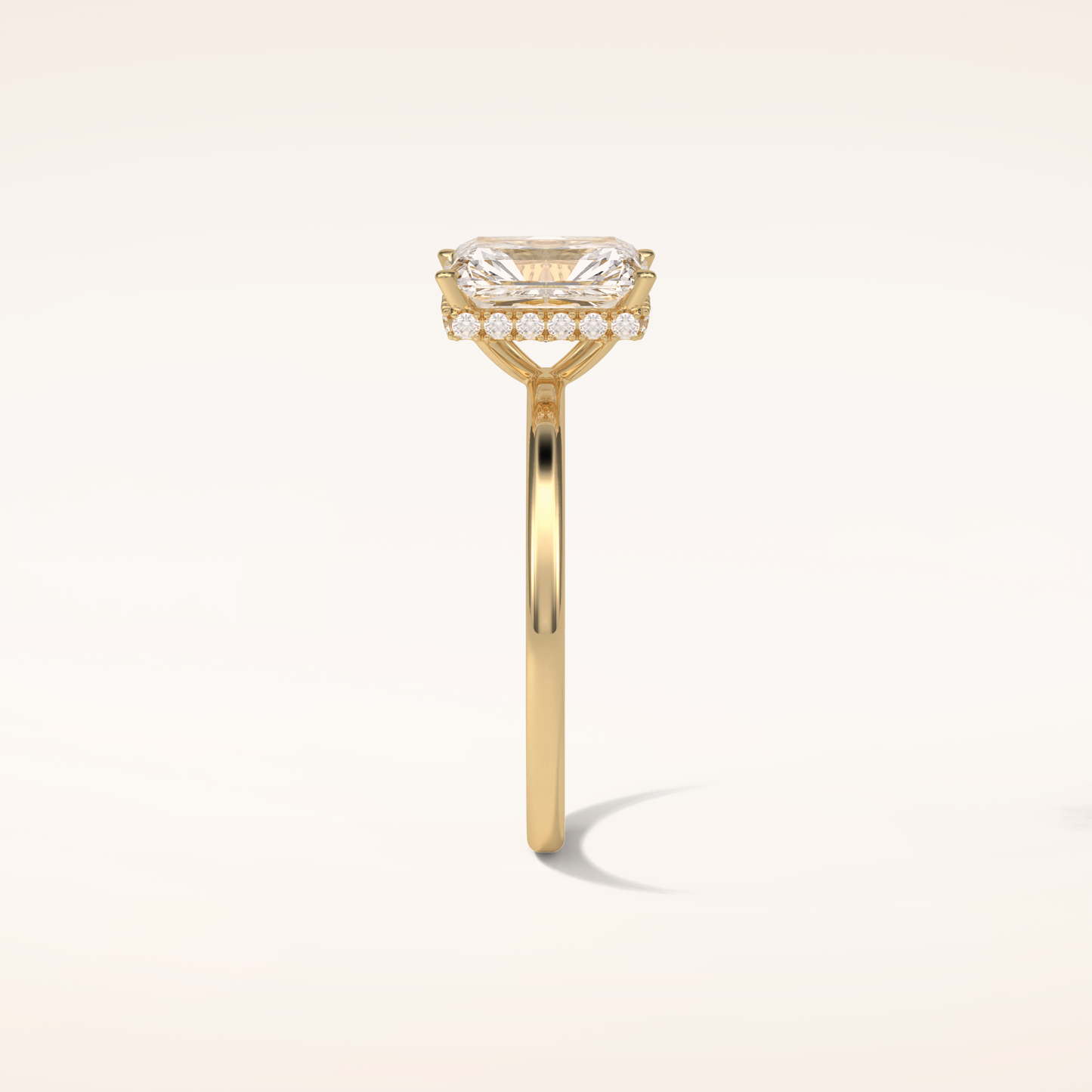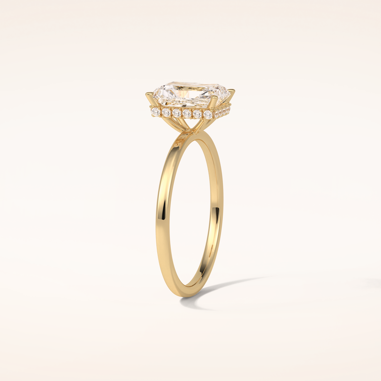 A luminous Radiant-cut lab grown diamond sits at the center, capturing light with extraordinary fire. It is gracefully balanced by a 0.14 TCW Round side diamond that adds depth, dimension, and a soft, romantic glow. The band is thoughtfully accented with two additional stones, creating a seamless sparkle that dances with every movement. Choose your perfect metal in 14KT or 18KT, available in Yellow, White, or Rose Gold.
