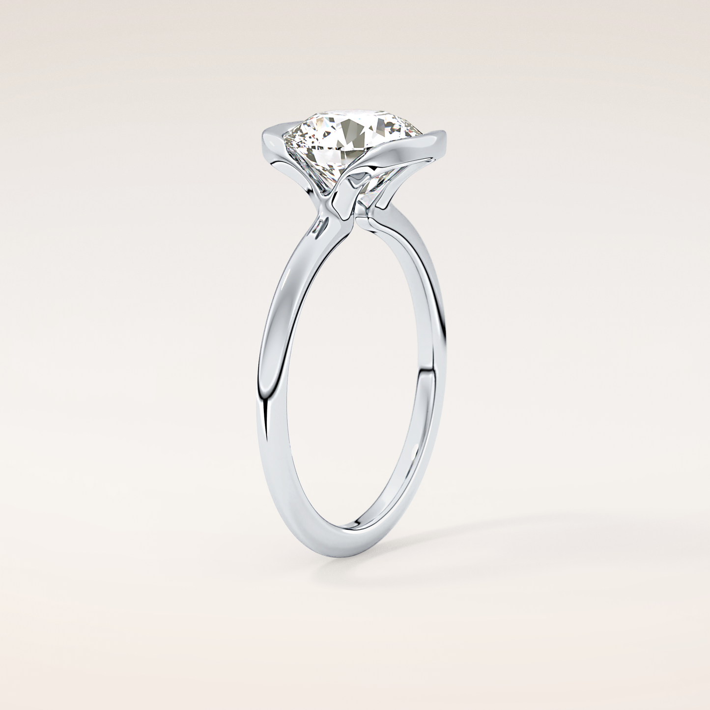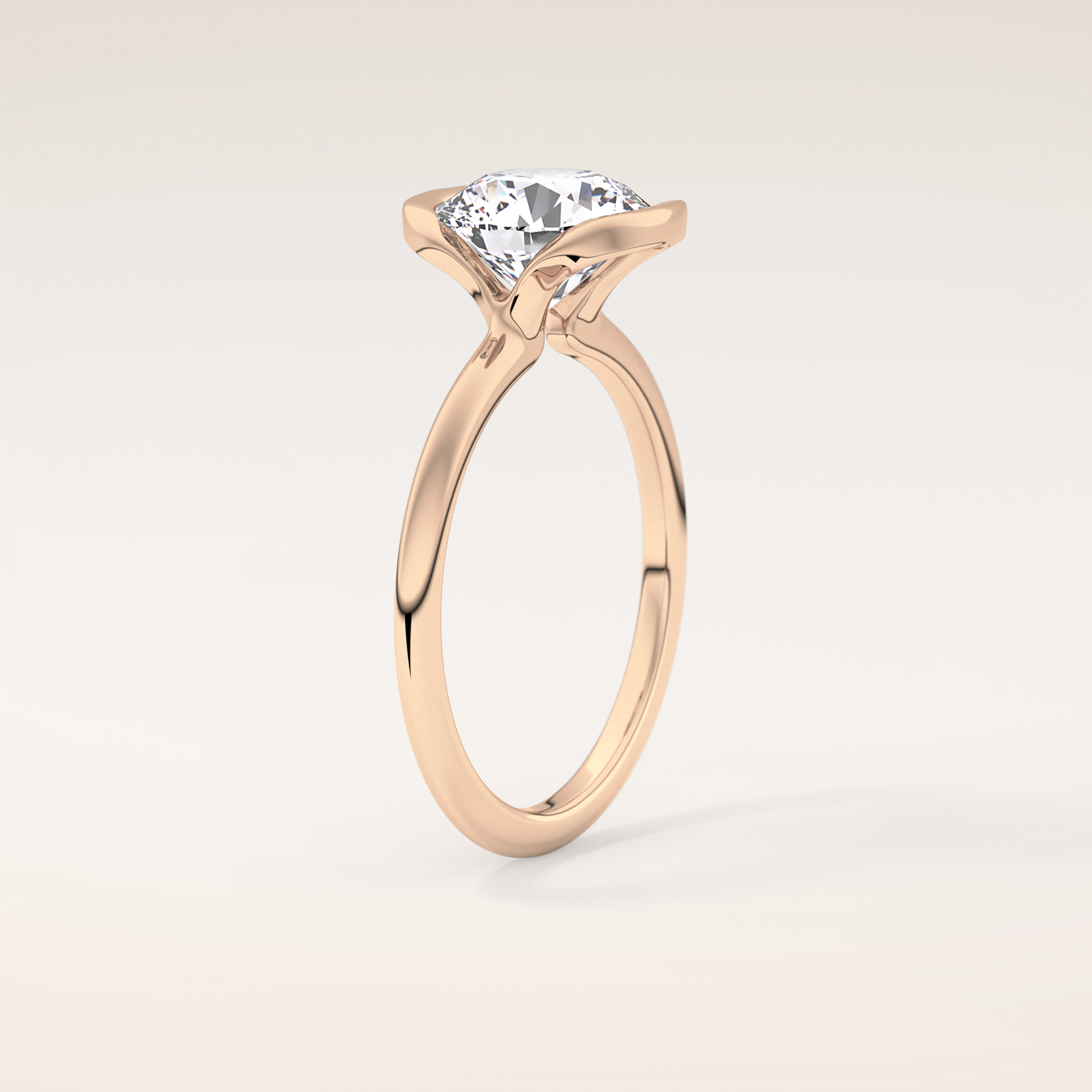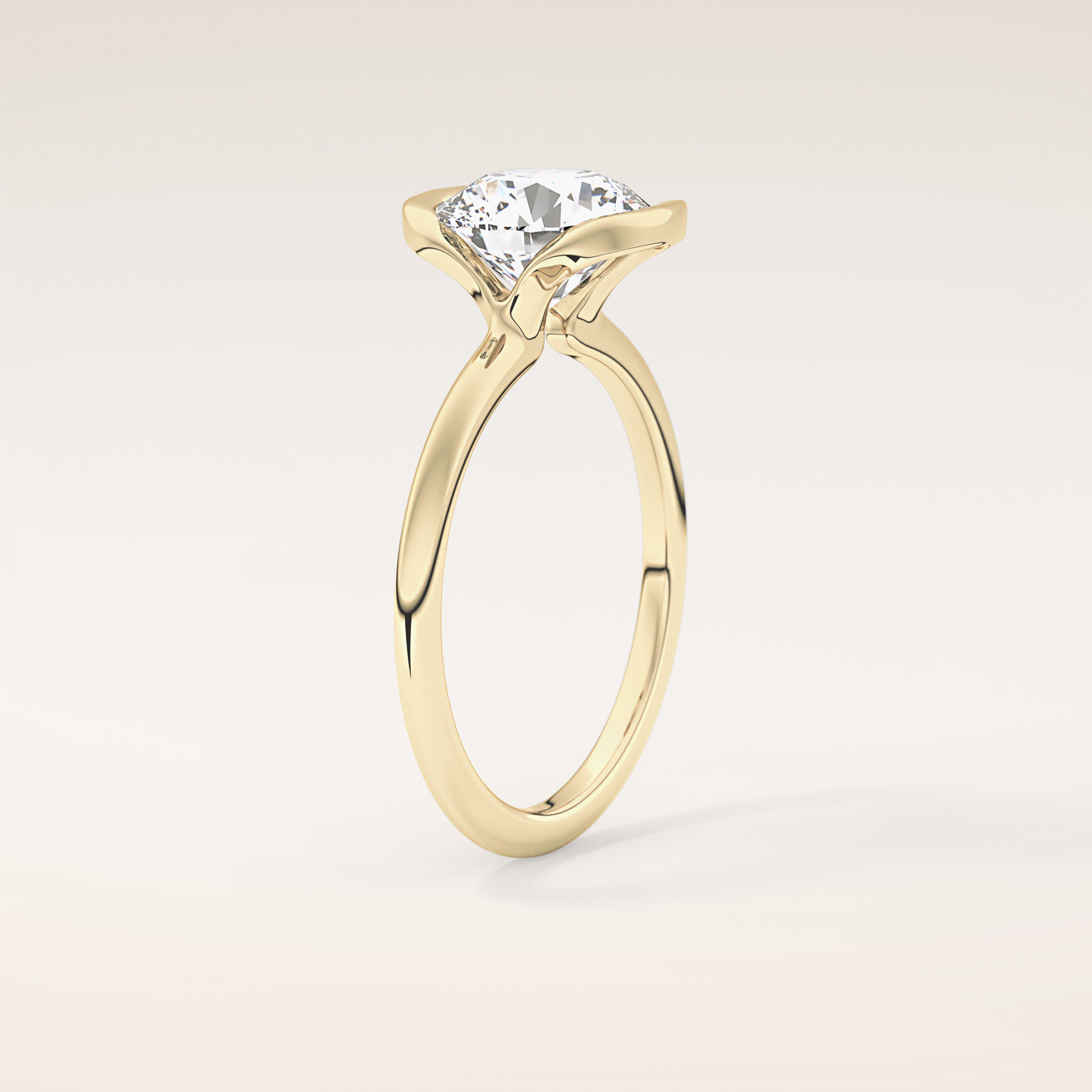 Round Half Bezel Lab Grown Diamond Engagement Ring