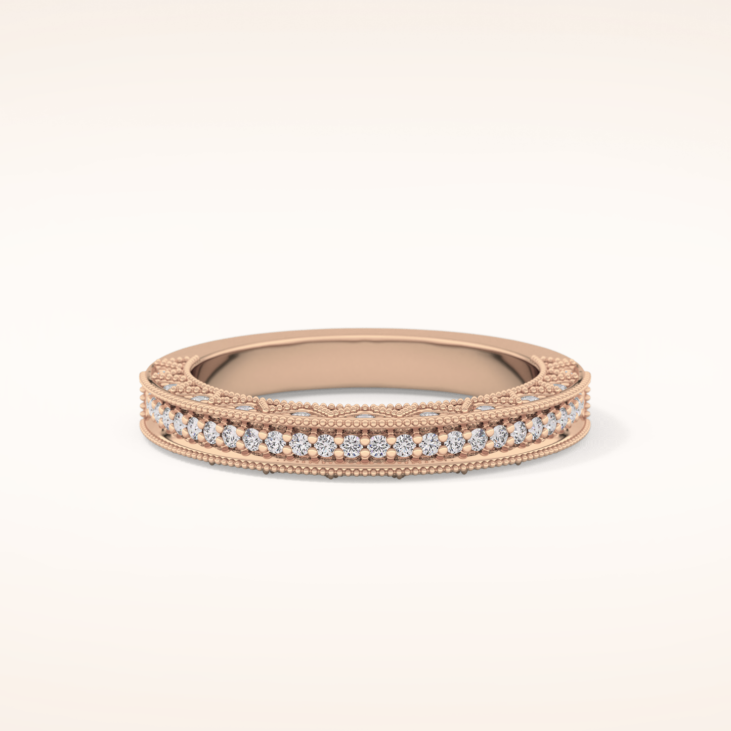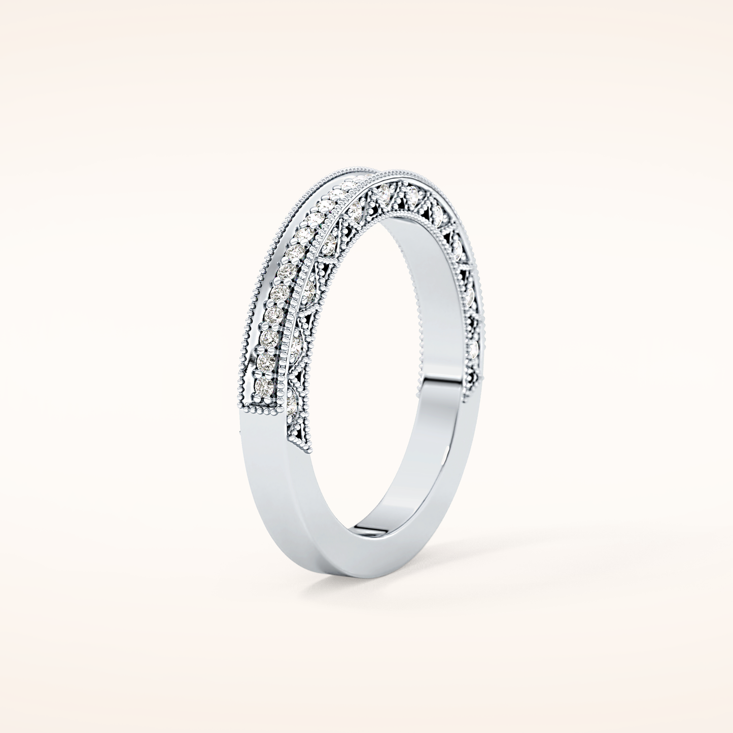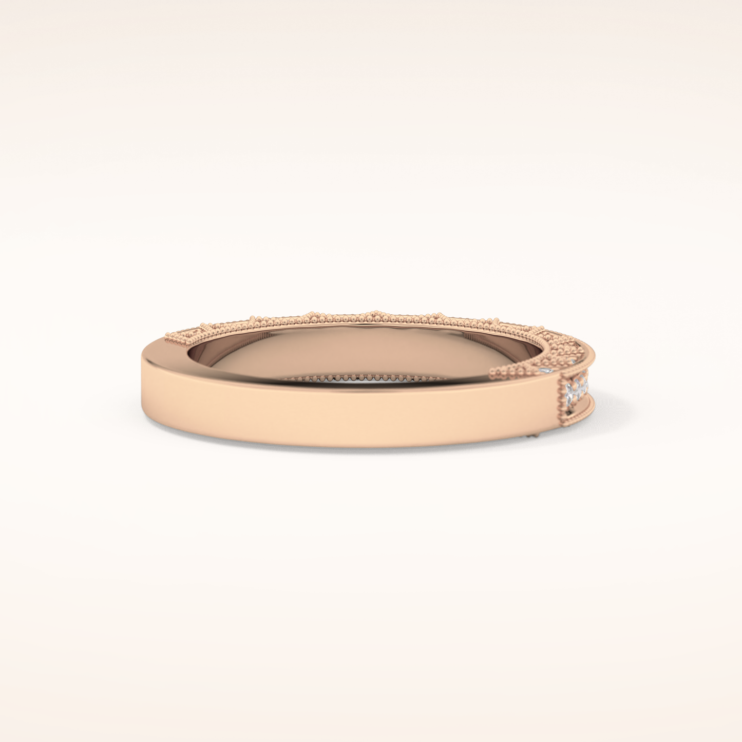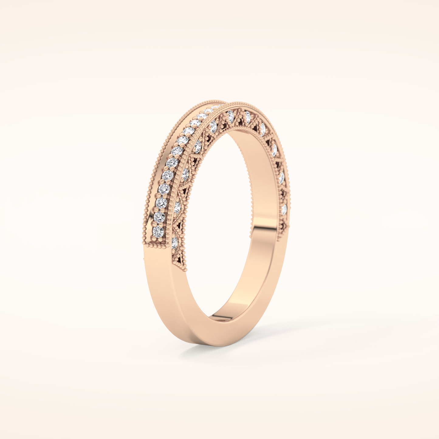 This exquisite wedding band is crafted from solid gold and offered in classic White Gold, warm Yellow Gold, and romantic Rose Gold. Choose between 14KT or 18KT gold, carefully selected to provide the ideal balance of durability, richness, and long-lasting beauty.