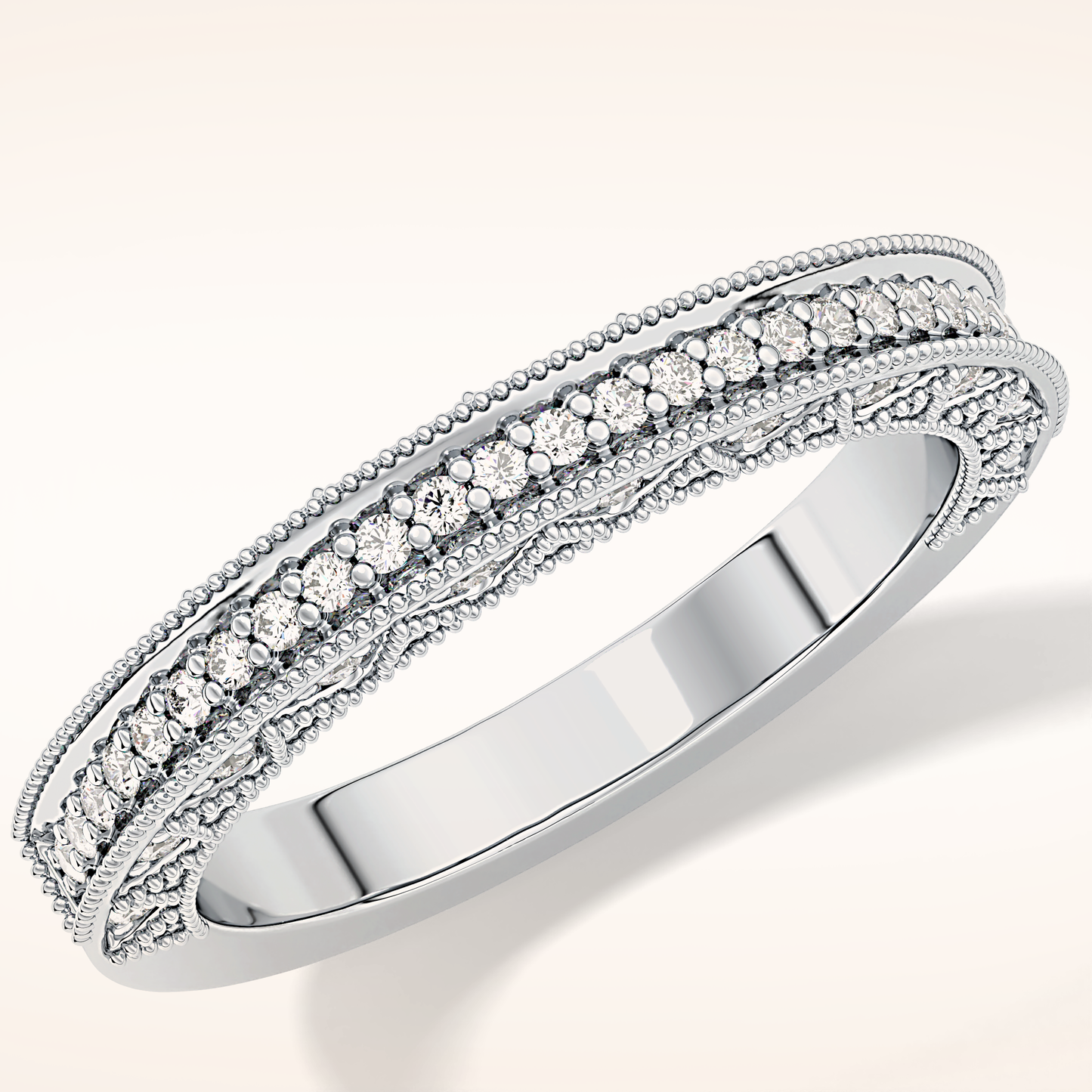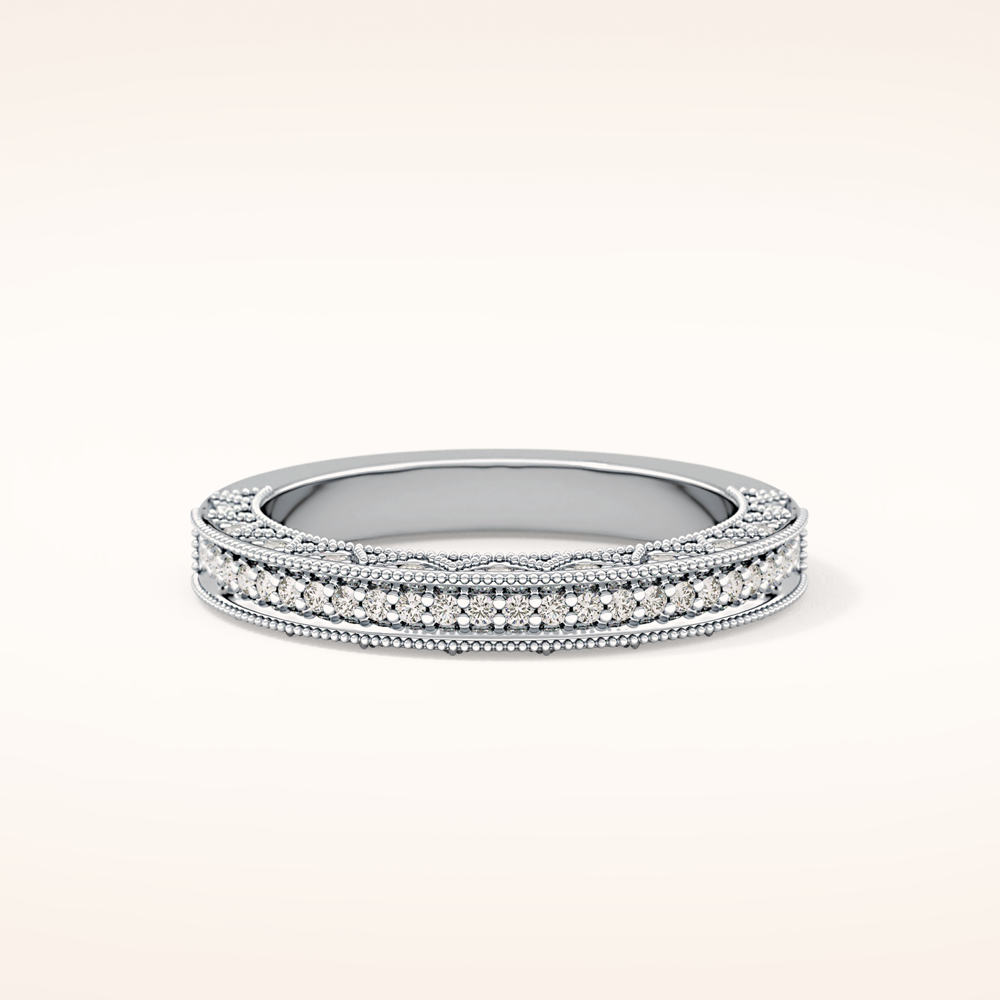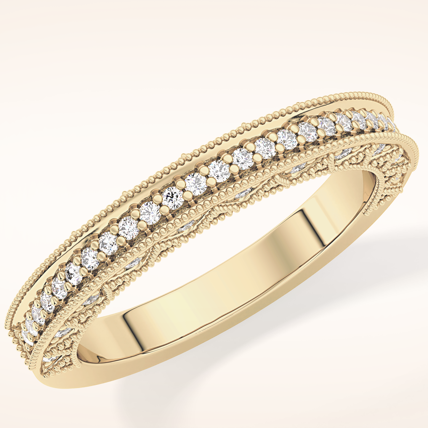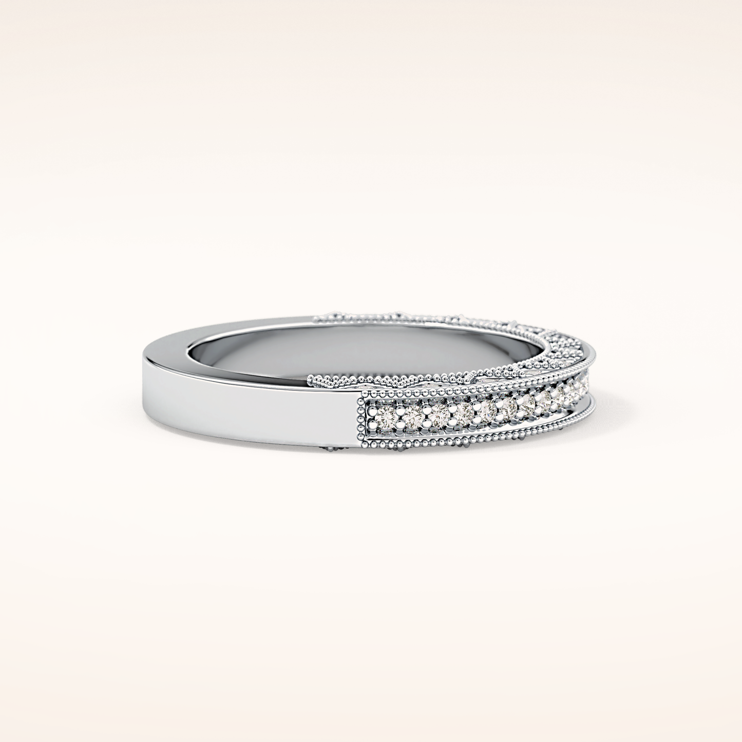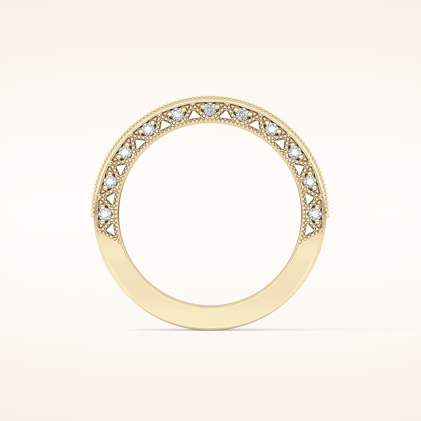 This exquisite wedding band is crafted from solid gold and offered in classic White Gold, warm Yellow Gold, and romantic Rose Gold. Choose between 14KT or 18KT gold, carefully selected to provide the ideal balance of durability, richness, and long-lasting beauty.