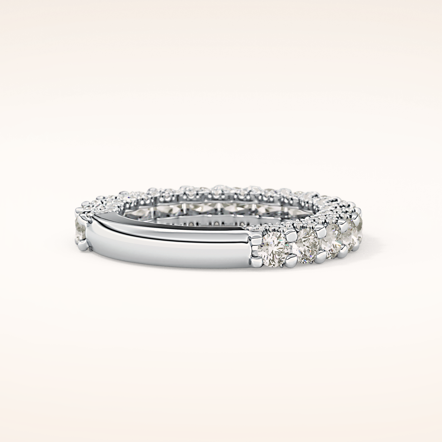 Expertly crafted with a seamless line of radiant lab-grown diamonds totaling 1.83 TCW, this wedding band delivers exceptional fire, clarity, and brilliance from every angle. Each stone is meticulously set to create a fluid, uninterrupted sparkle that feels both modern and everlasting.