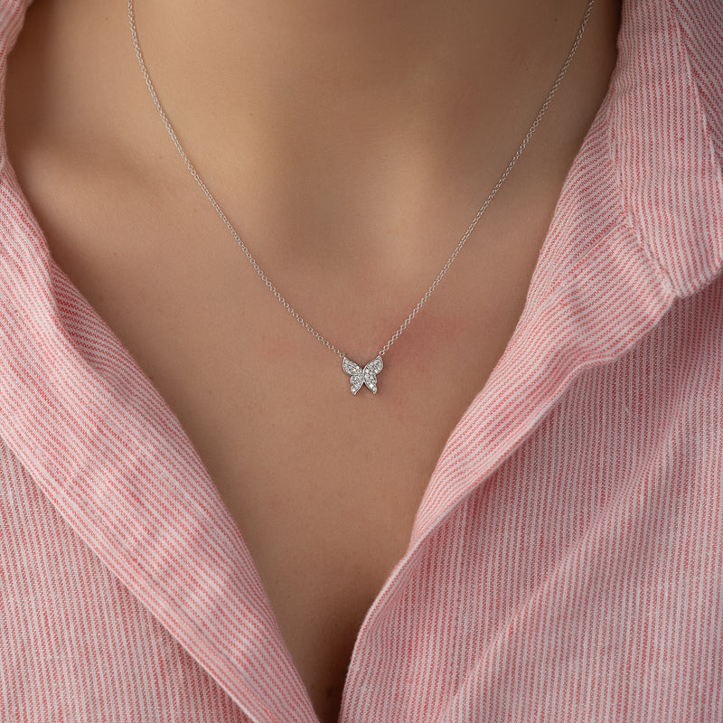0.35 TCW Round Shape Moissanite Butterfly Pendant