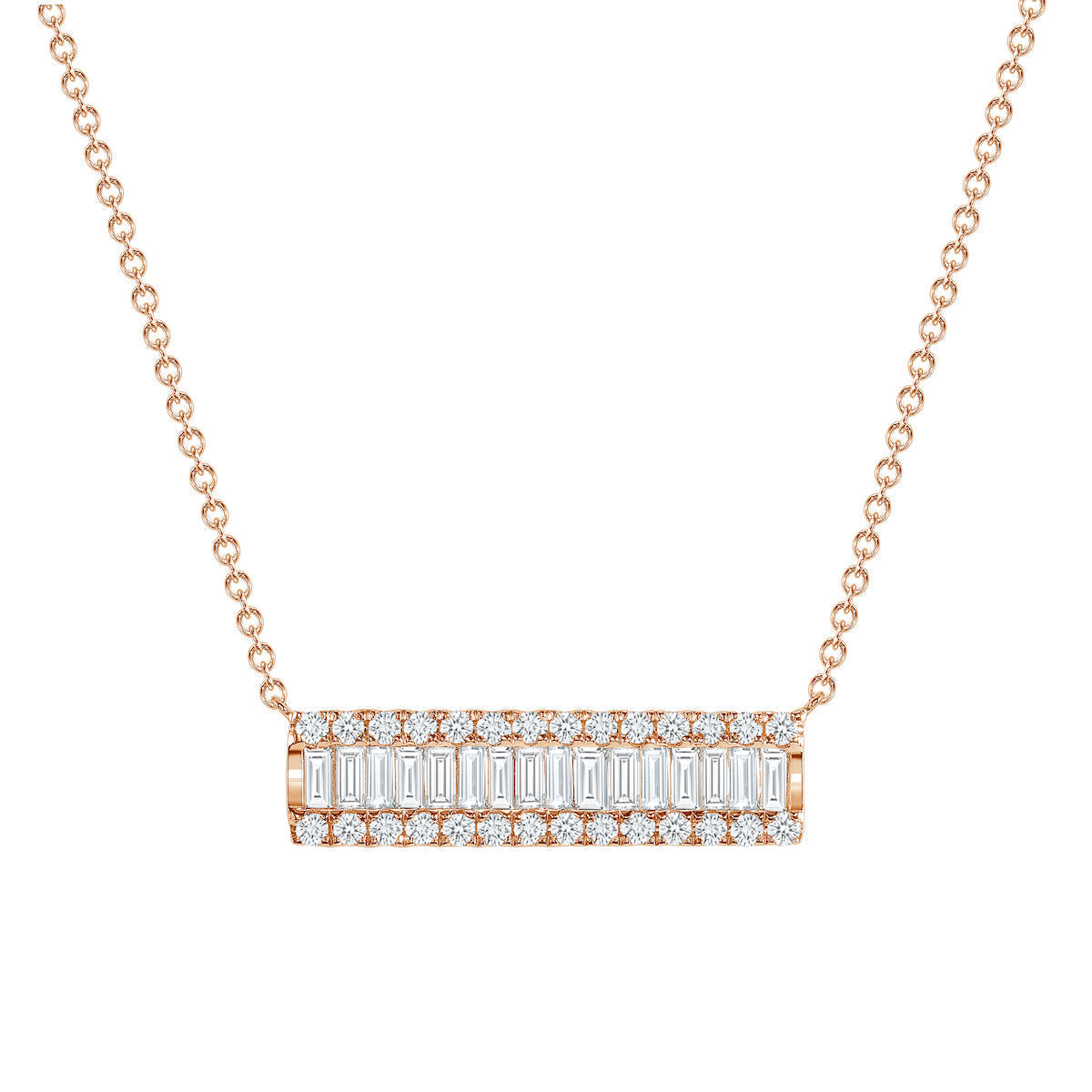 1.0 CT Round & Baguette Moissanite Diamond Bar Pendant Necklace in Solid Gold