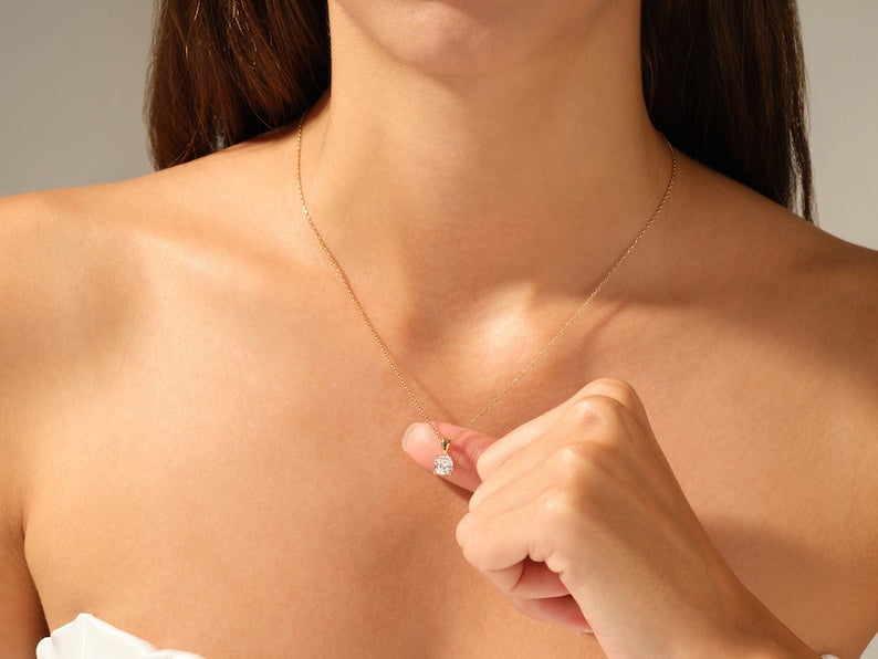 2.0 CT Cushion Moissanite Diamond Solitaire Pendant Necklace in Solid Gold