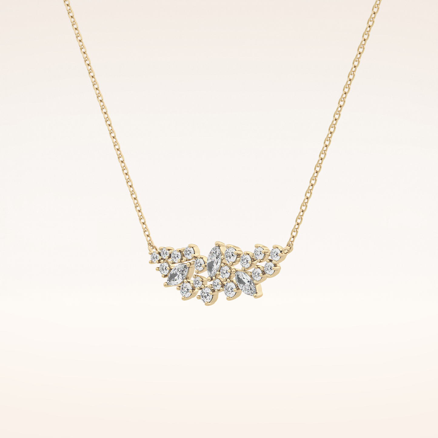A timeless symbol of faith and elegance, this Cluster Pendant features a 0.248 CT Round and Marquise-cut Moissanite, known for its brilliant sparkle and clarity. Crafted in your choice of solid 14K or 18K gold, it’s available in White, Yellow, or Rose Gold finishes. With DEF color and VVS clarity, this pendant offers a radiant yet meaningful statement—perfect for everyday wear or as a heartfelt gift.