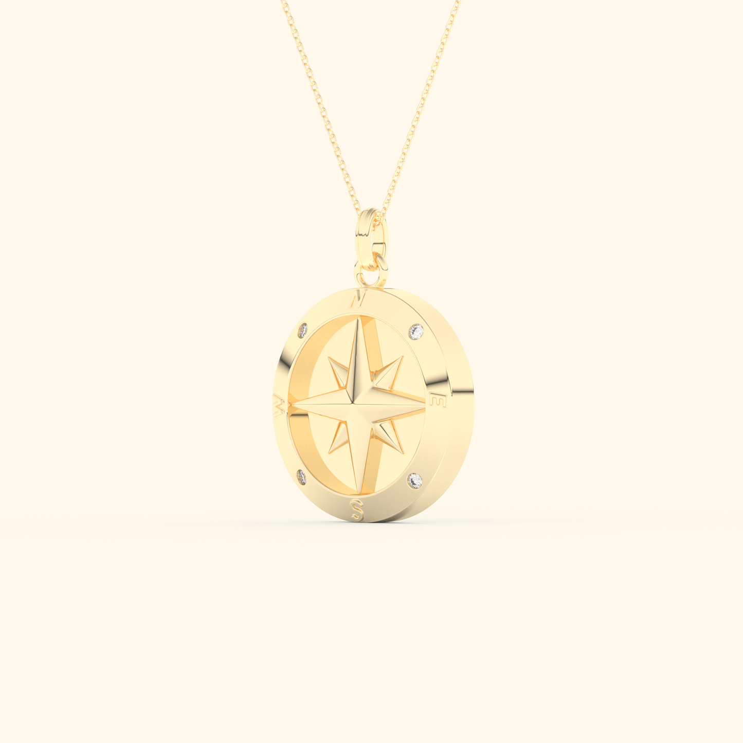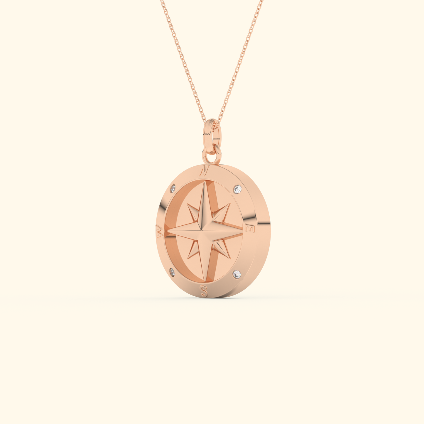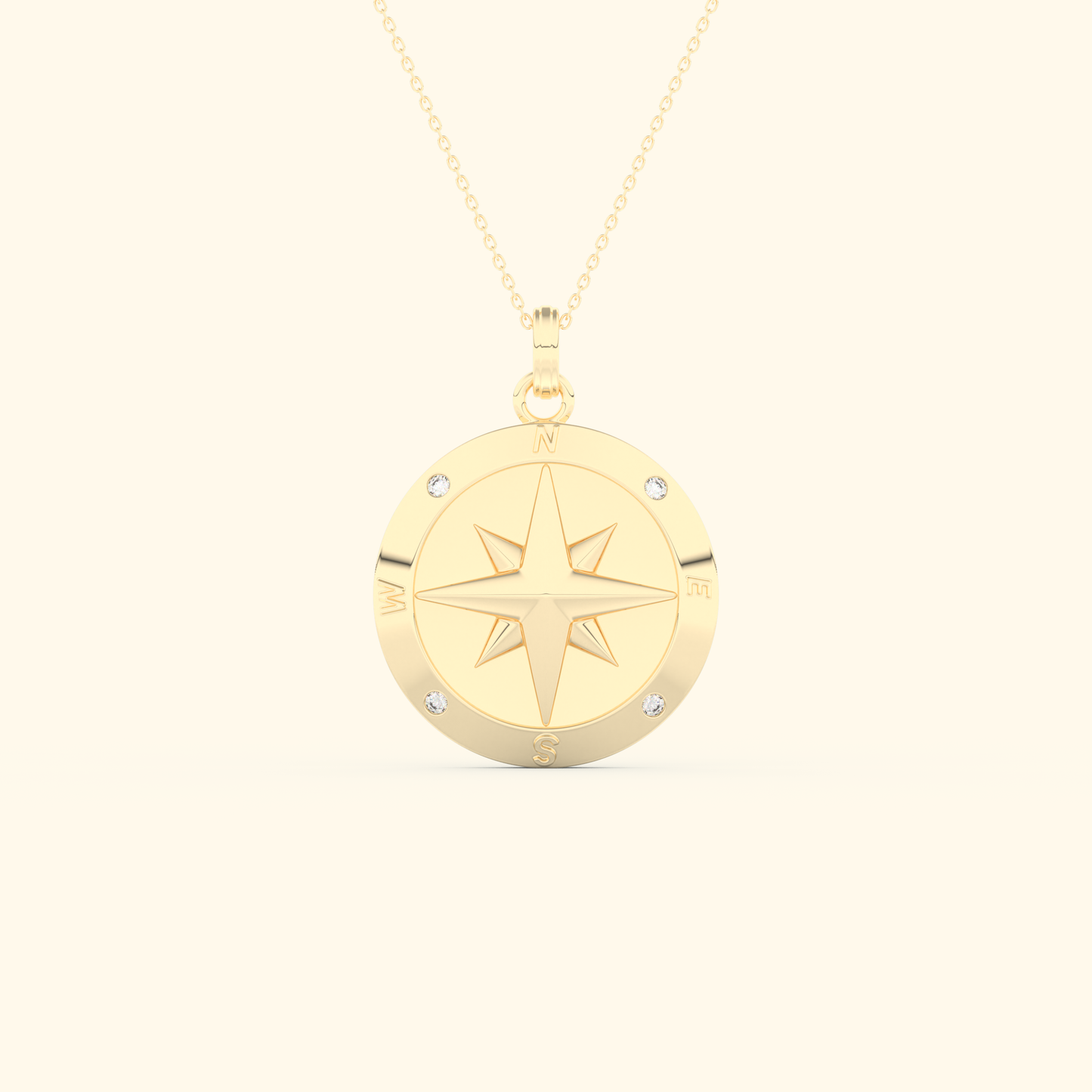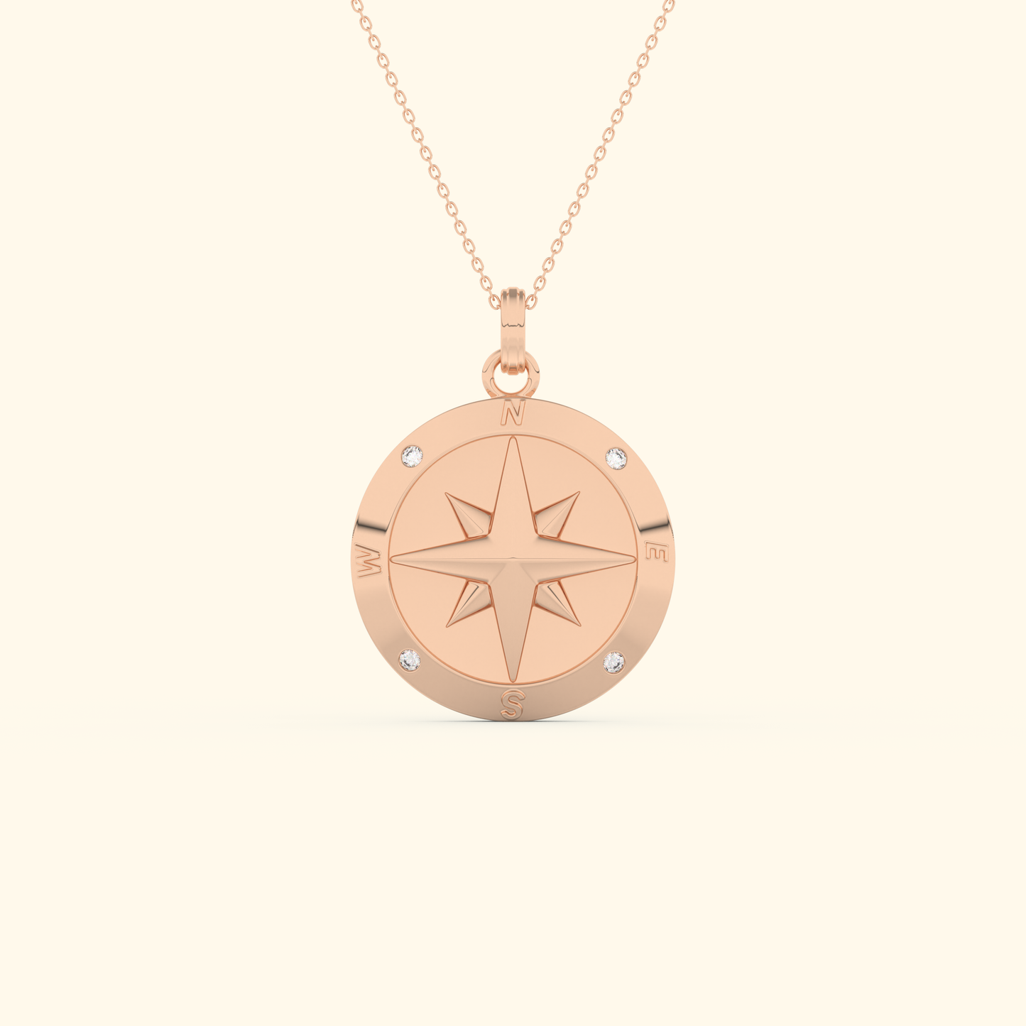 A timeless symbol of faith and elegance, this Compass Necklace features a 0.09 CT Round-cut Moissanite, known for its brilliant sparkle and clarity. Crafted in your choice of solid 14K or 18K gold, it’s available in White, Yellow, or Rose Gold finishes. With DEF color and VVS clarity, this necklace offers a radiant yet meaningful statement—perfect for everyday wear or as a heartfelt gift.