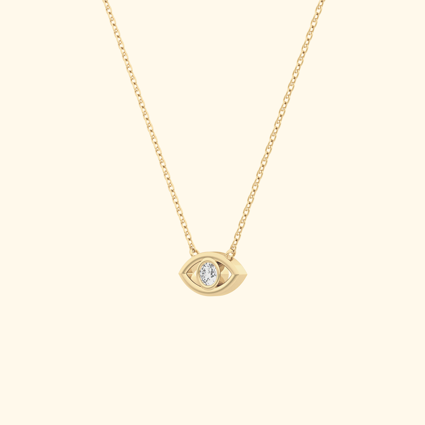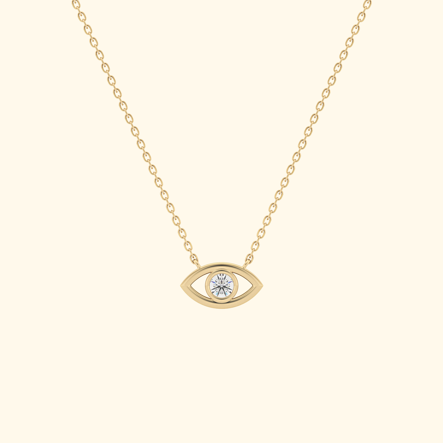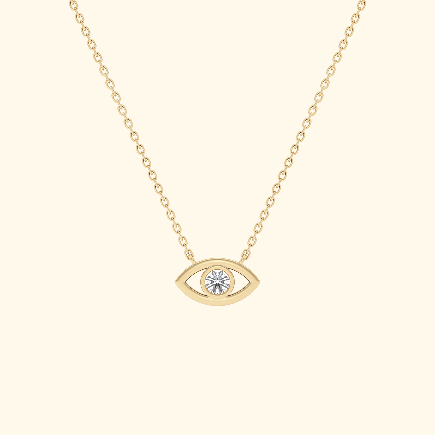 Solid Gold Moissanite Evil Eye Necklace – 0.08 Carat, Minimalist Design