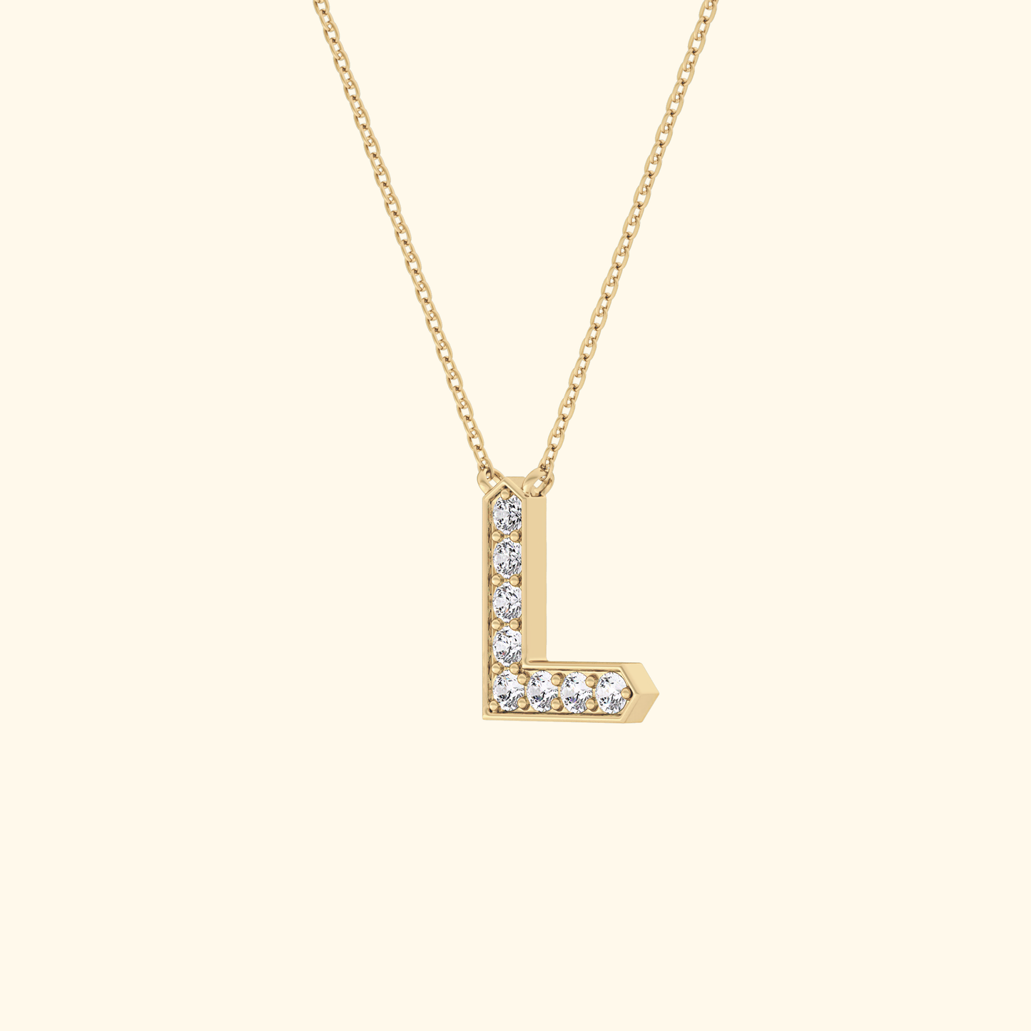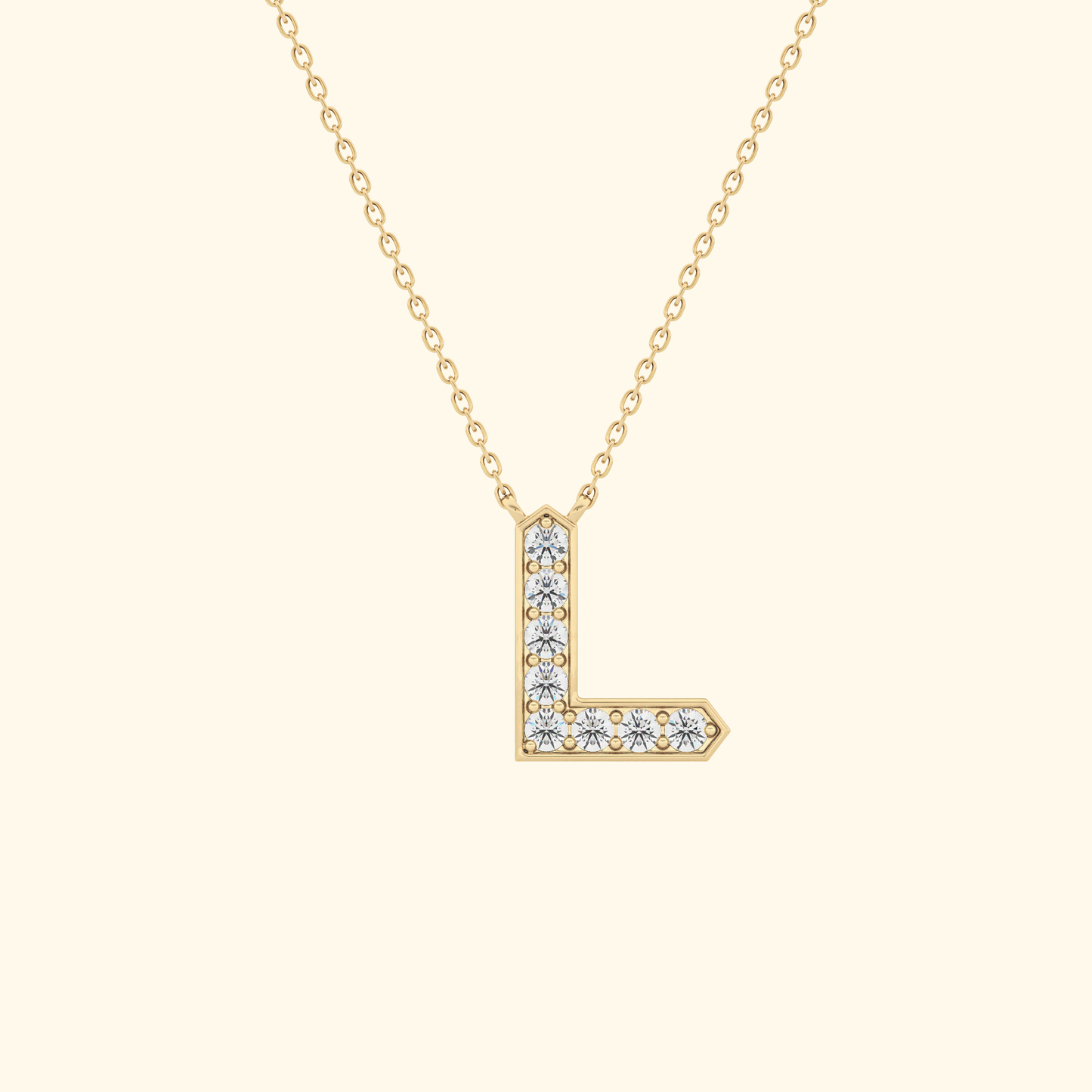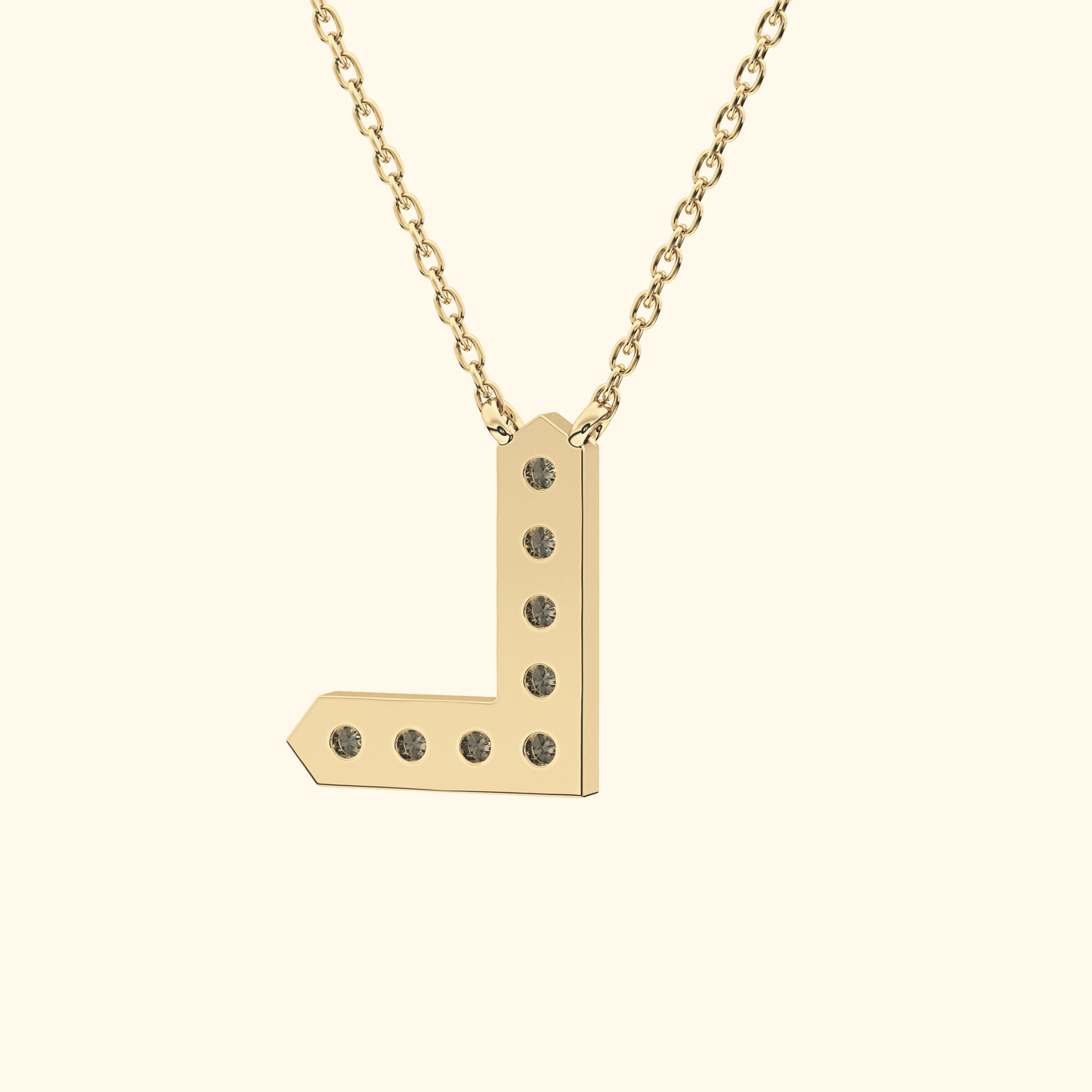 Solid Gold Moissanite L Initial Necklace – 0.24 Carat, Minimalist Design