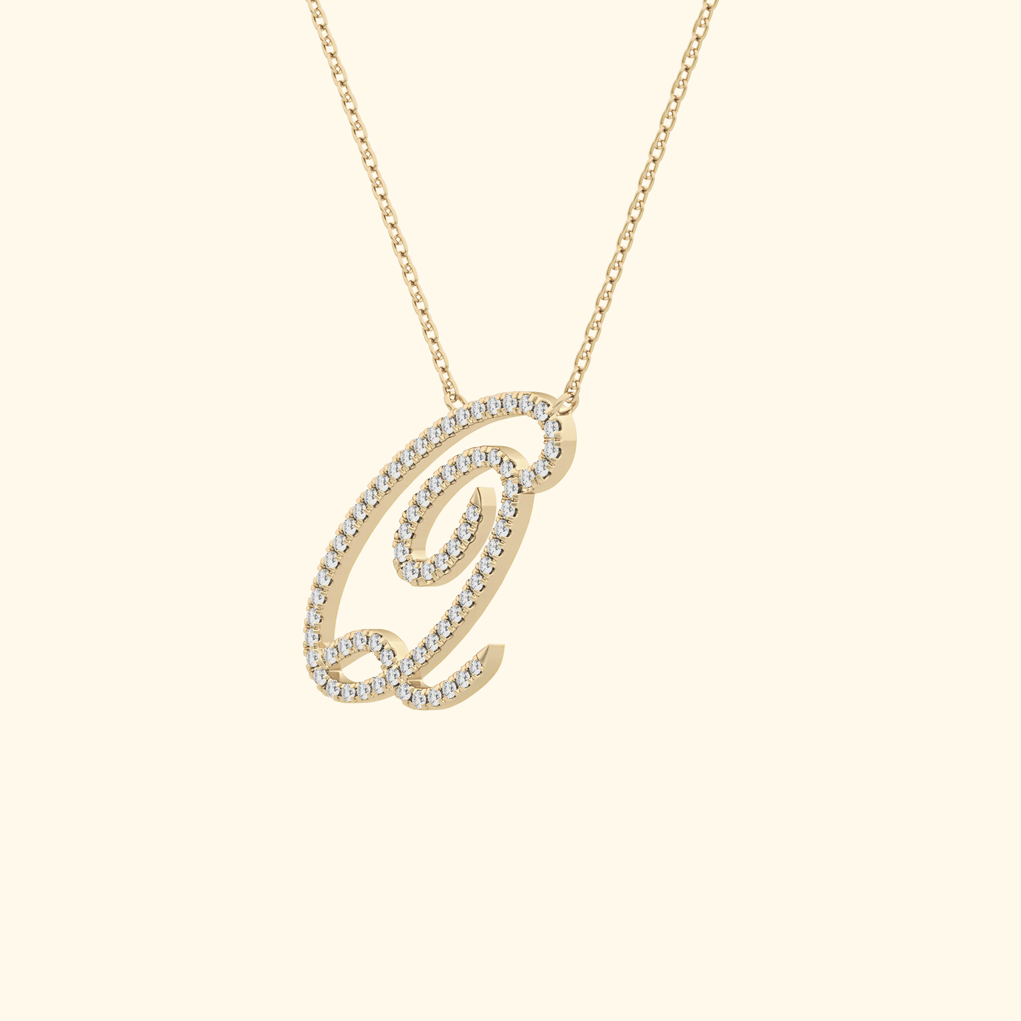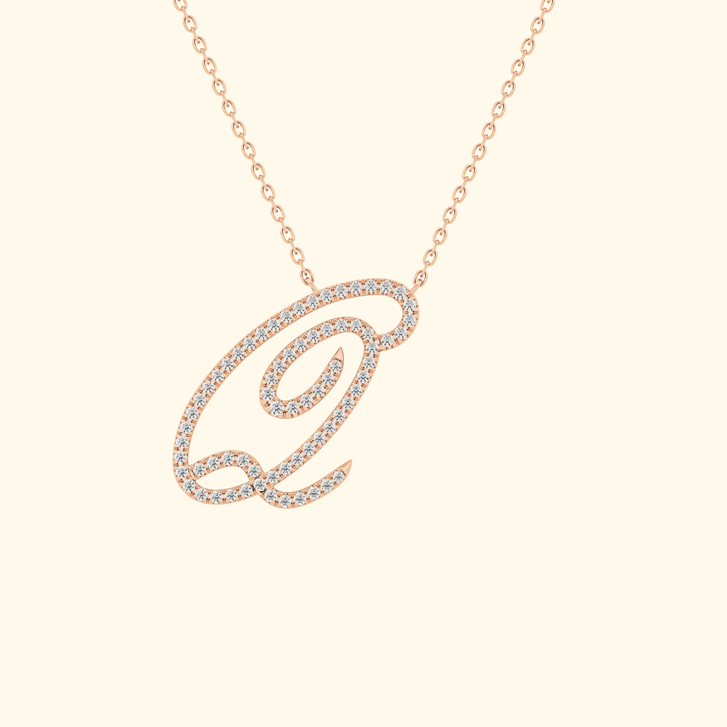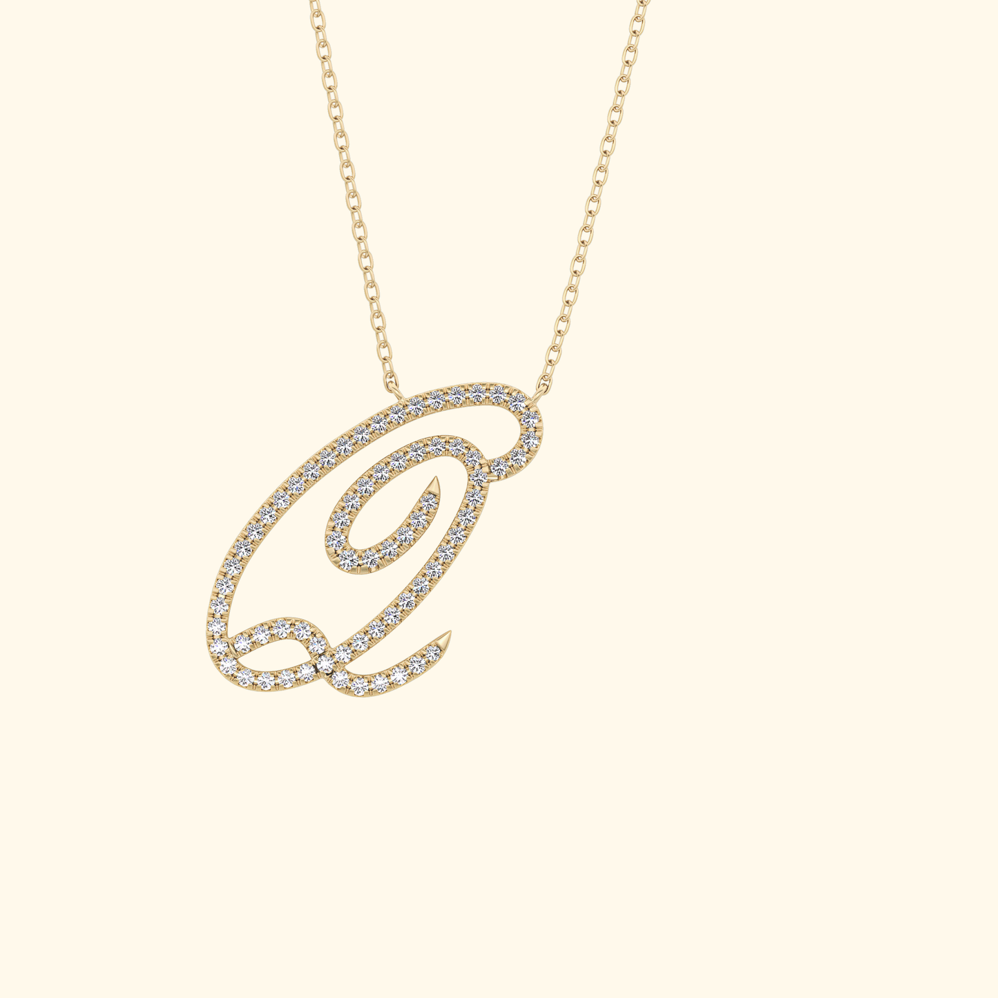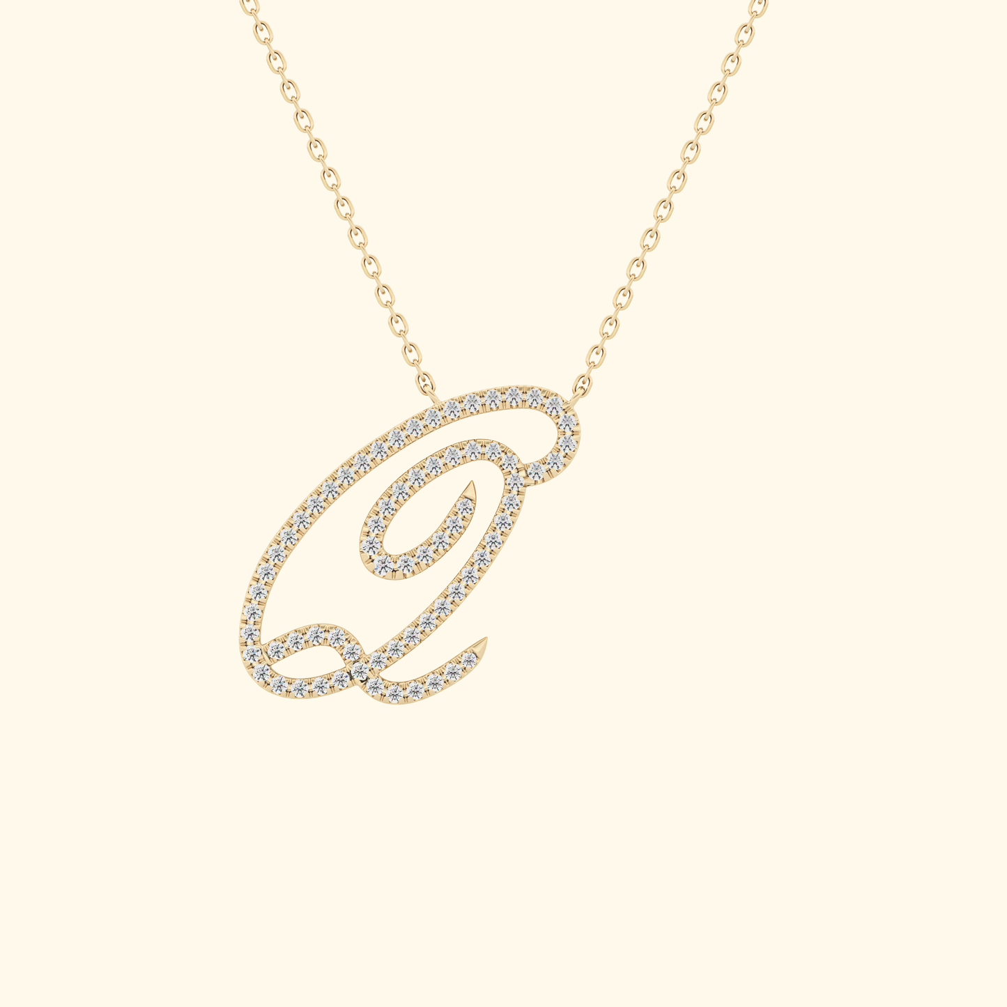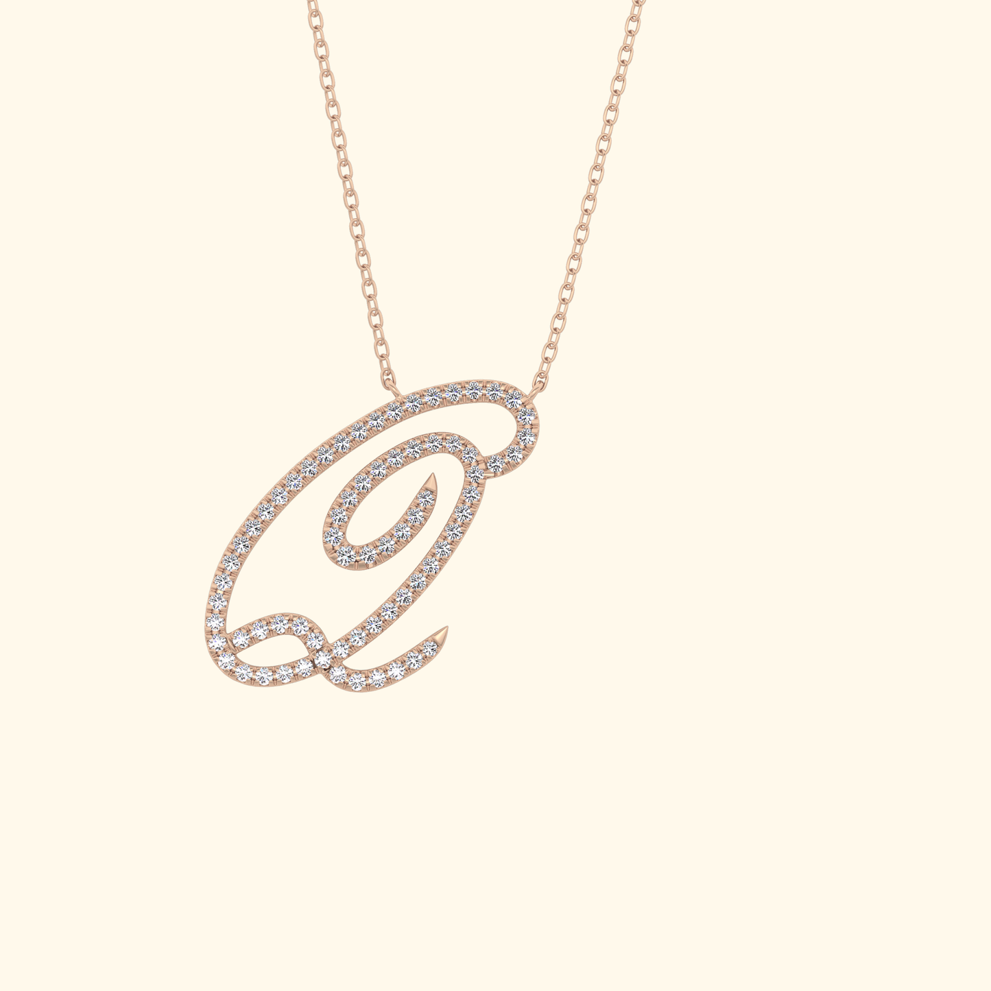 Solid Gold Moissanite Q Initial Necklace – 0.187 Carat, Minimalist Design