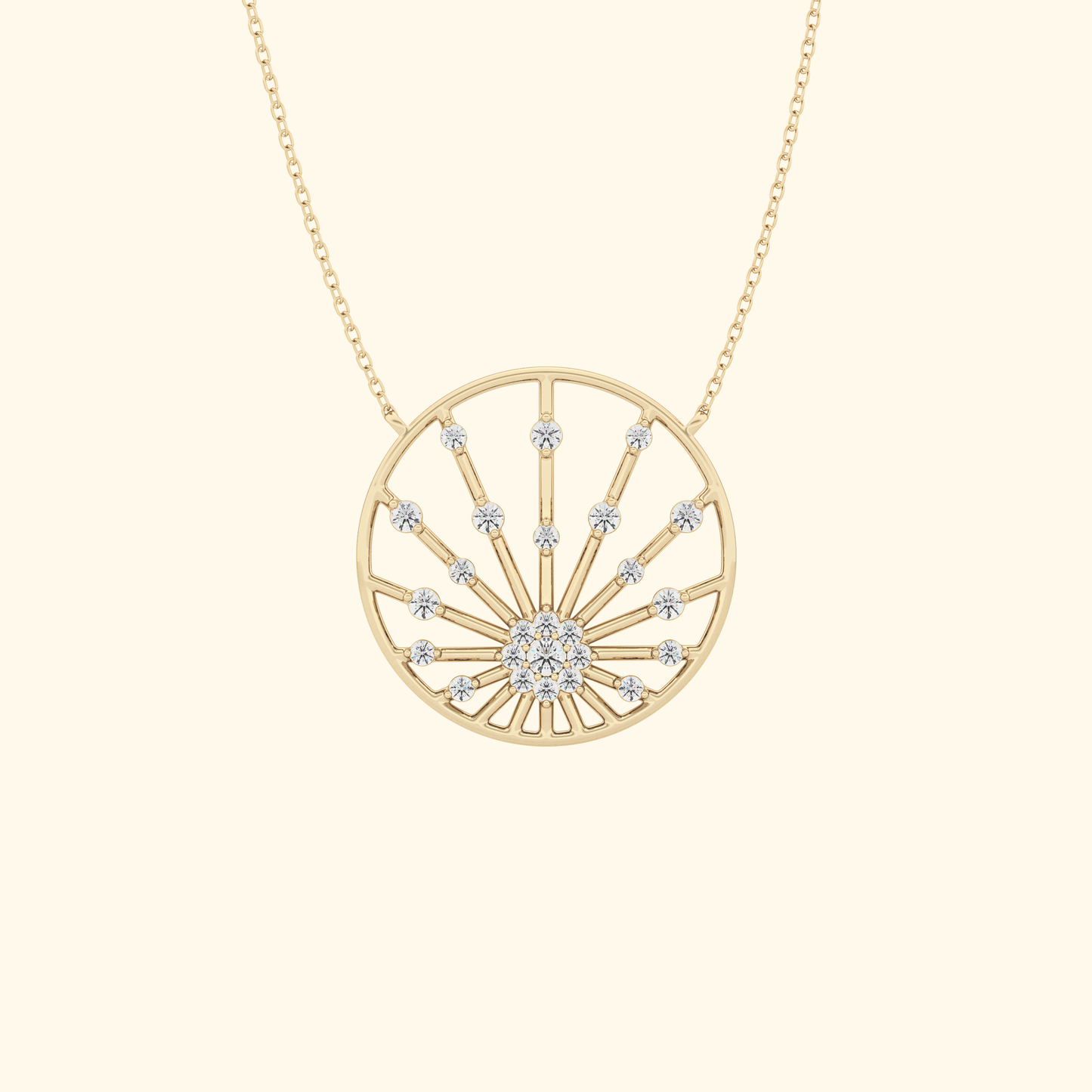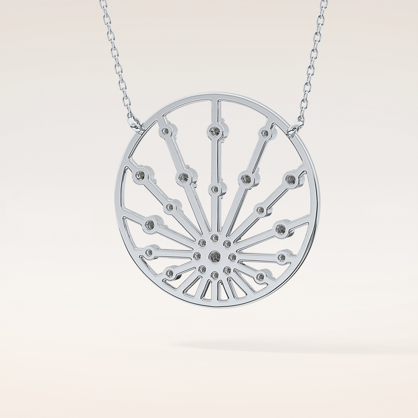 A timeless symbol of faith and elegance, this Radiance Wheel Pendant features a 0.28 CT Round-cut Moissanite, known for its brilliant sparkle and clarity. Crafted in your choice of solid 14K or 18K gold, it’s available in White, Yellow, or Rose Gold finishes. With DEF color and VVS clarity, this pendant offers a radiant yet meaningful statement—perfect for everyday wear or as a heartfelt gift.