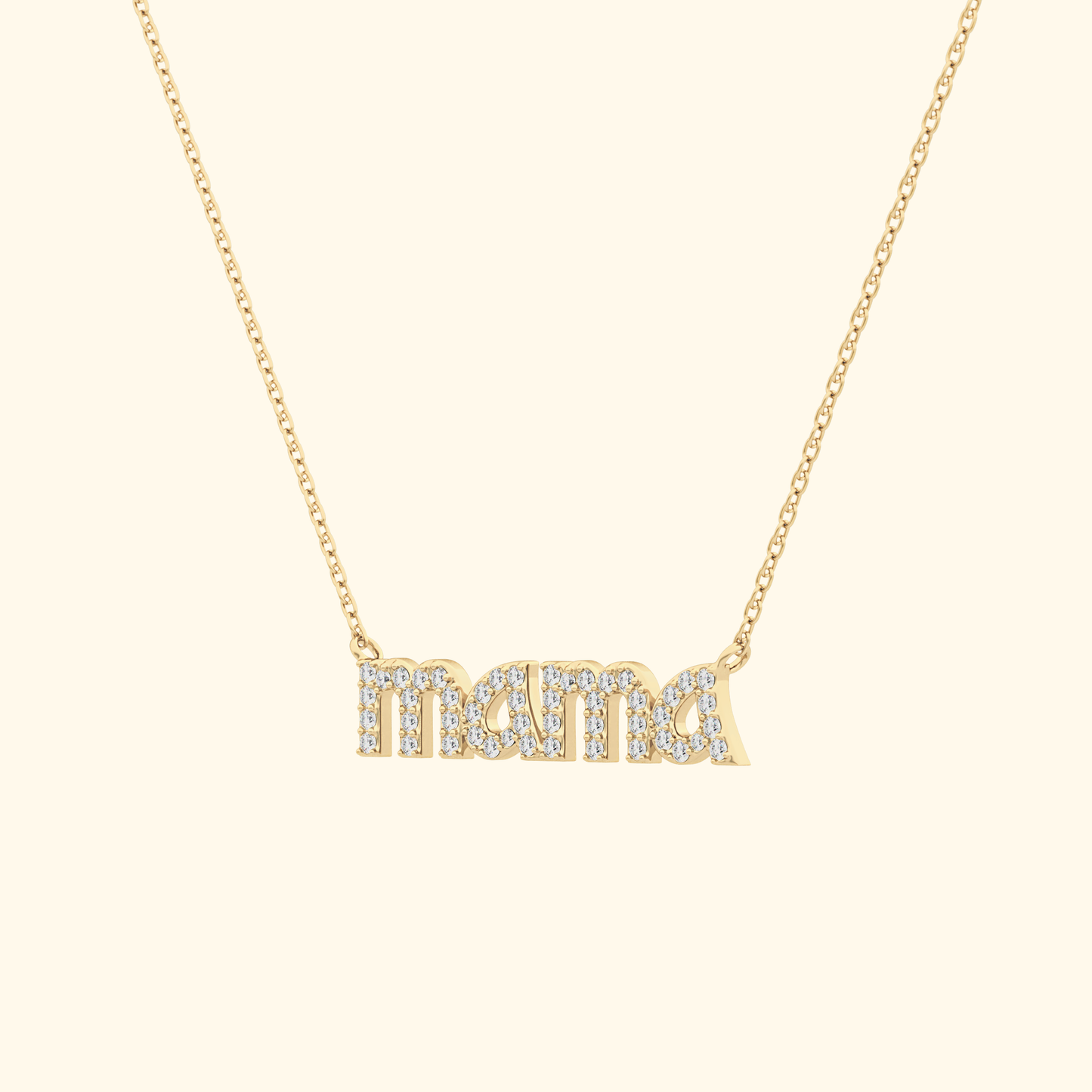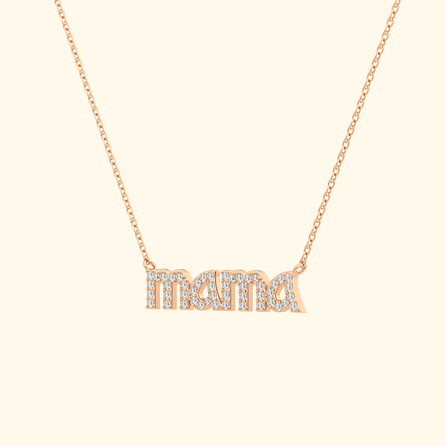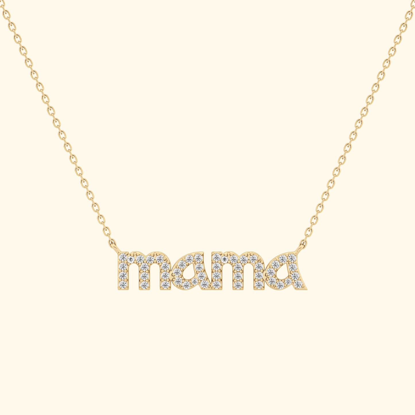 Solid Gold Moissanite Radiant MAMA Necklace – 0.17 Carat, Minimalist Design