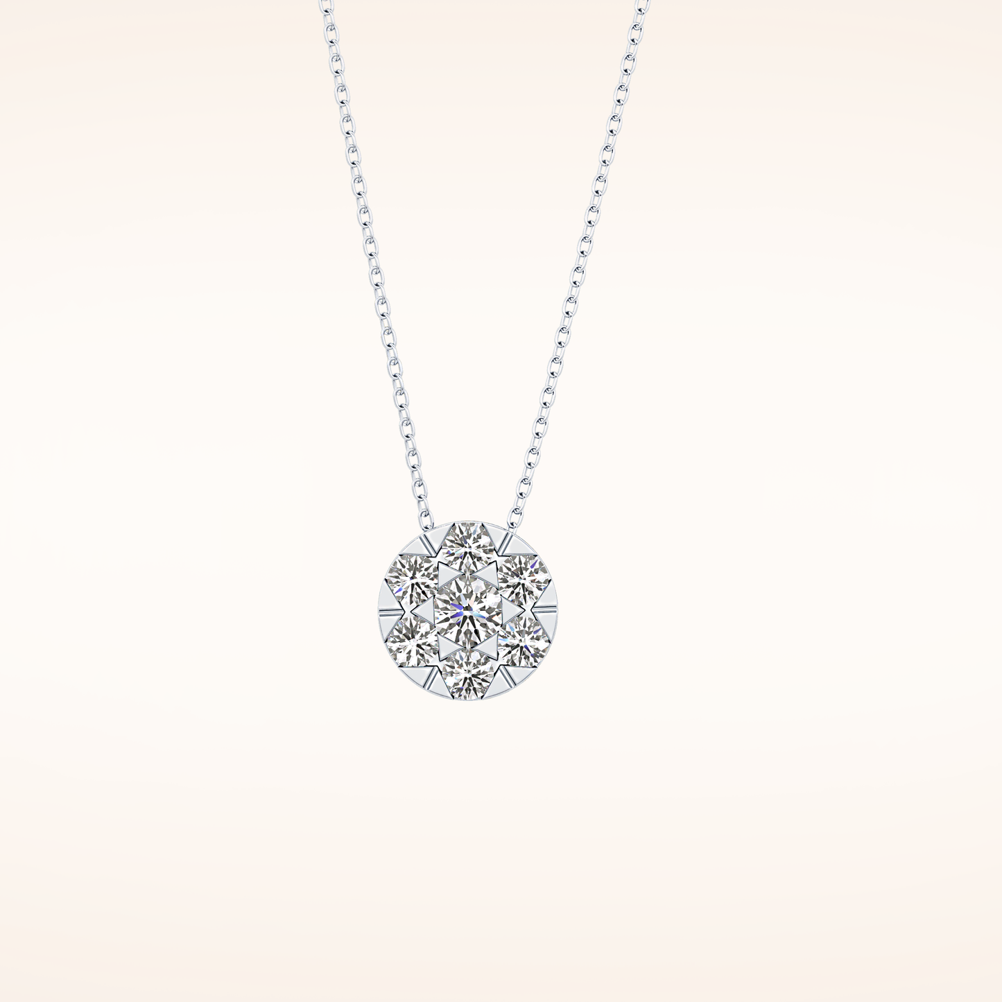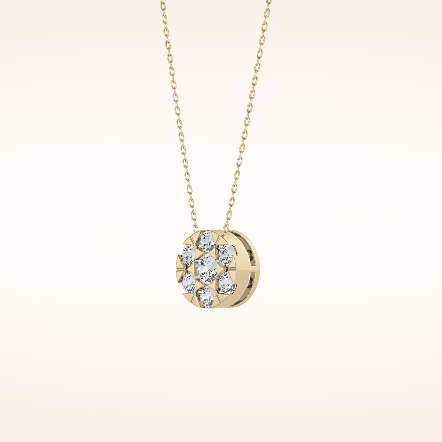 A timeless symbol of faith and elegance, this Round Bloom Pendant features a 0.57 CT Round-cut Moissanite, known for its brilliant sparkle and clarity. Crafted in your choice of solid 14K or 18K gold, it’s available in White, Yellow, or Rose Gold finishes. With DEF color and VVS clarity, this pendant offers a radiant yet meaningful statement—perfect for everyday wear or as a heartfelt gift.