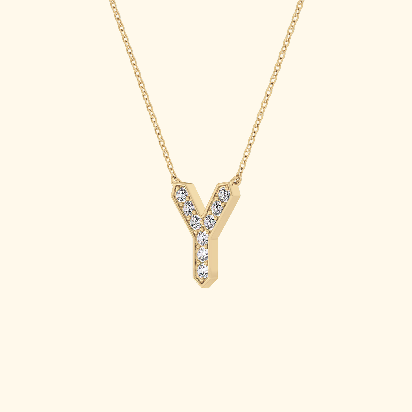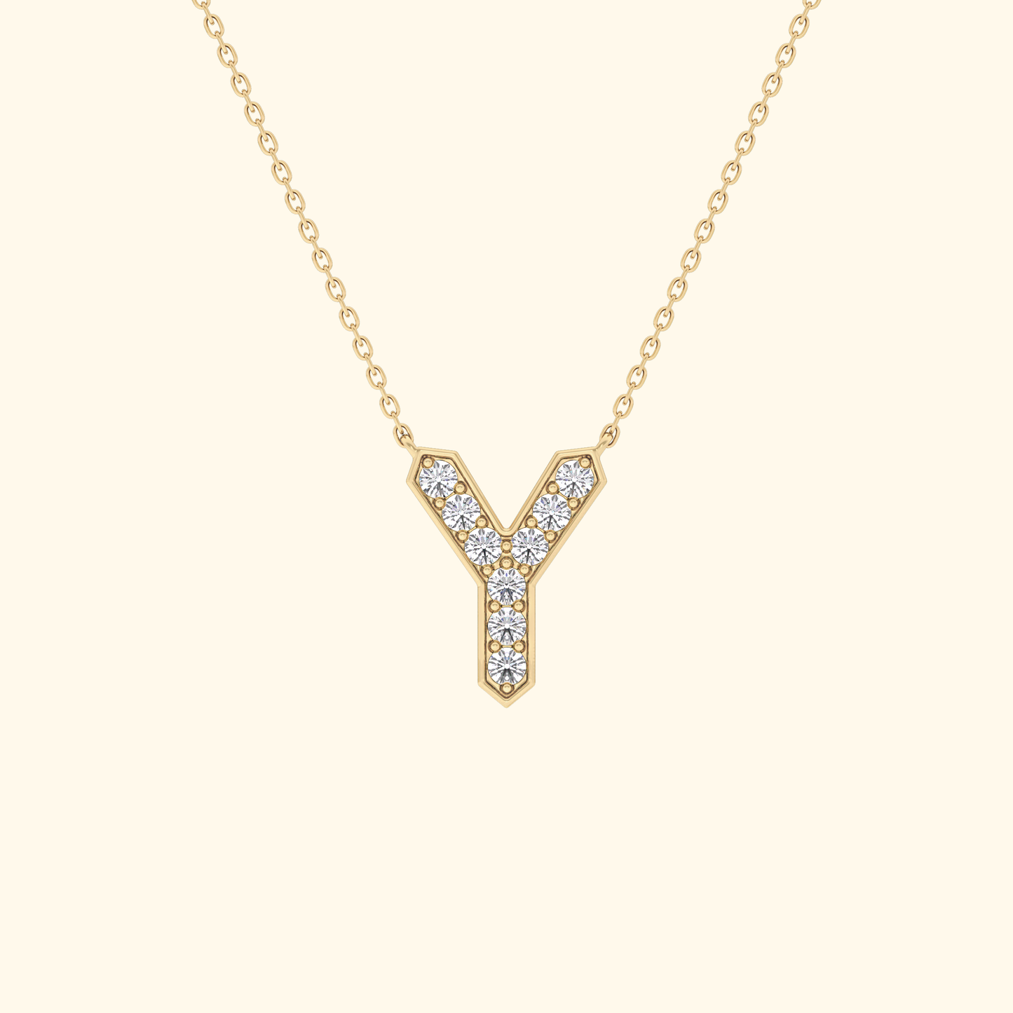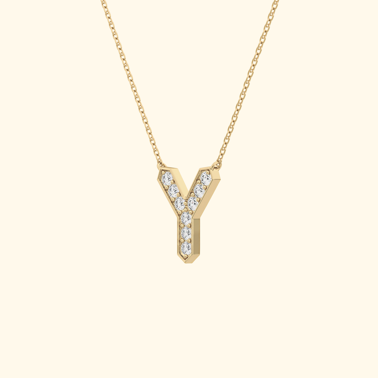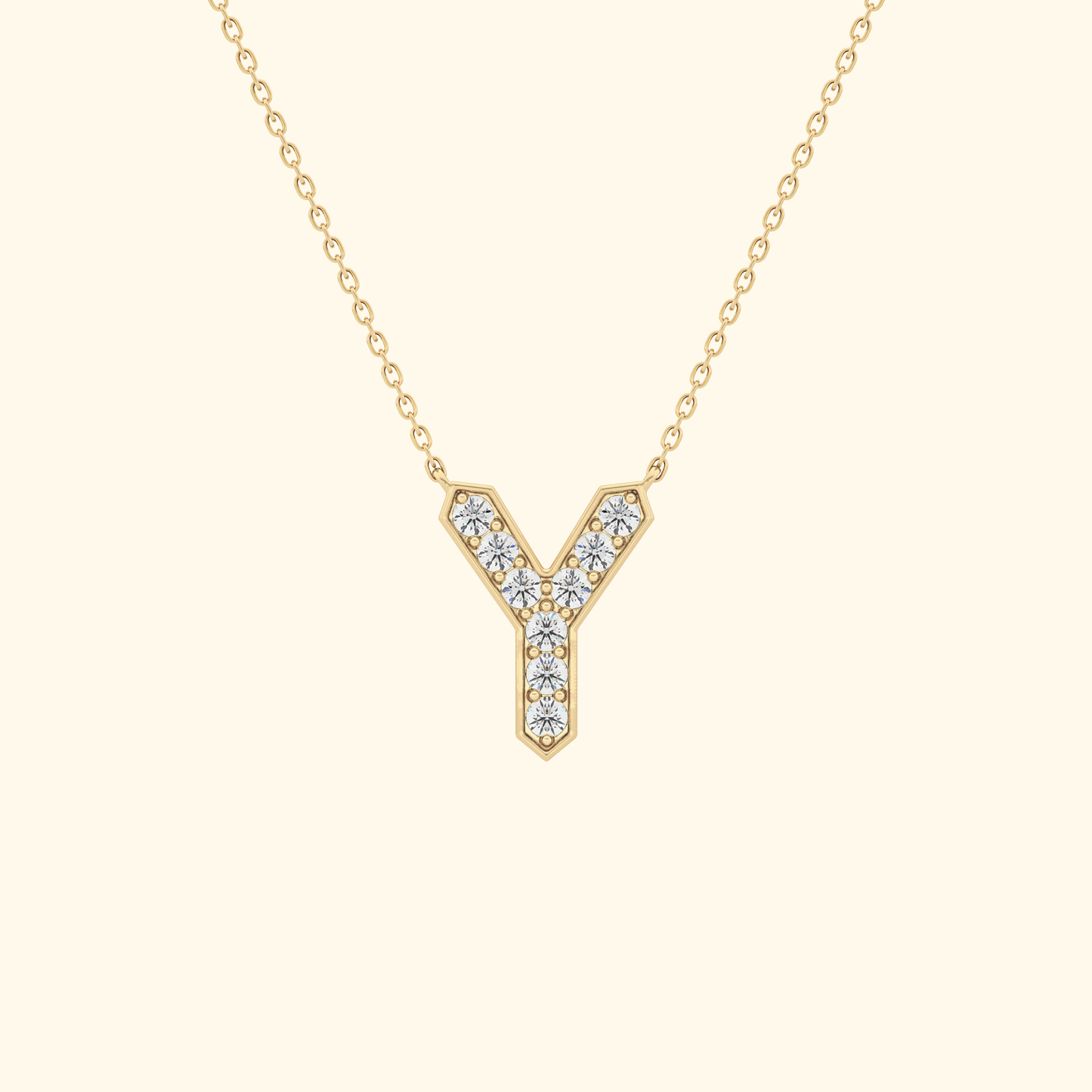 Solid Gold Moissanite Y Initial Necklace – 0.23 Carat, Minimalist Design