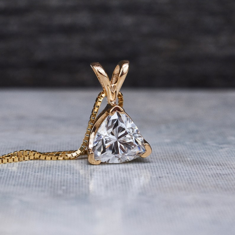 1.20 CT Oval Moissanite Diamond Milgrain Pendant Necklace in Solid Gold 2