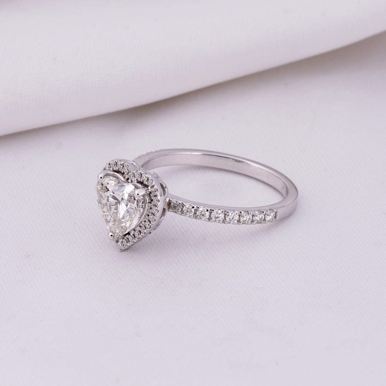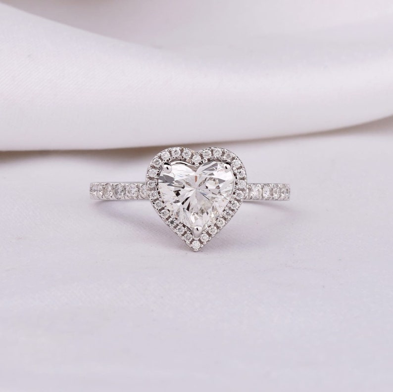 1.5 CT Heart Cut Halo Style Moissanite Engagement Ring