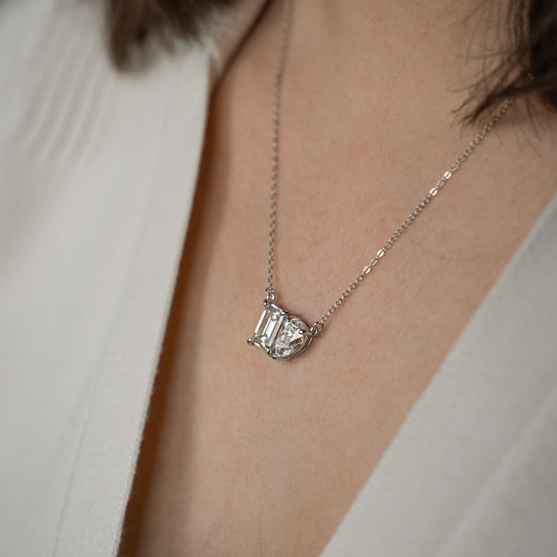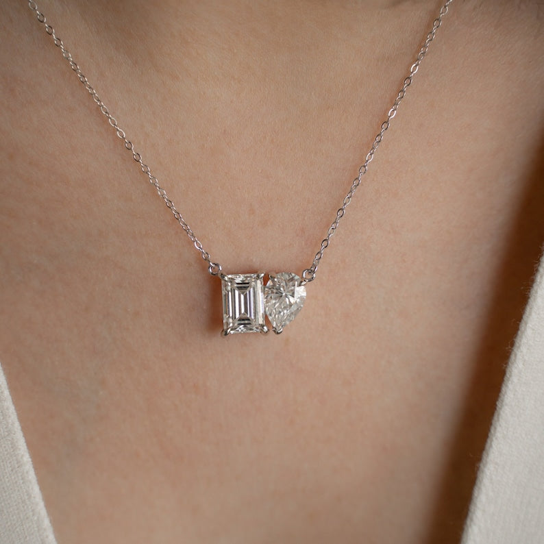 5 TCW Emerald & Pear Shape Moissanite Two Stone Necklace