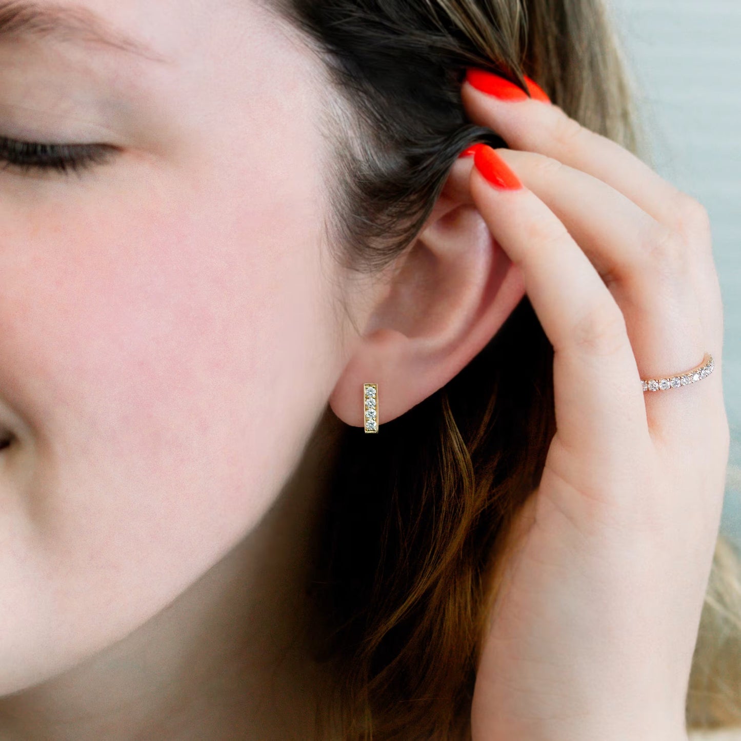 0.50 TCW Round Cut Moissanite Bar Stud Earrings in Gold 8