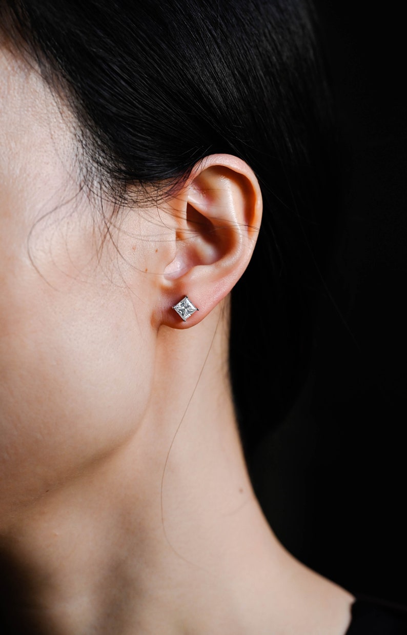 0.70 TCW Princess Cut Moissanite Stud Earrings in Gold 9
