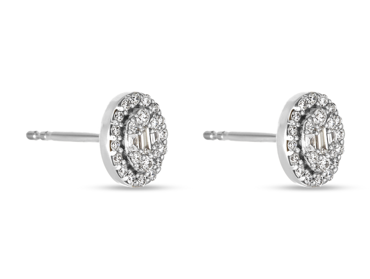 2.0 TCW Round & Baguette Cut Moissanite Cluster Studs Earrings in Gold 7