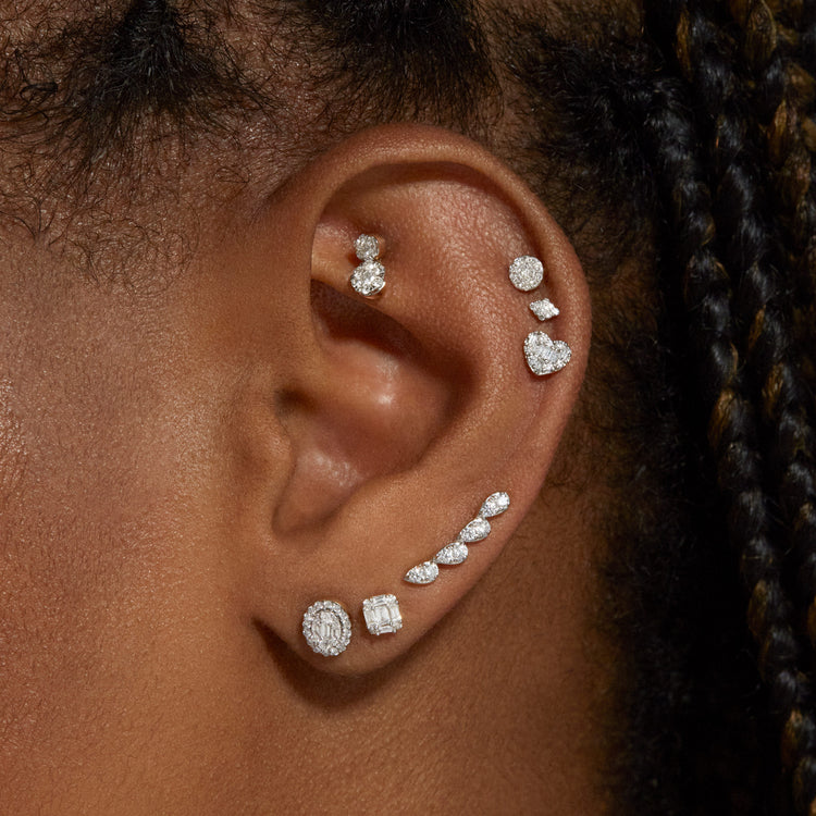 2.0 TCW Round & Baguette Cut Moissanite Cluster Studs Earrings in Gold