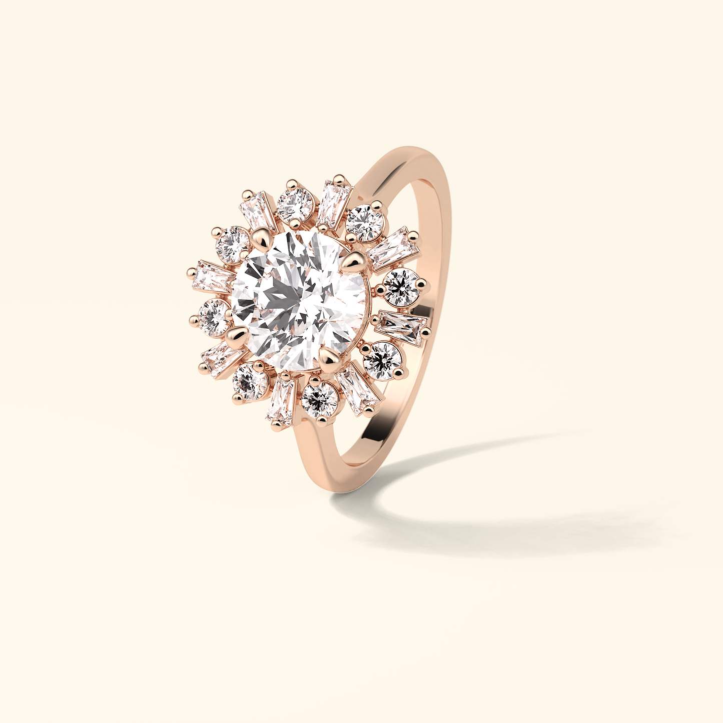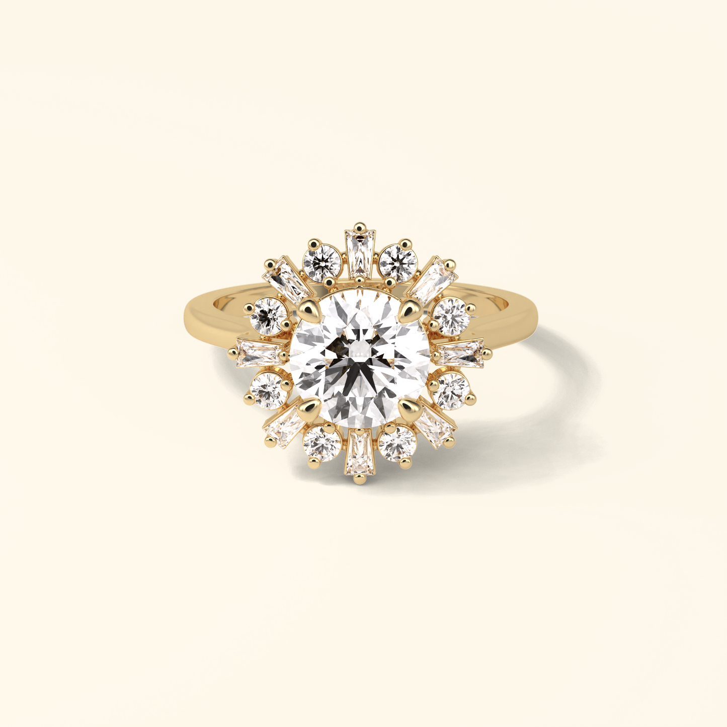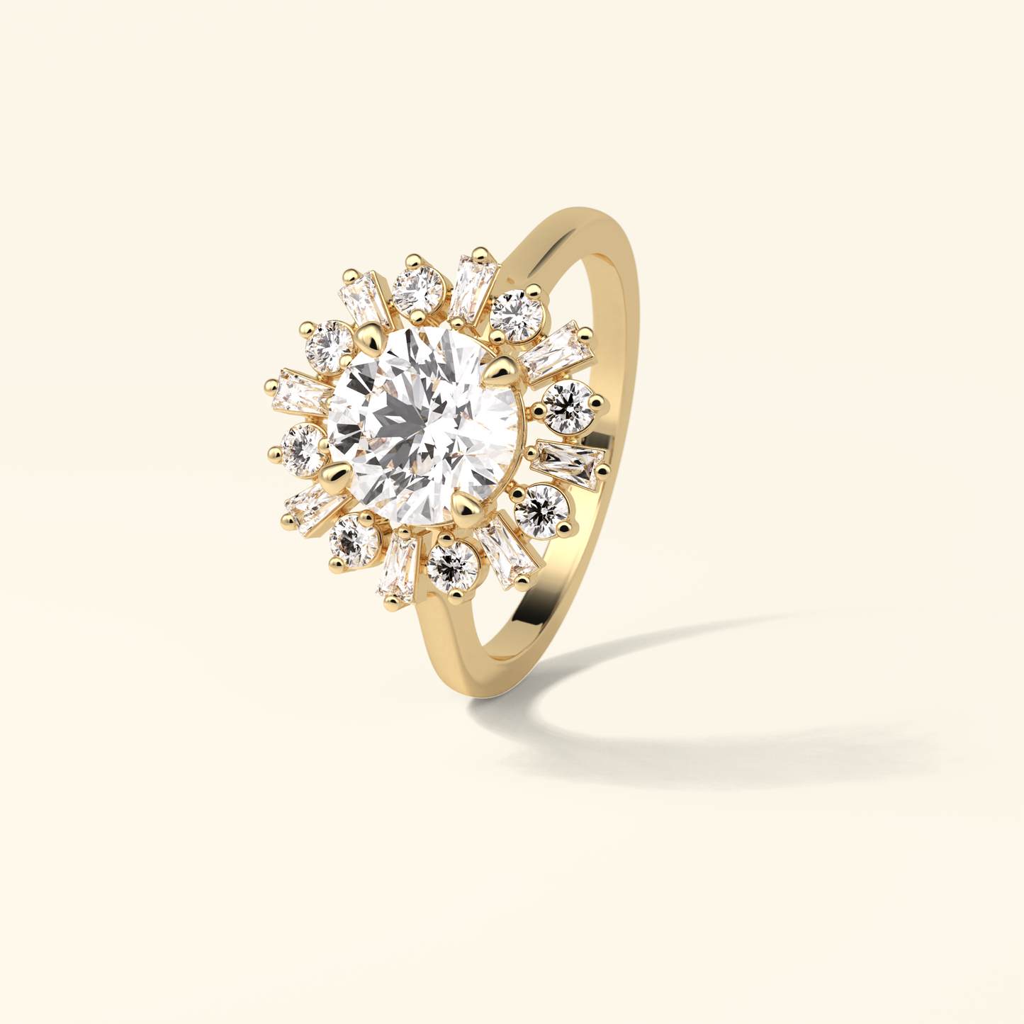 Round Moissanite Halo Engagement Ring – 1.35 CT Center Stone in Solid Gold