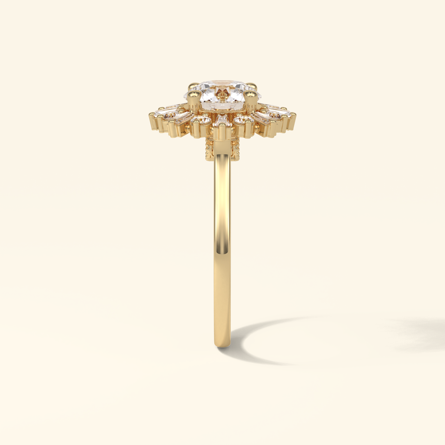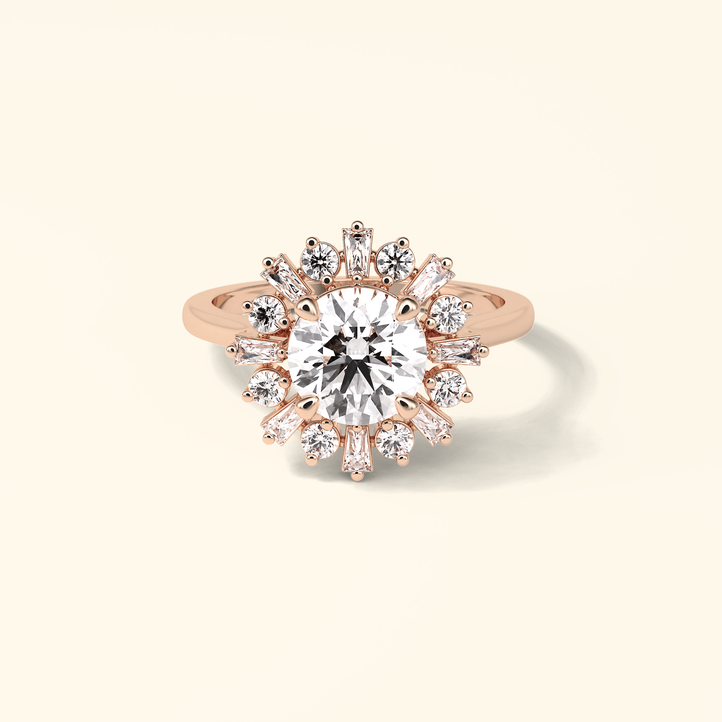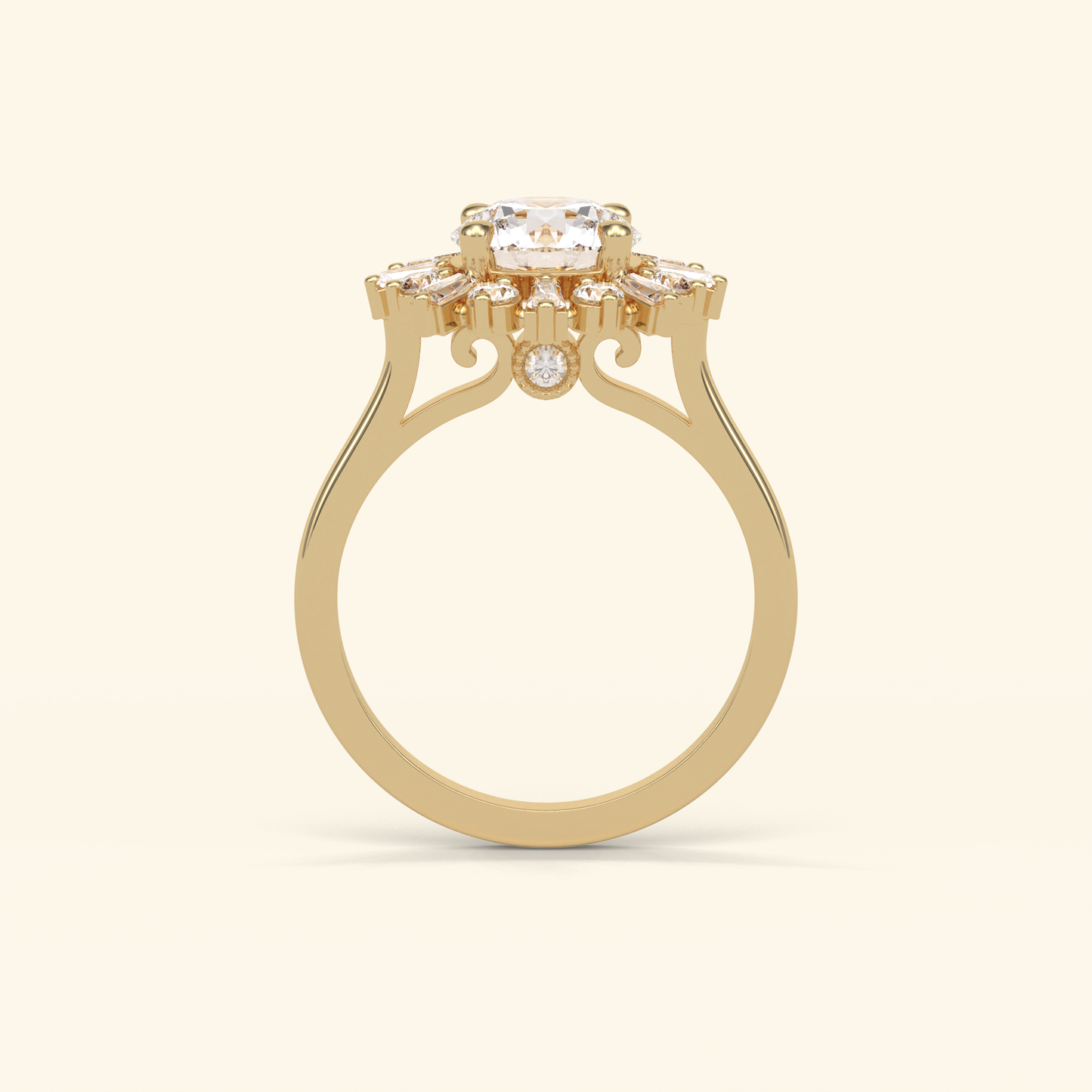 Round Moissanite Halo Engagement Ring – 1.35 CT Center Stone in Solid Gold