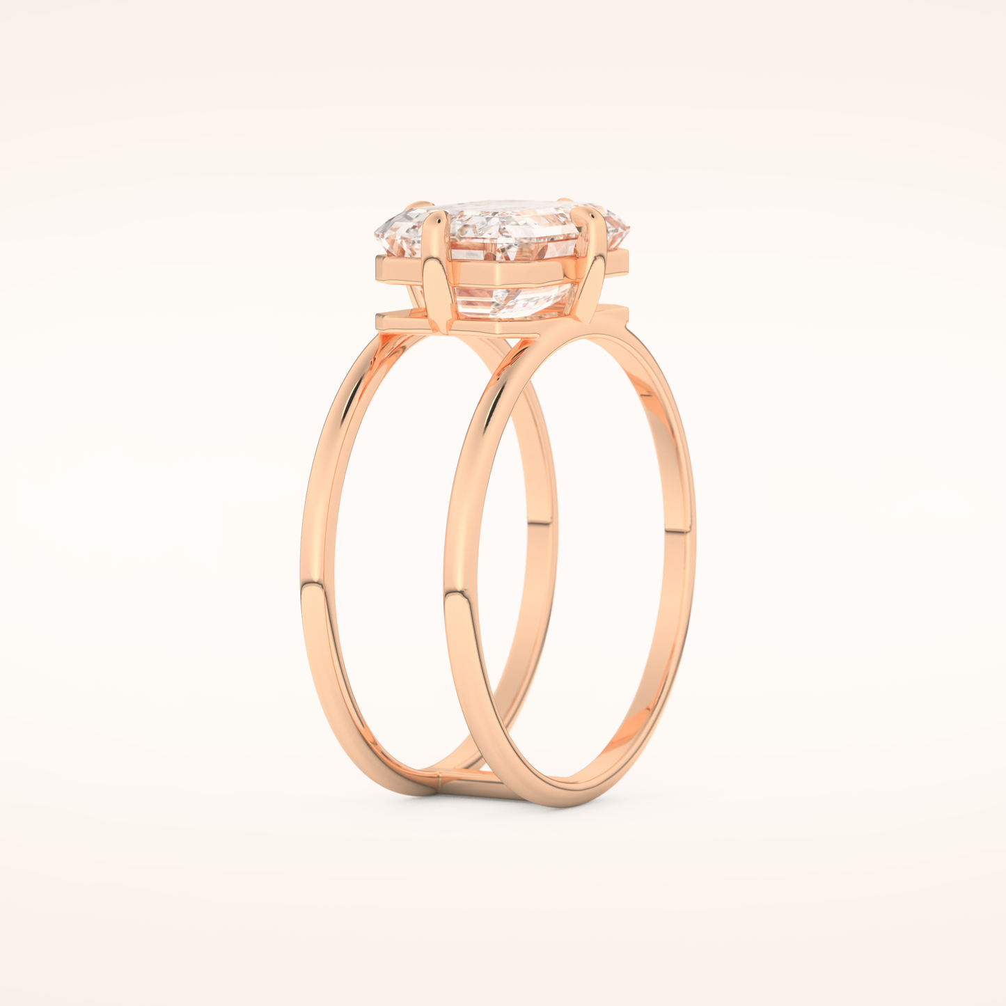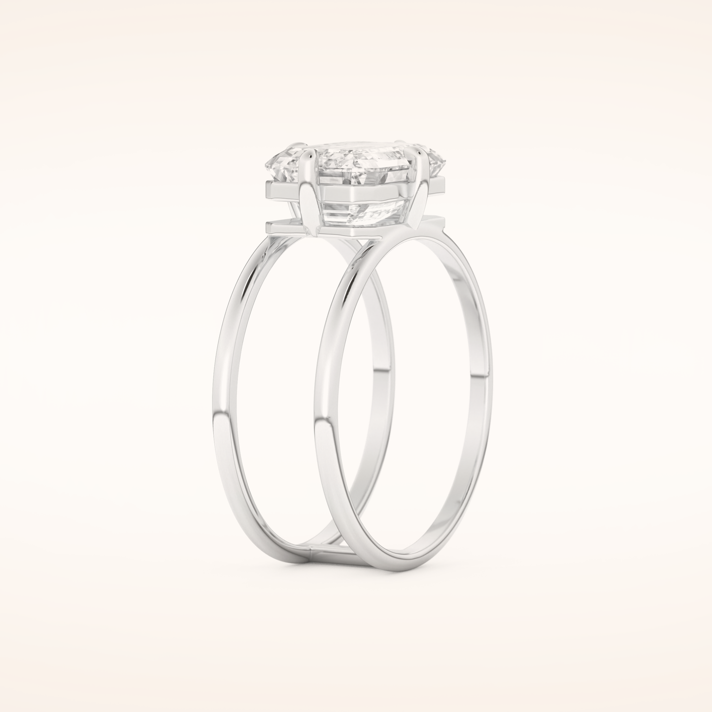 Emerald Solitaire Double Shank Lab Grown Diamond Engagement Ring