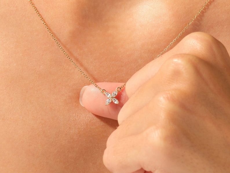 0.40 CT Marquise Moissanite Diamond Clover Pendant Necklace in Solid Gold