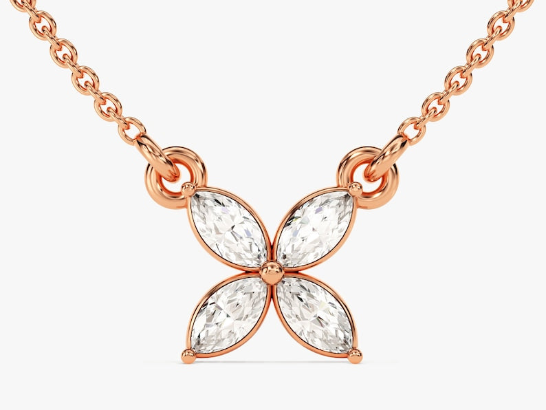 0.40 CT Marquise Moissanite Diamond Clover Pendant Necklace in Solid Gold 6