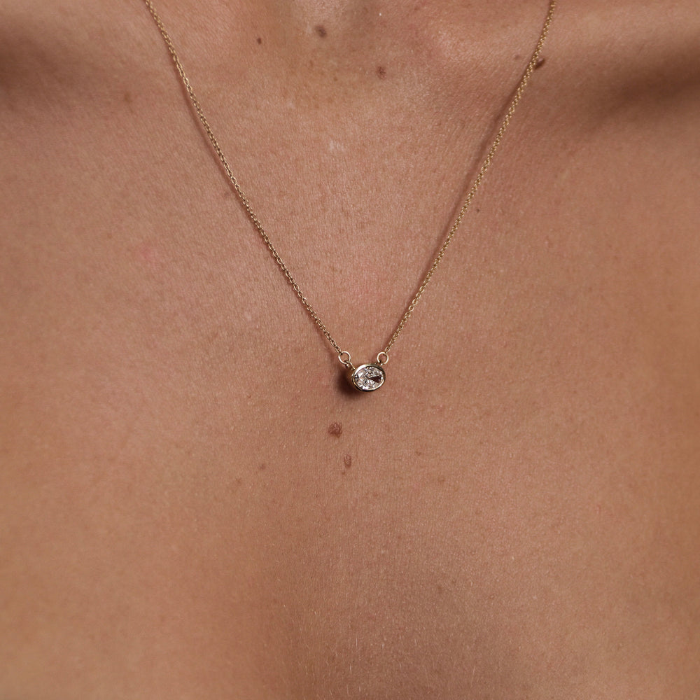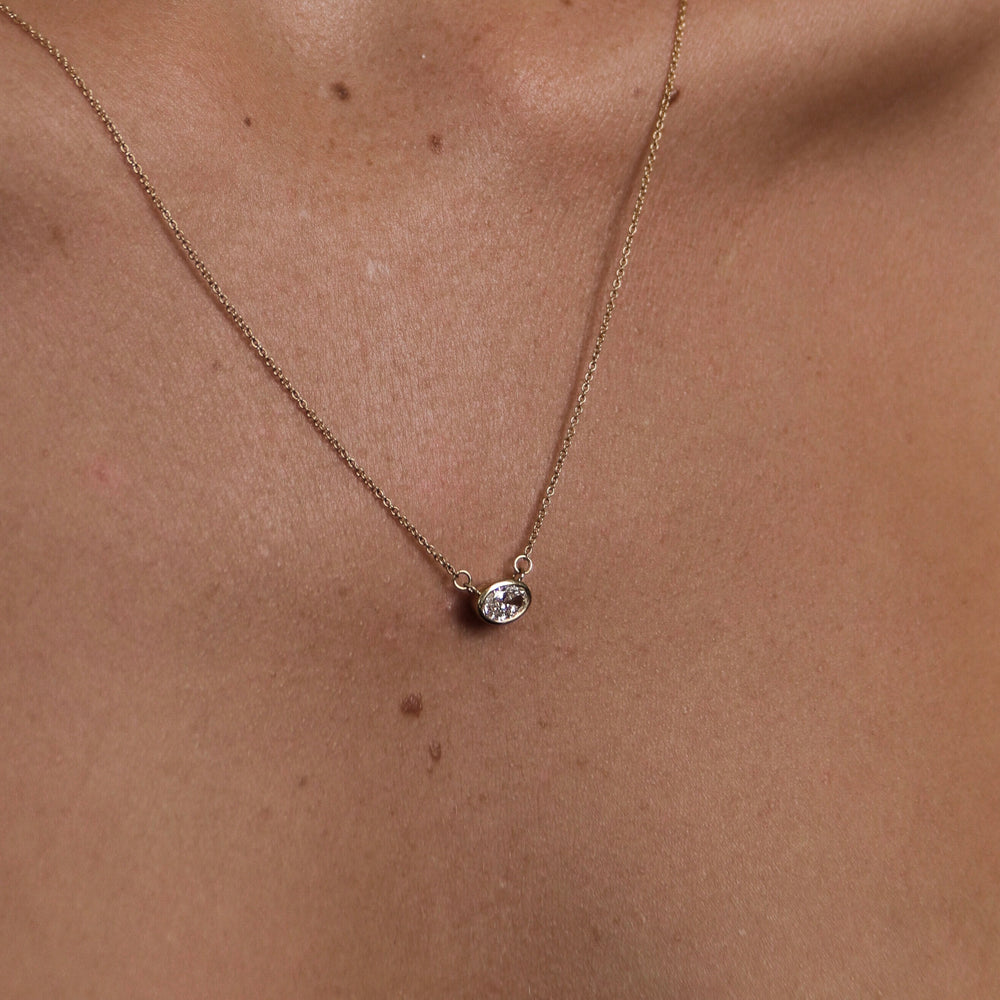 0.50 CT East West Oval Moissanite Diamond Bezel Pendant Necklace in Solid Gold 8