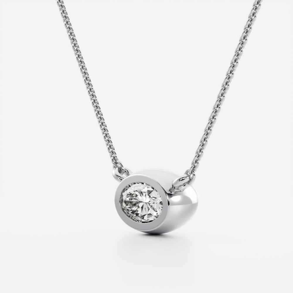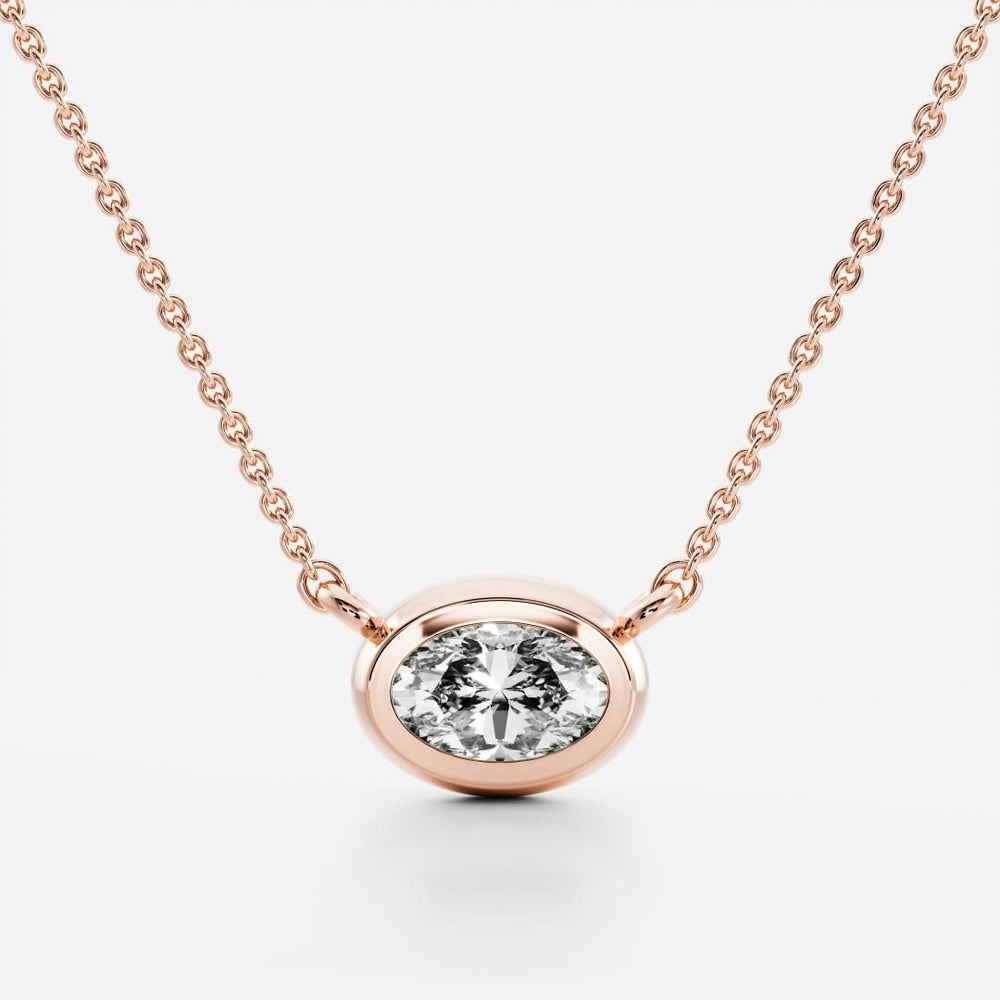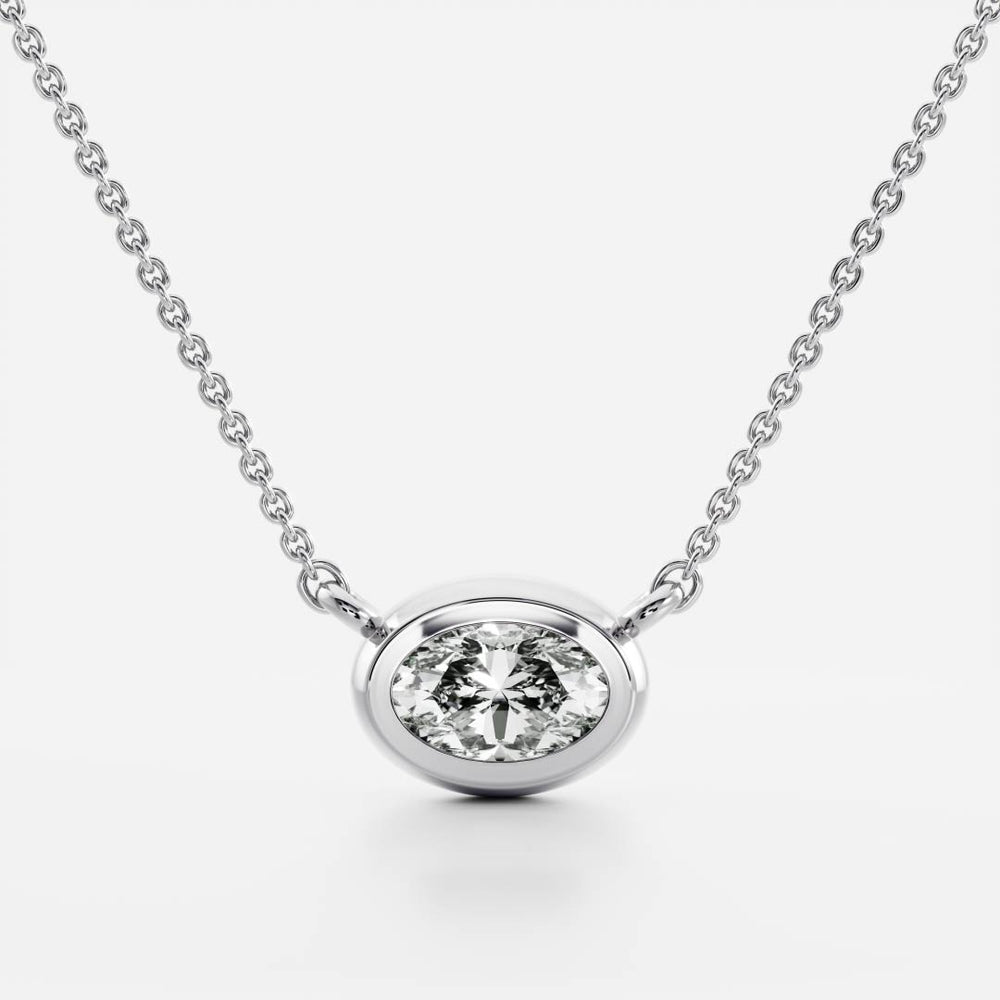 0.50 CT East West Oval Moissanite Diamond Bezel Pendant Necklace in Solid Gold