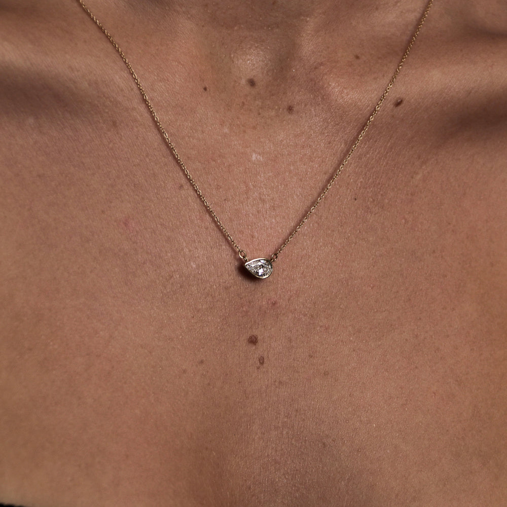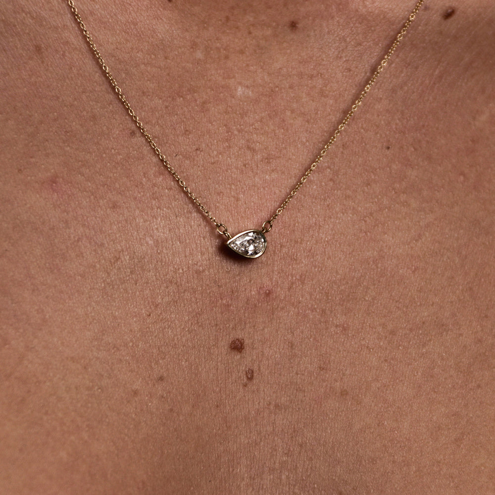 0.50 CT East West Pear Moissanite Diamond Bezel Pendant Necklace in Solid Gold 7