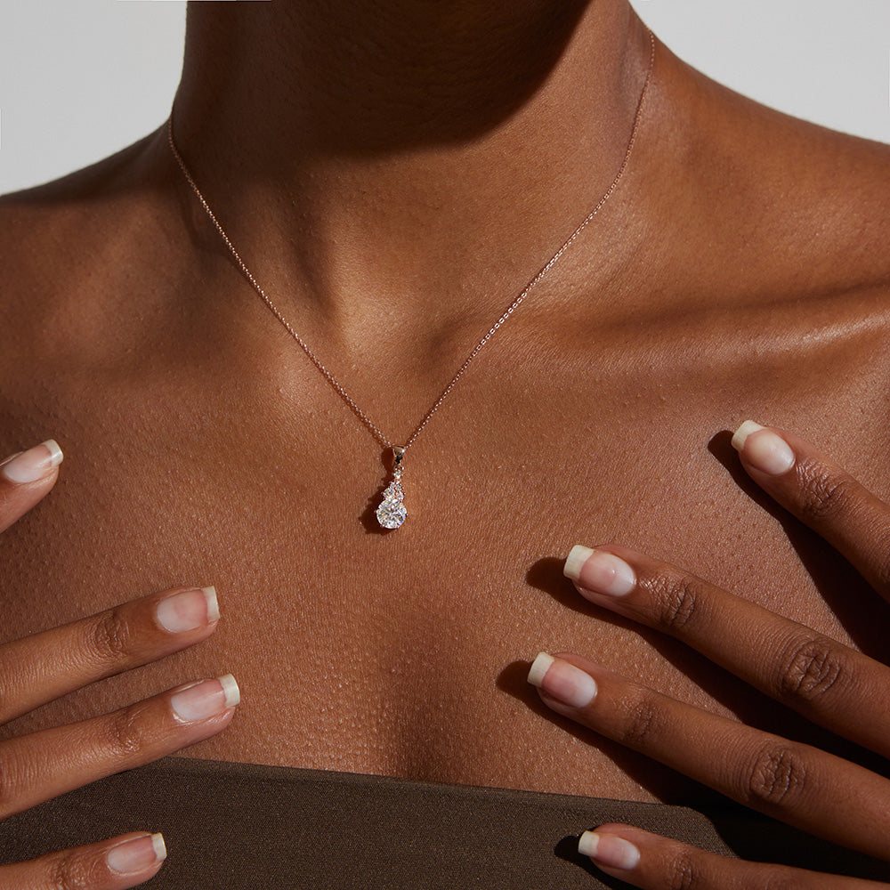 1.13 CT Round Diamond Cluster Pendant Necklace in Solid Gold