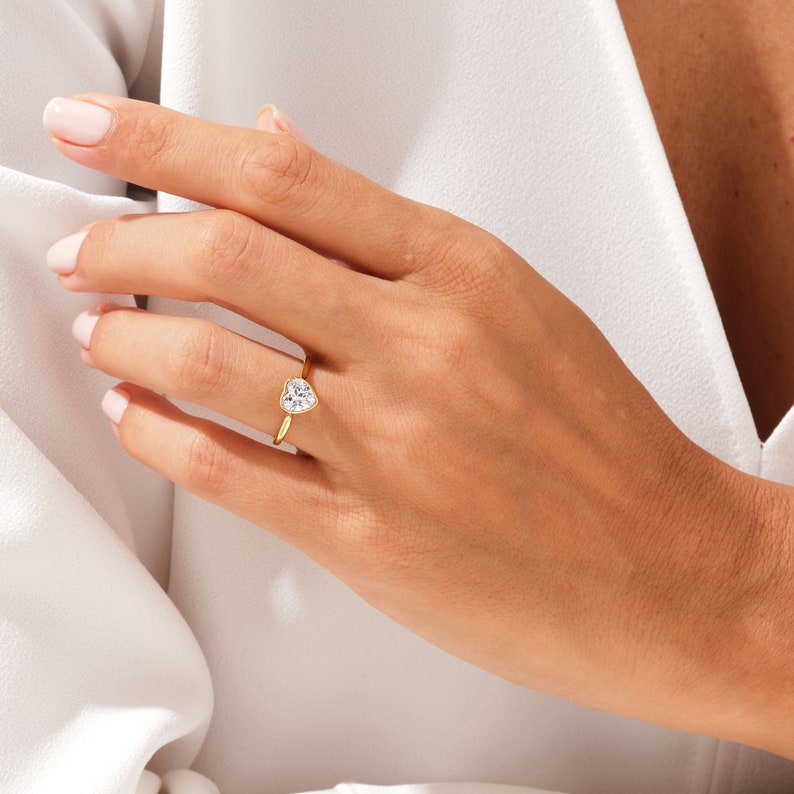 1.0 CT Heart Cut Bezel Solitaire Style Moissanite Engagement Ring