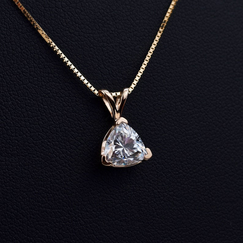 1.10 CT Trillion Shape Moissanite Solitaire Necklace