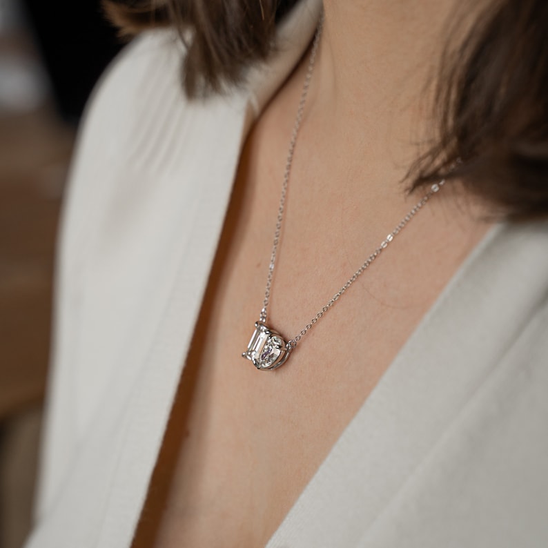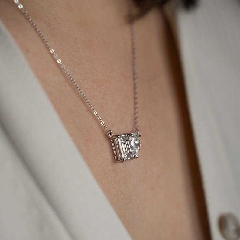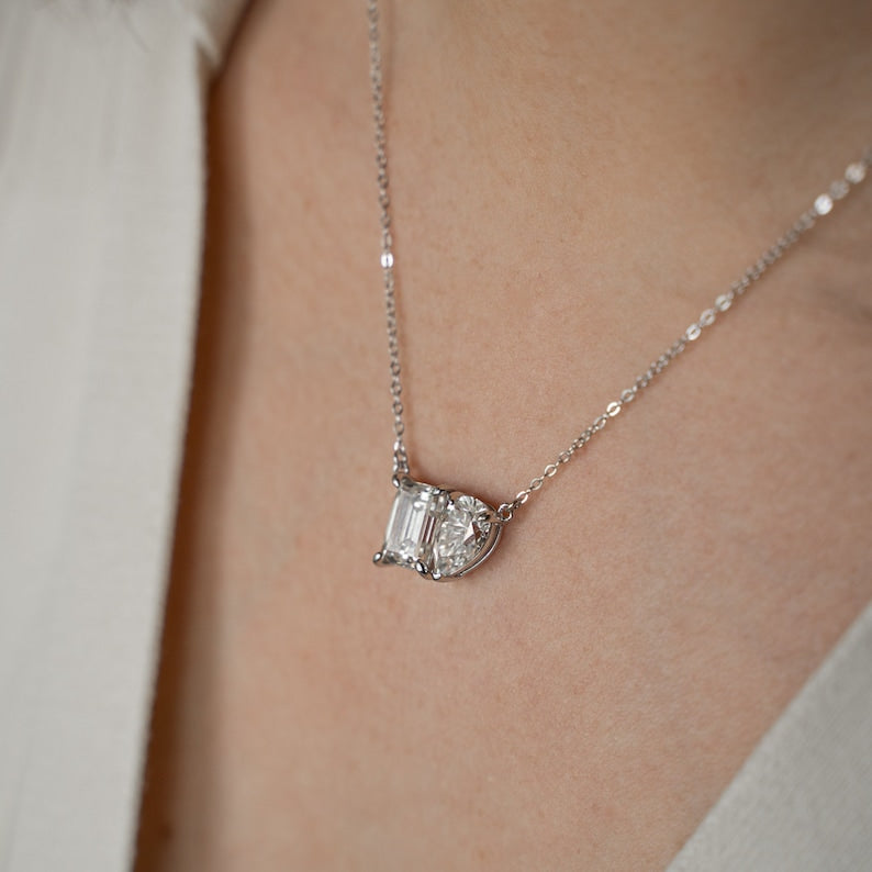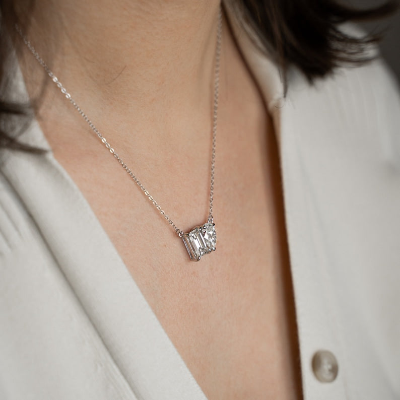 5 TCW Emerald & Pear Shape Moissanite Two Stone Necklace