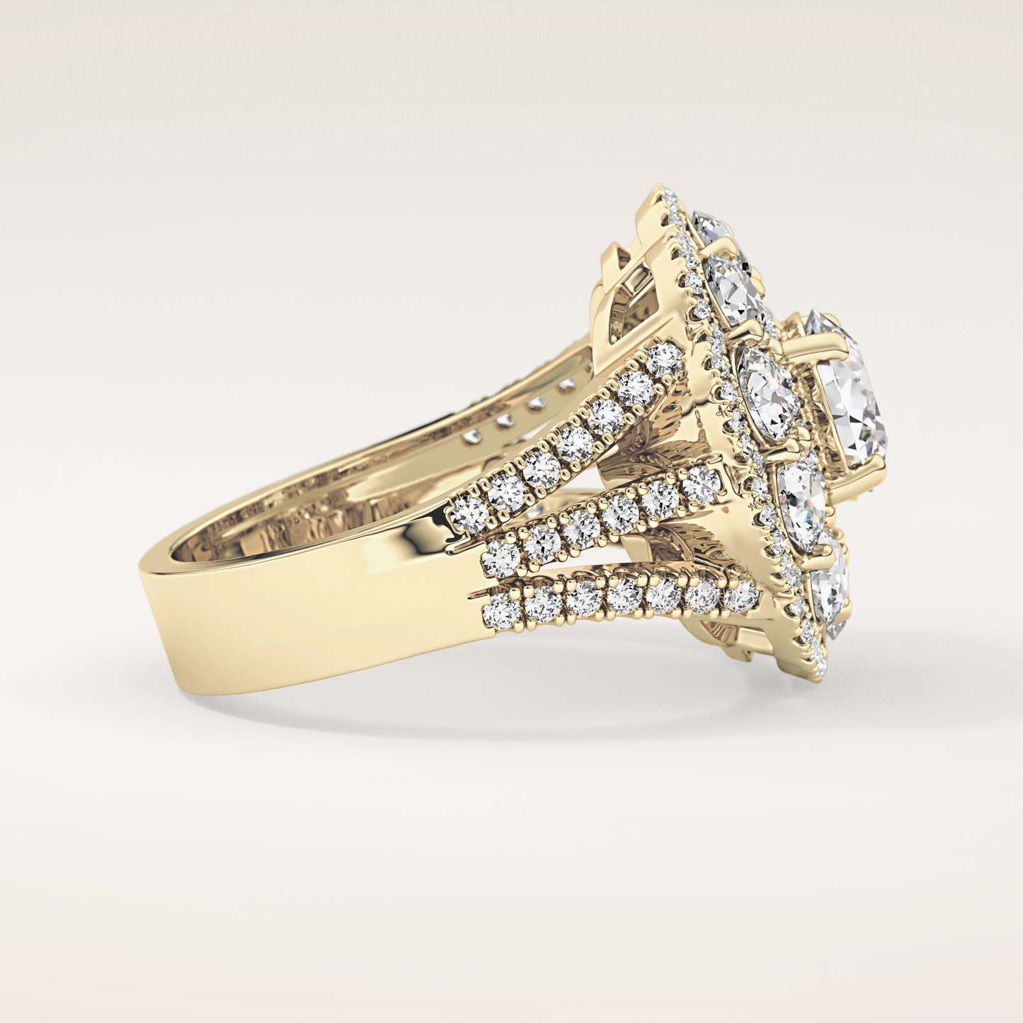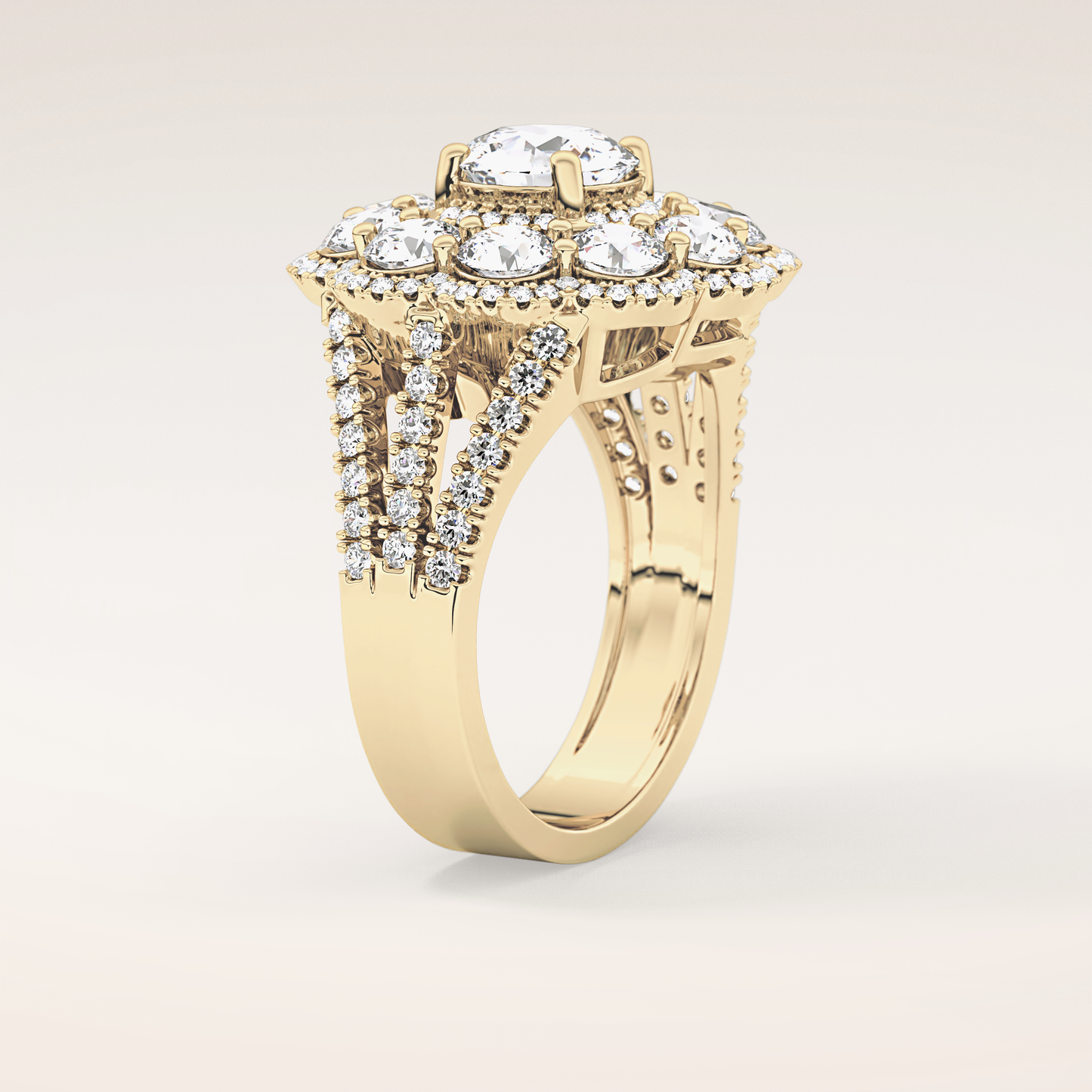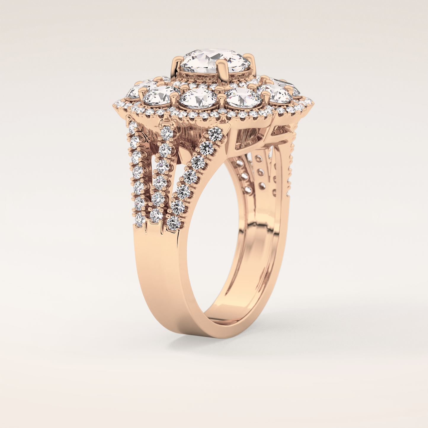 Round Halo & Split Shank Pave Lab Grown Diamond Engagement Ring