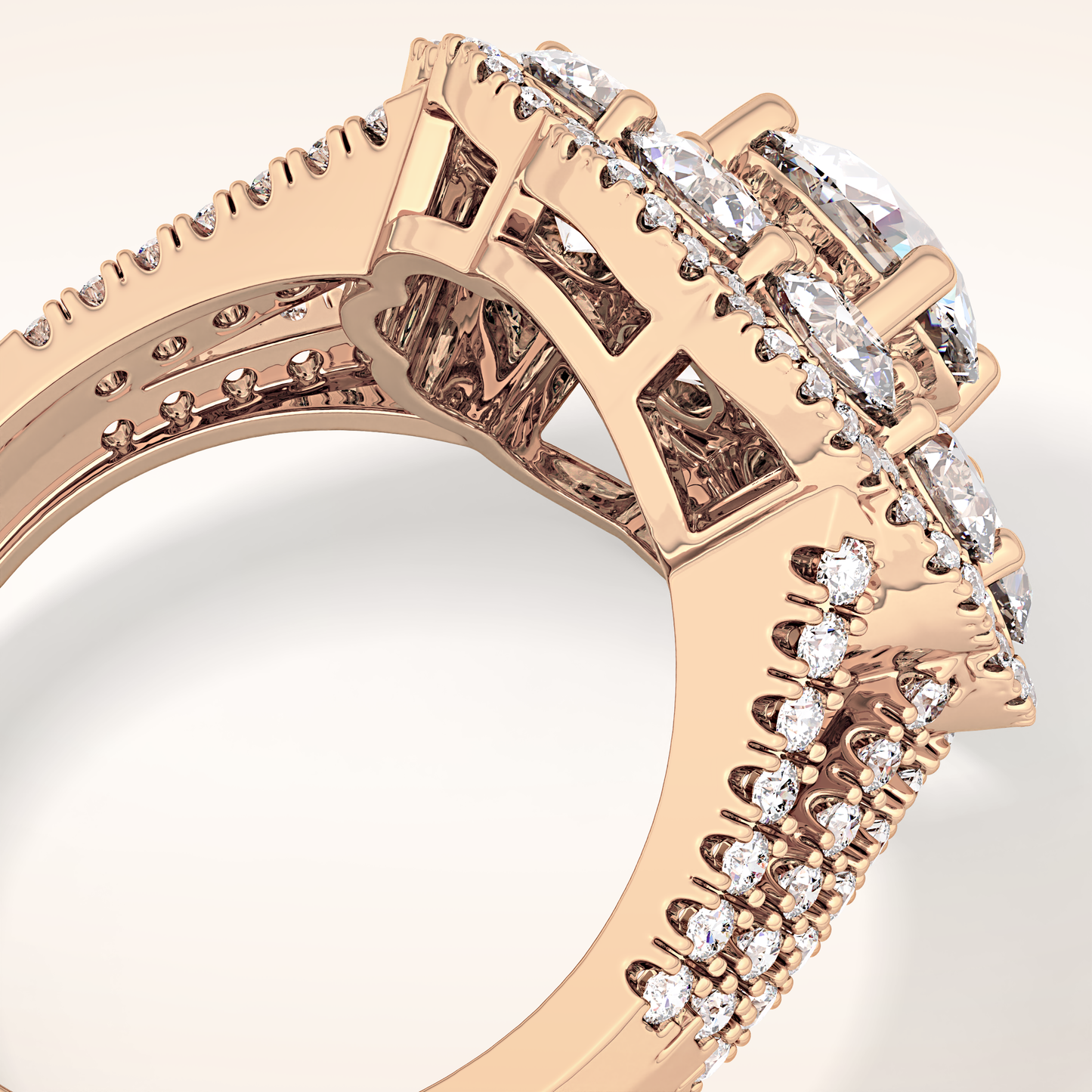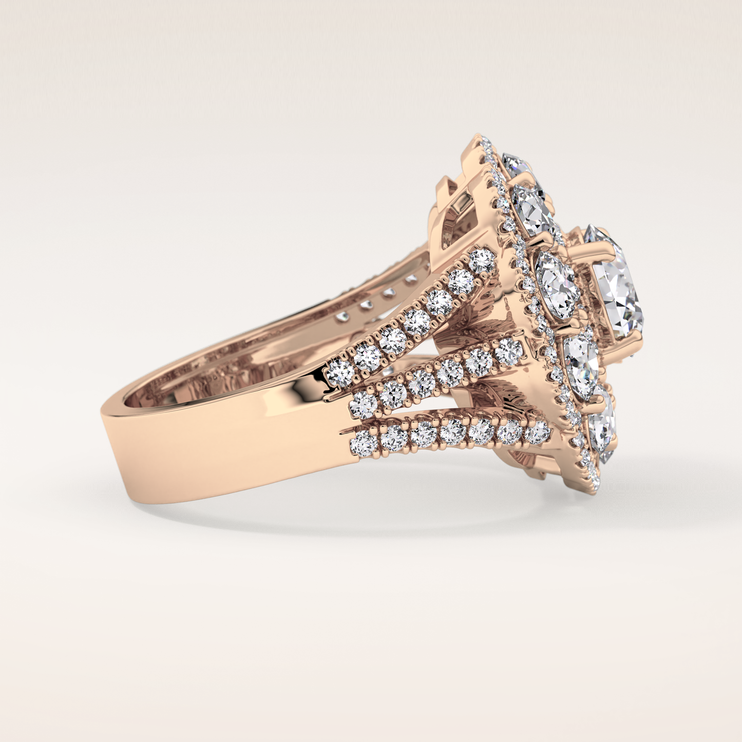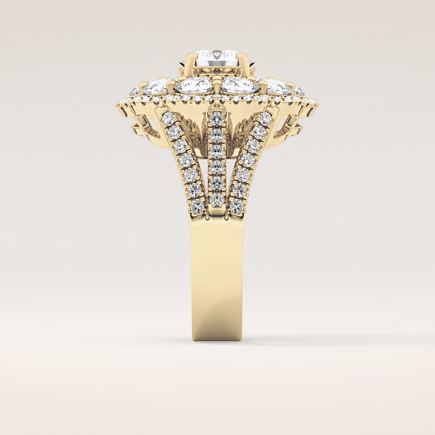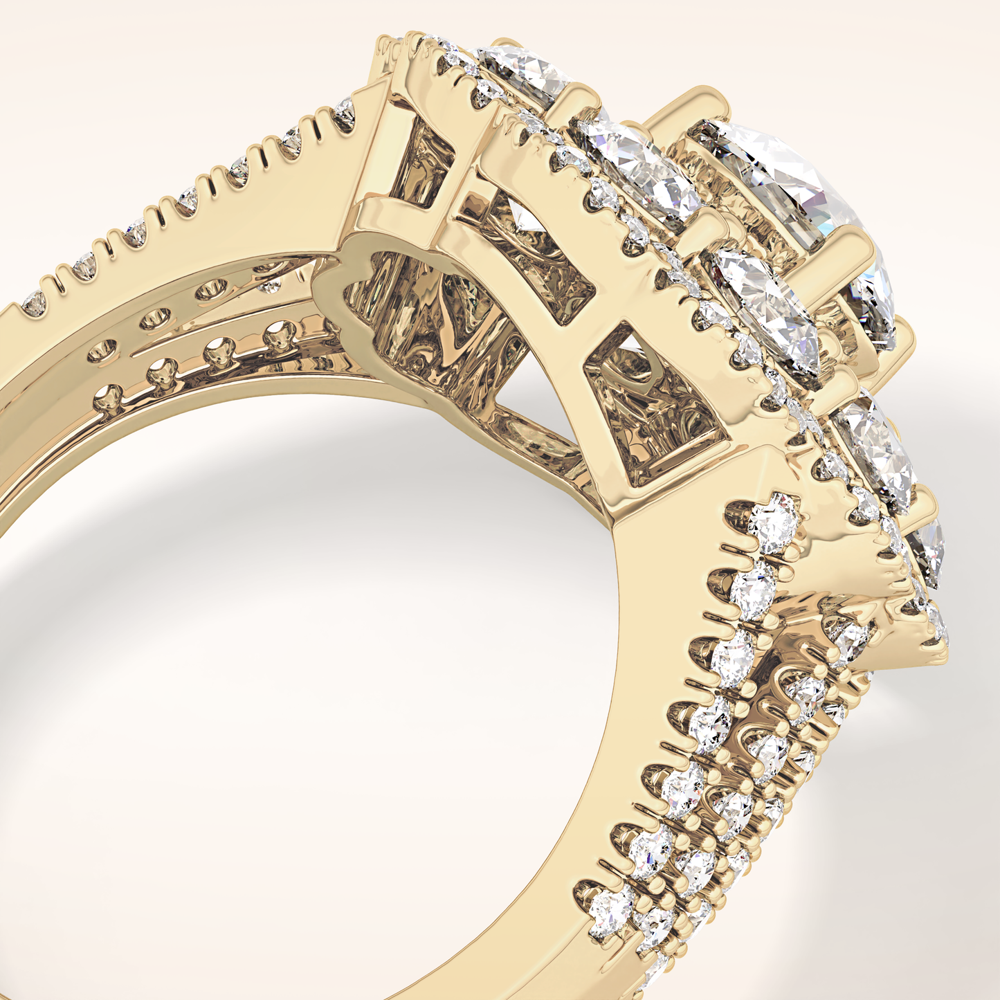 Round Halo & Split Shank Pave Lab Grown Diamond Engagement Ring